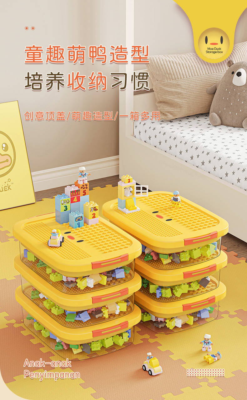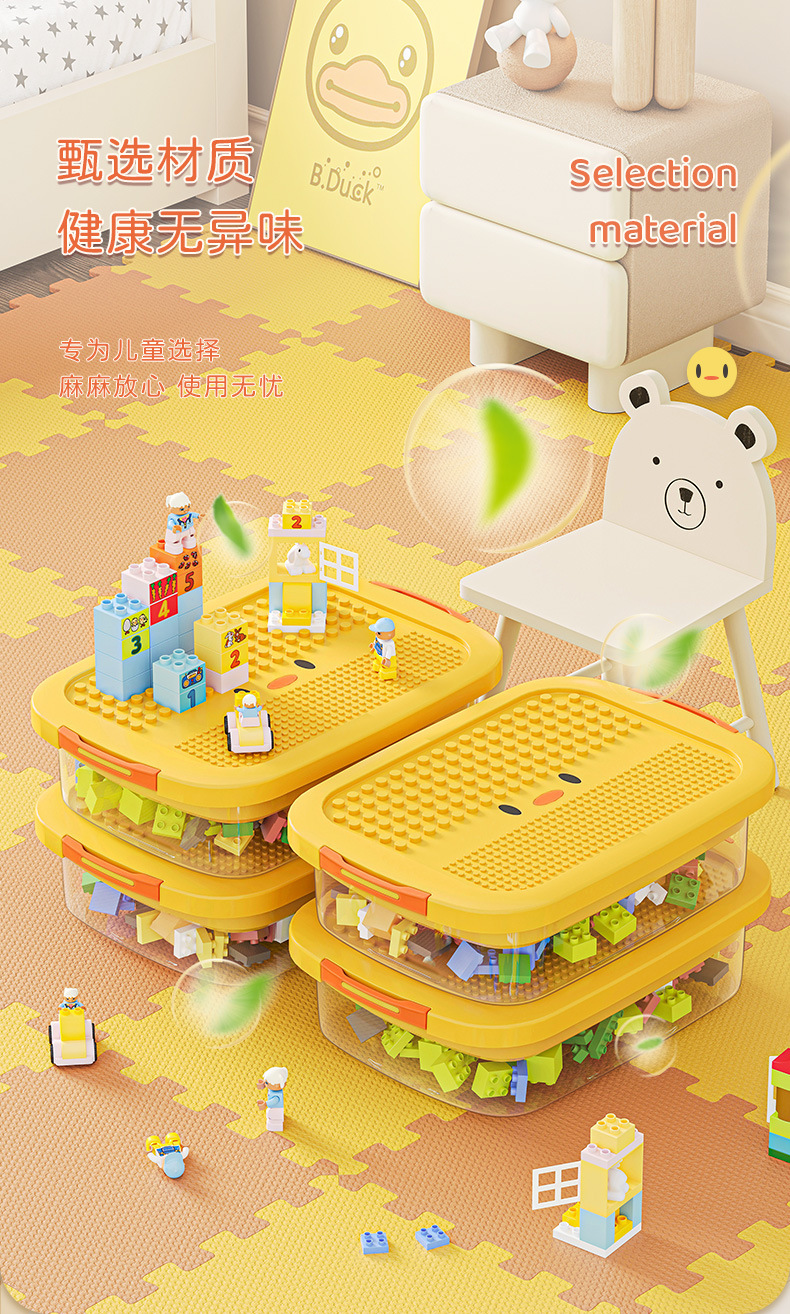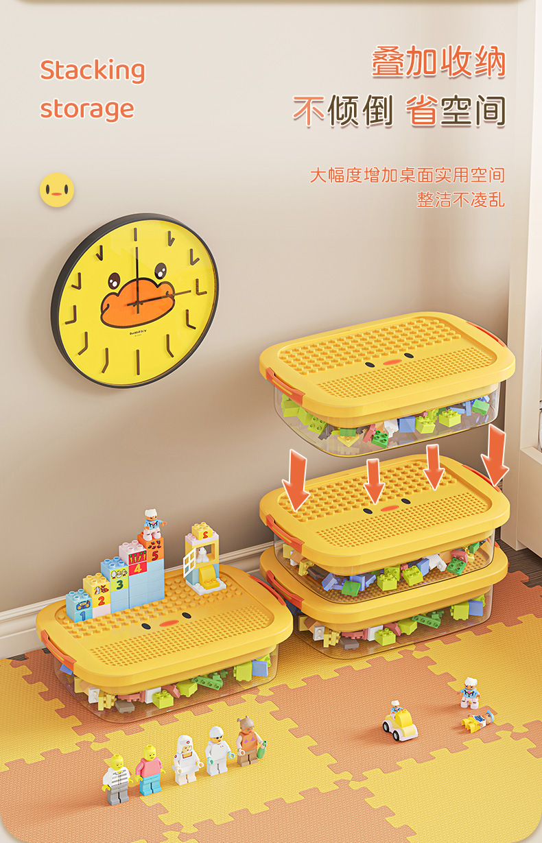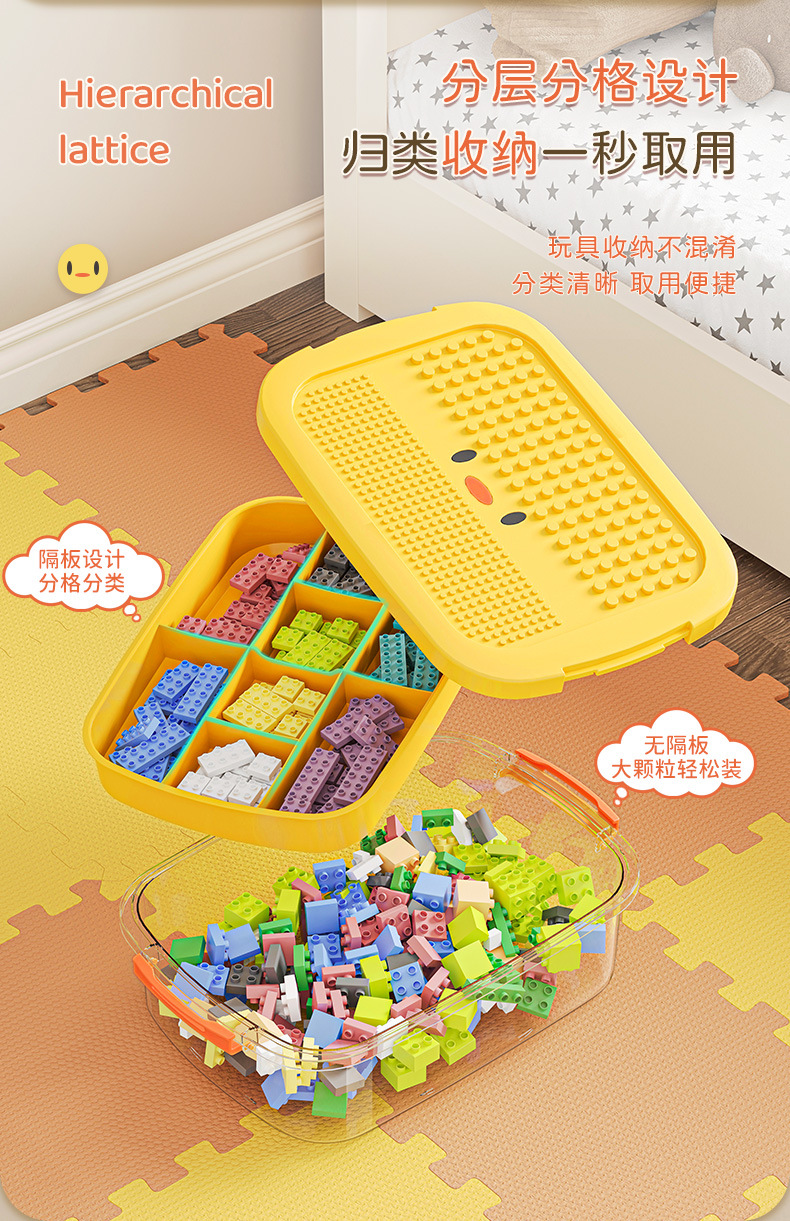 레고 다층 구획 저장 상자 어린이 장난감 작은 건물 블록 주최자 만화 작은 노란색 오리 투명 저장 상자스토어 가기