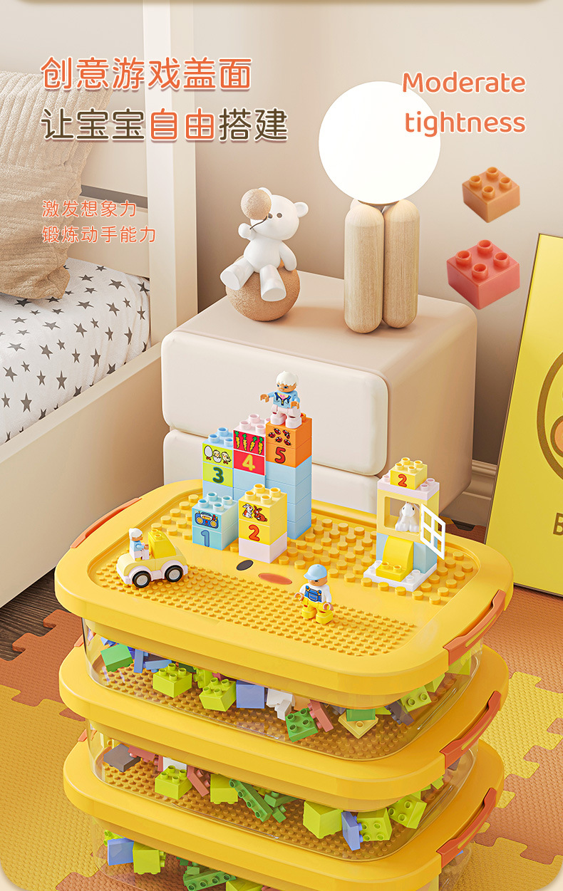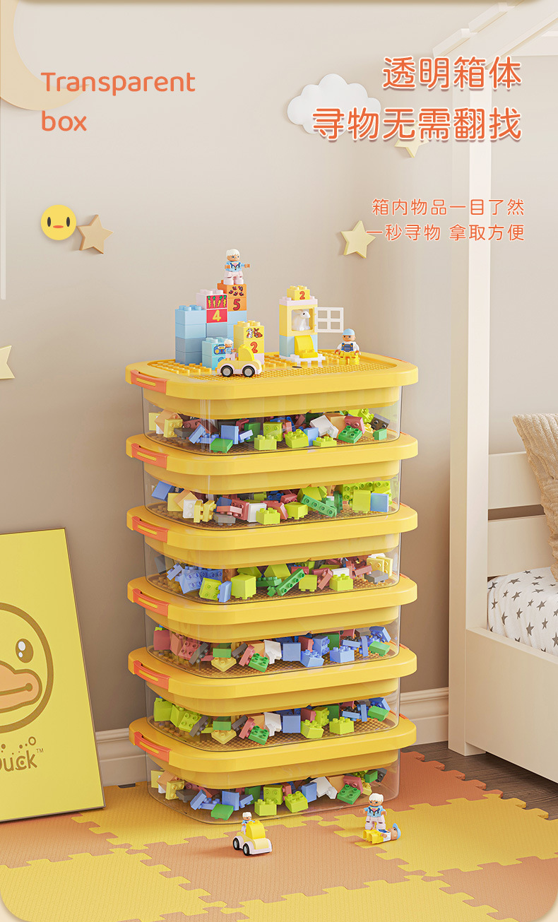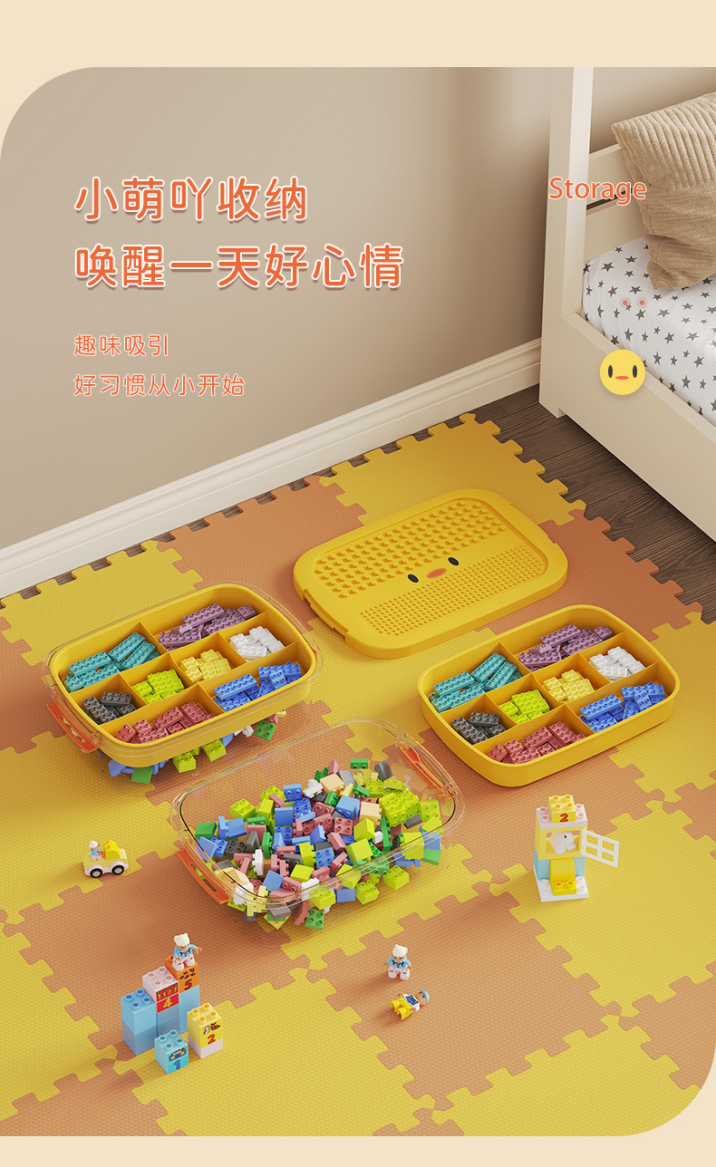 레고 다층 구획 저장 상자 어린이 장난감 작은 건물 블록 주최자 만화 작은 노란색 오리 투명 저장 상자스토어 가기