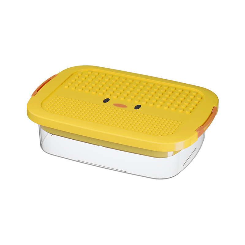 레고 다층 구획 저장 상자 어린이 장난감 작은 건물 블록 주최자 만화 작은 노란색 오리 투명 저장 상자