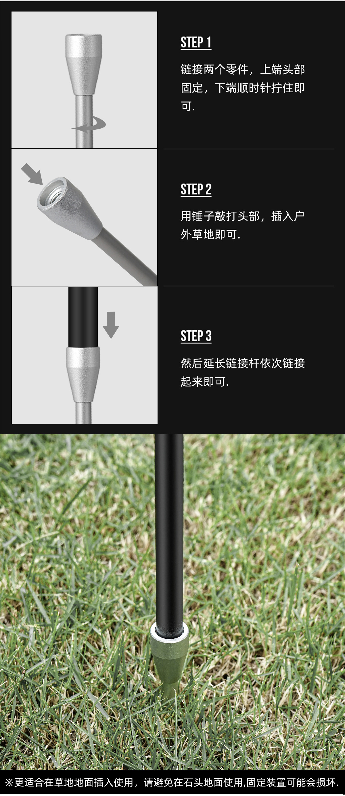 架(短)×1ea、插草地地钉×1ea,收纳包×1ea