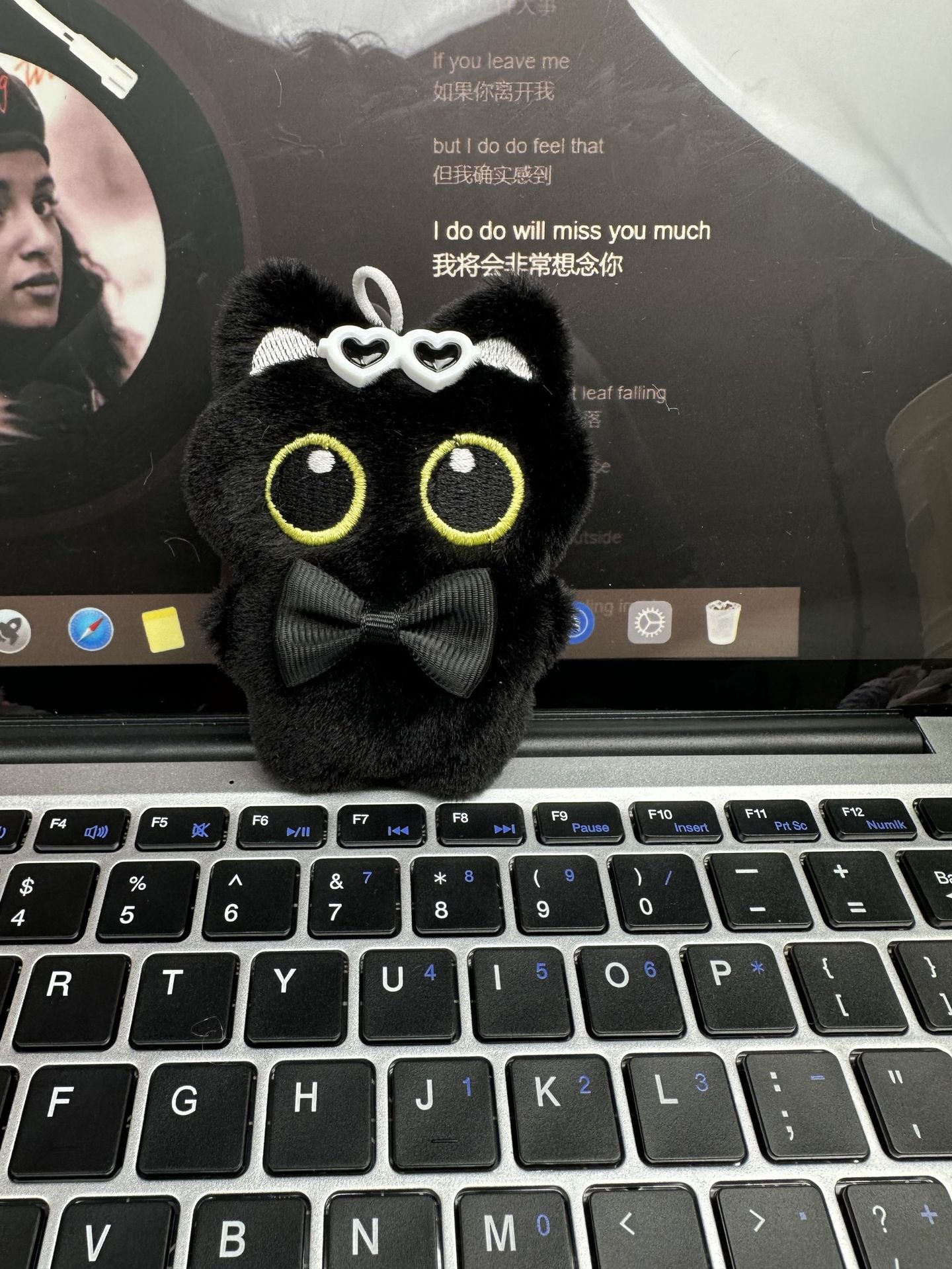 인기있는 큰 눈 검은 고양이 봉제 인형 펜던트 귀여운 삐걱거리는 검은 새끼 고양이 가방 열쇠 고리 펜던트