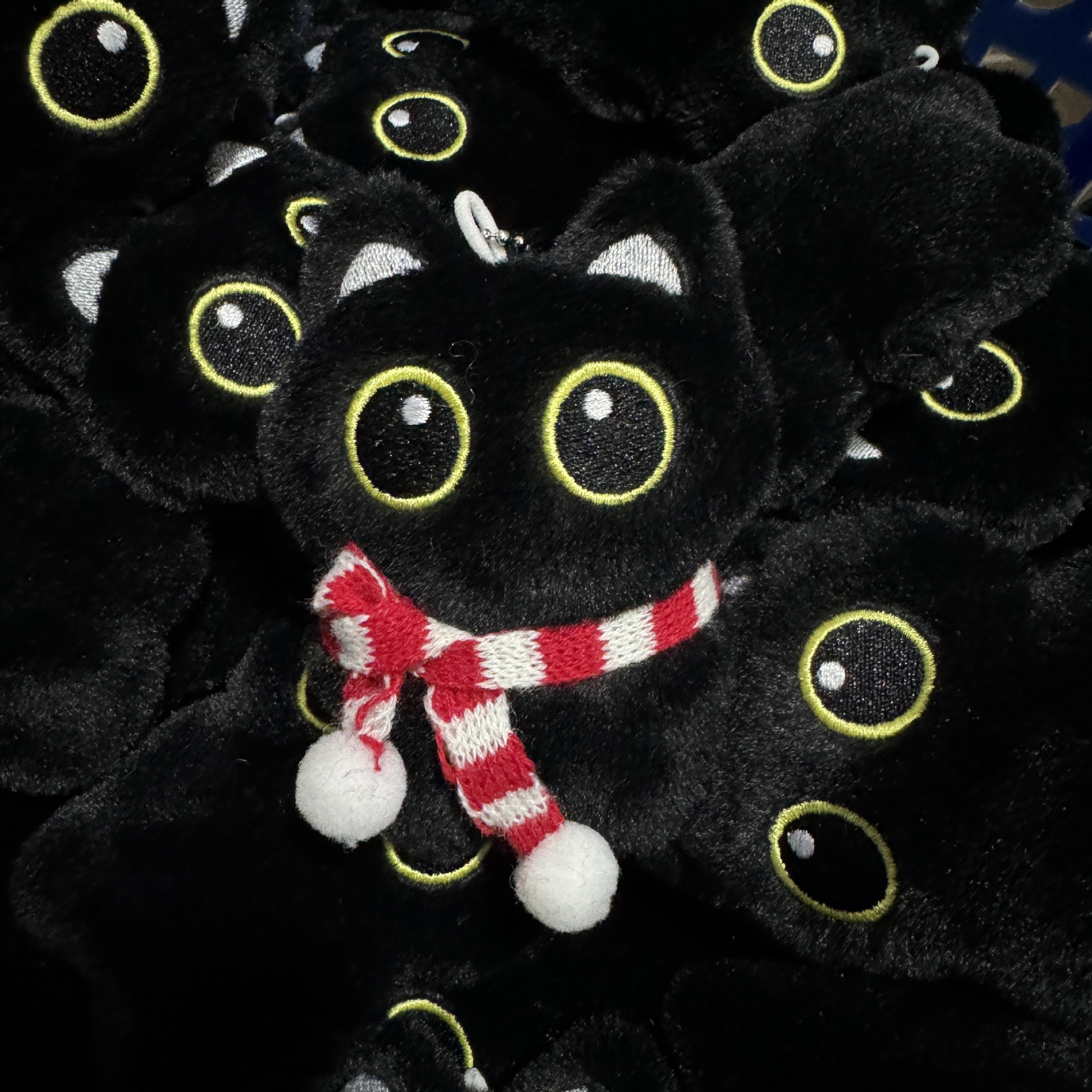 인기있는 큰 눈 검은 고양이 봉제 인형 펜던트 귀여운 삐걱거리는 검은 새끼 고양이 가방 열쇠 고리 펜던트스토어 가기