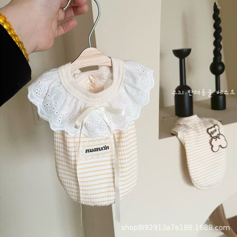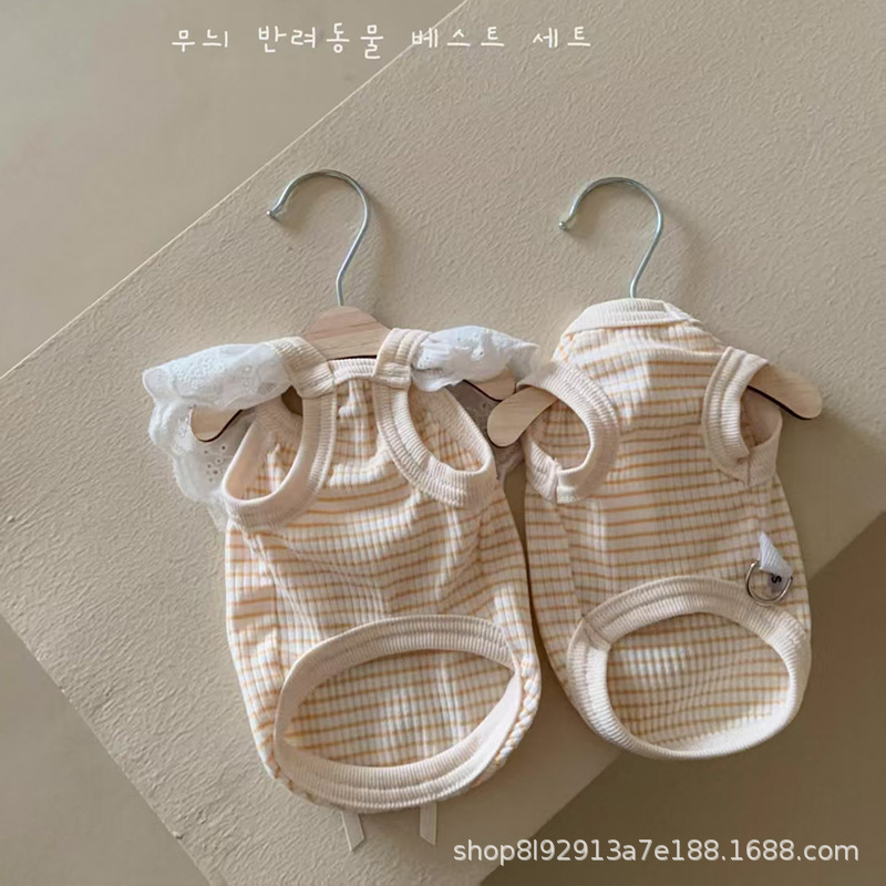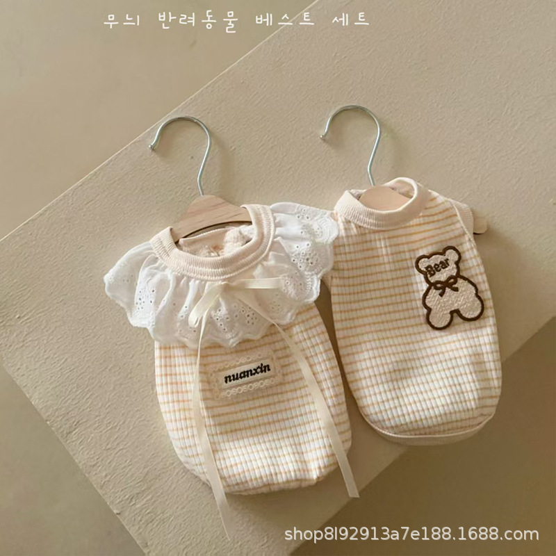 여름 개 여름 옷 작은 개 2025 새로운 얇은 강아지 곰 조끼 고양이 머펫 고양이 슬링스토어 가기