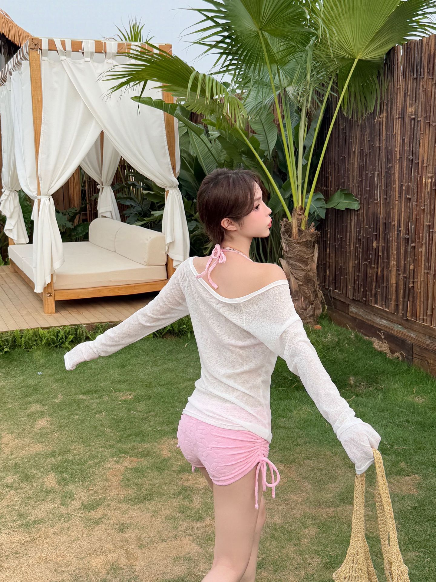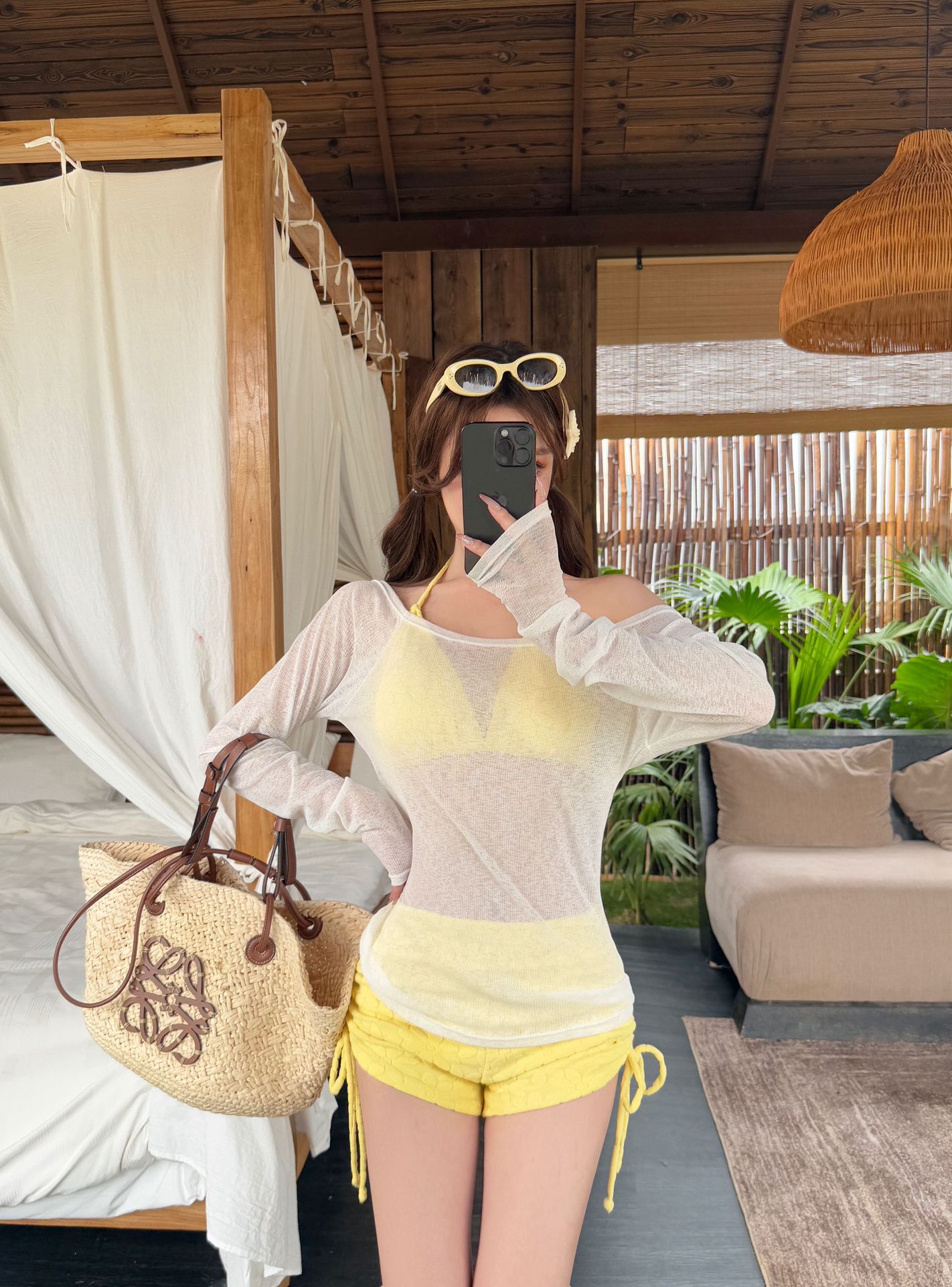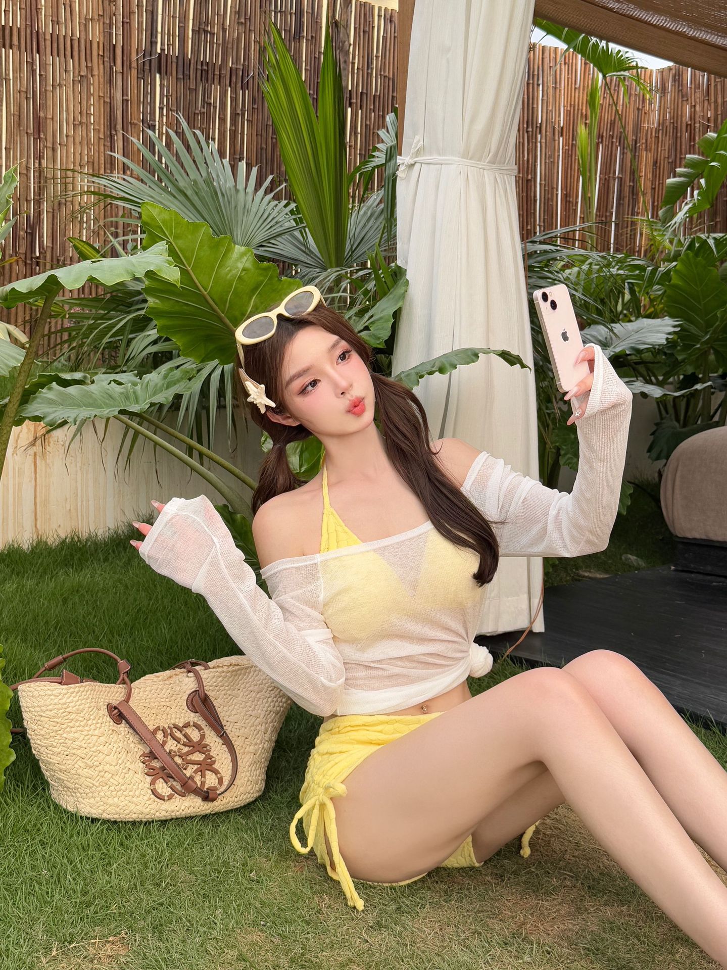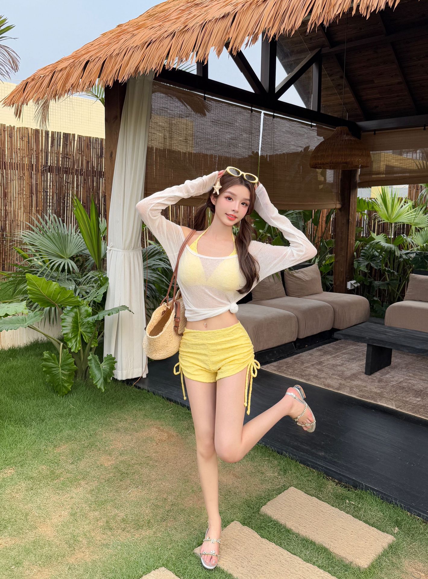 새로운 스타일의 여성용 크로스보더 수영복, 고급스럽고 귀엽고 달콤한 자외선 차단 긴팔 아우터, 온천용 배 가리개, 슬리밍 비키니스토어 가기