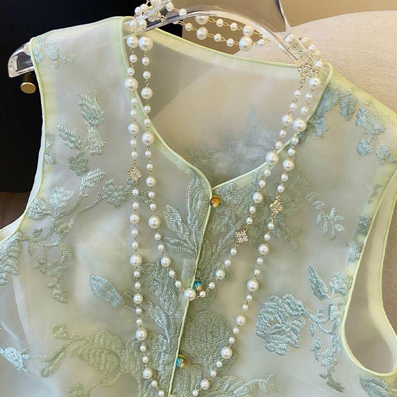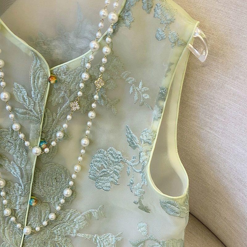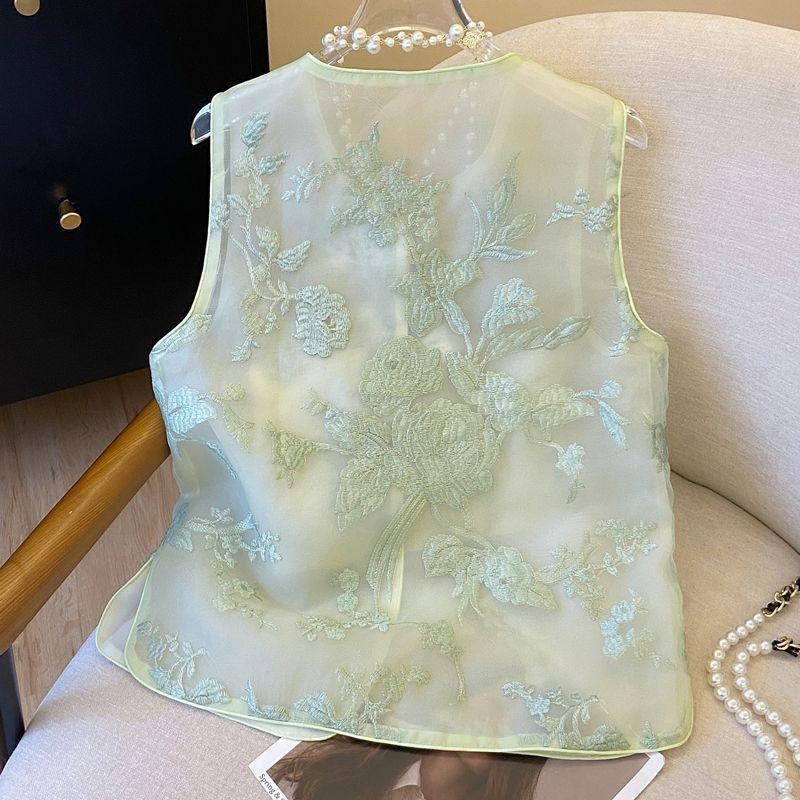 Guofeng 새로운 중국 스타일 자수 조끼의 새로운 waistcoat 여성용 여름 얇은 민소매 레트로 Organza 조끼