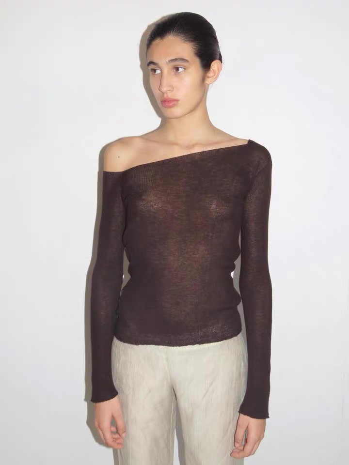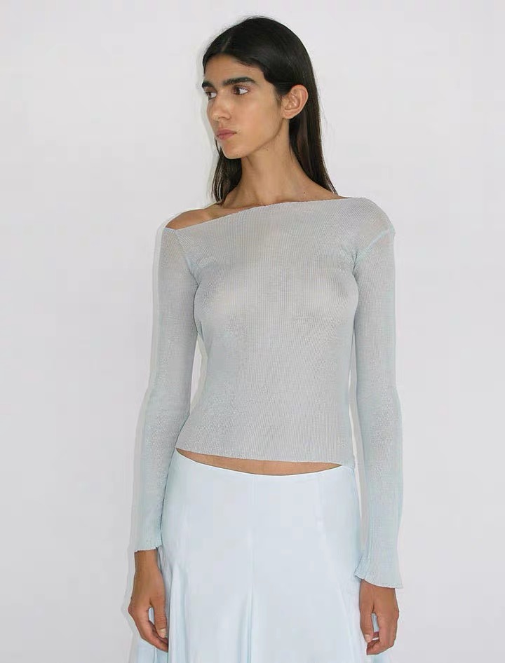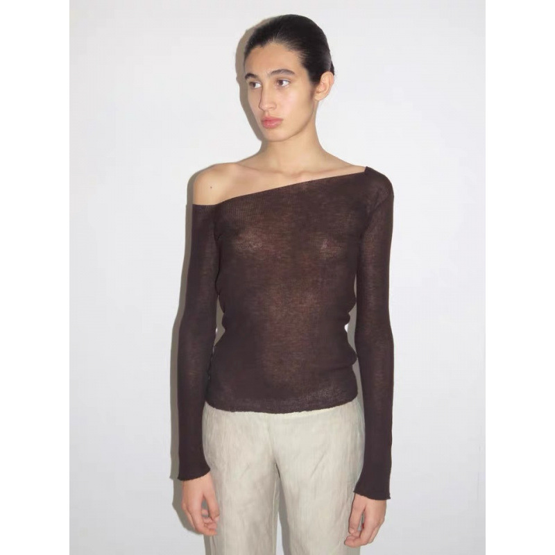 재고 있음 팔로마 울 치우치우 같은 스타일의 울 혼방 중공 백리스 스웨터 긴팔 탑