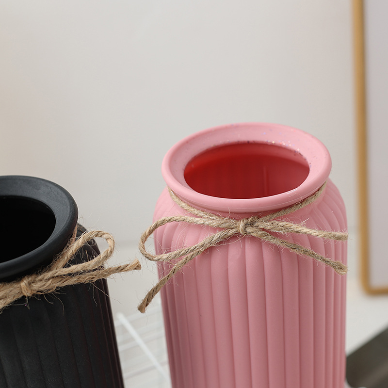 홈 장식 거실 데스크탑 꽃 배치 컨테이너 플라스틱 꽃병 간단한 드롭 방지 장식 블랙 꽃병 국경
