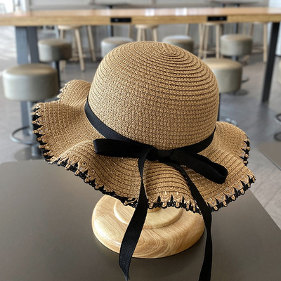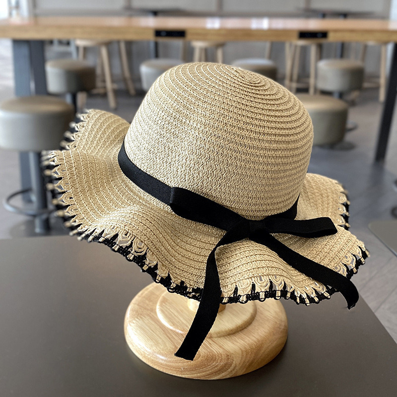 여름 소녀 밀짚 모자 큰 챙 태양 모자 소녀 아기 태양 보호 태양 여행 해변 모자 가방 세트스토어 가기