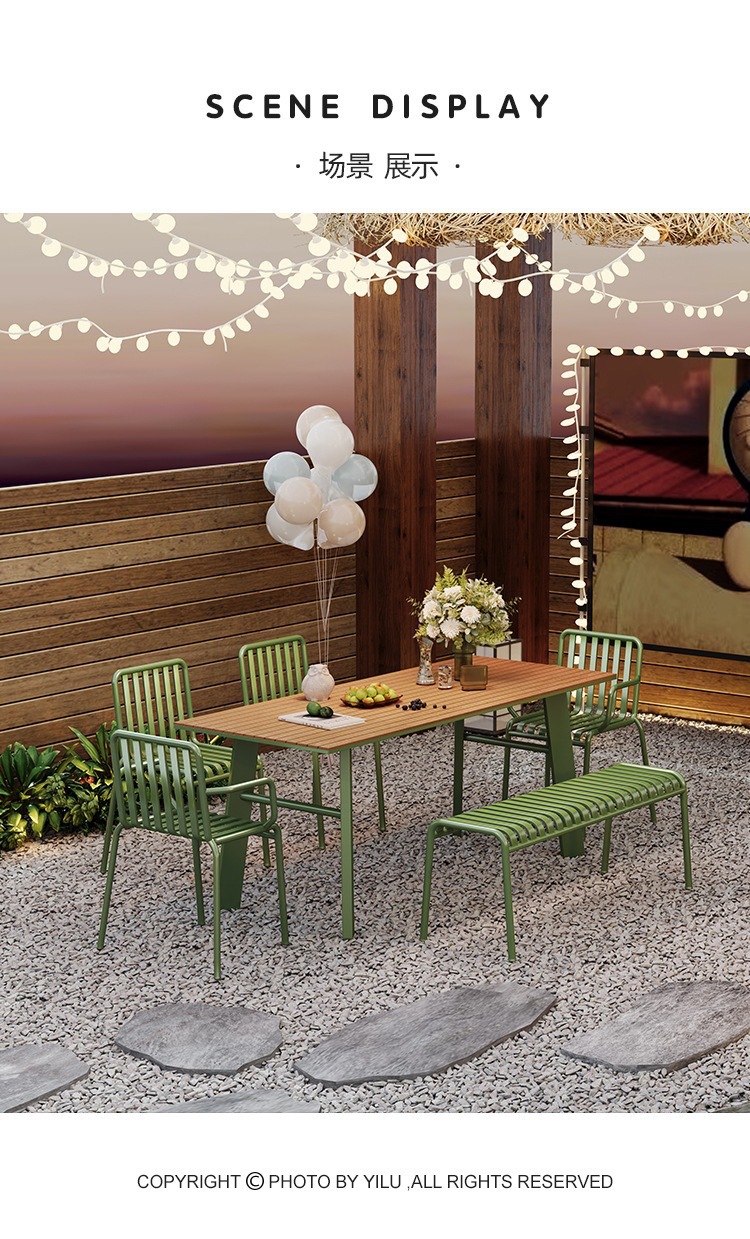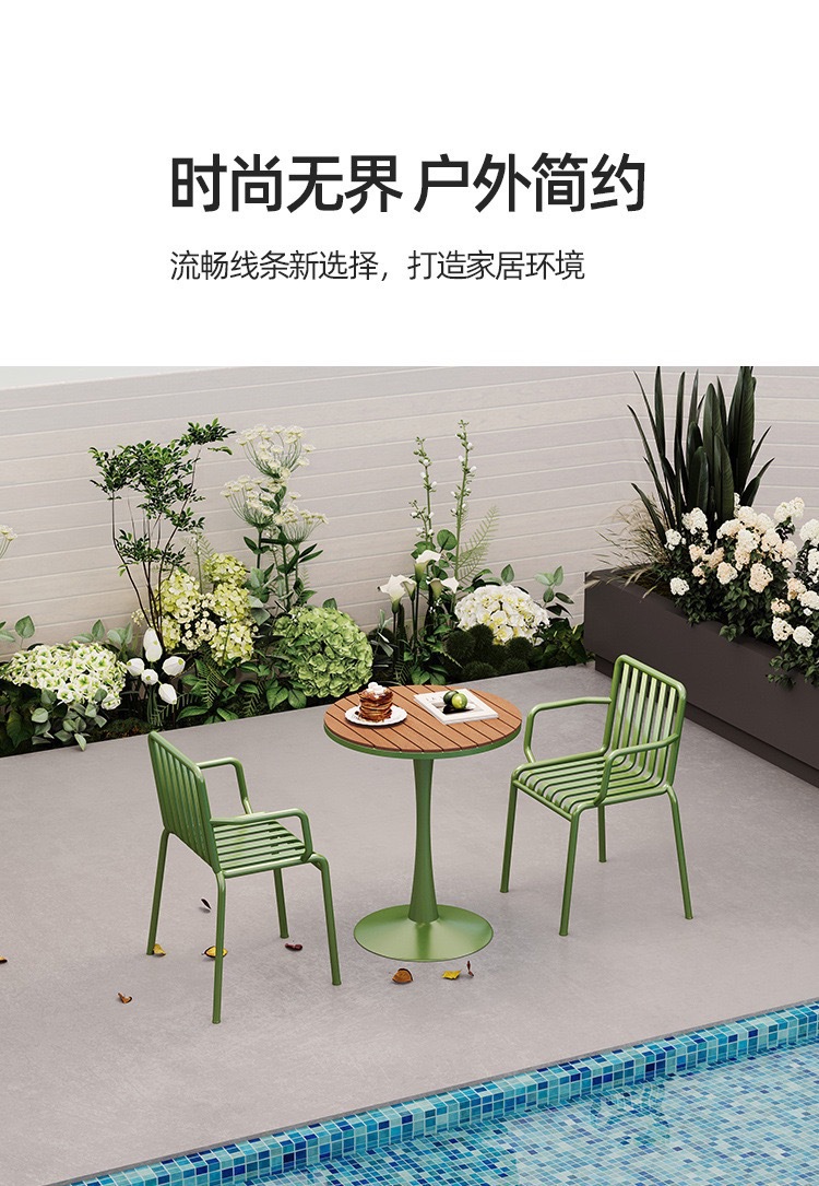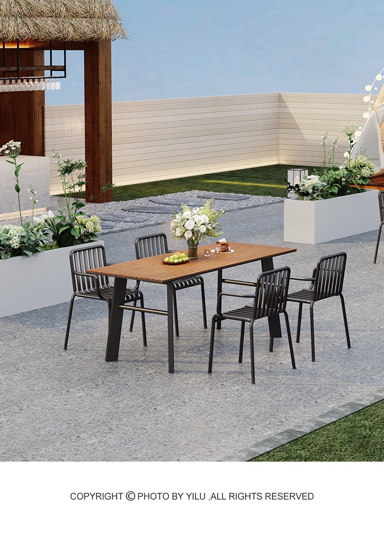 室外餐桌椅组合奶茶店户外网红咖啡厅塑木防水防晒铁艺露天洽谈桌