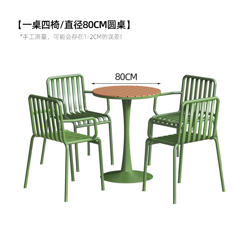 야외 식탁과 의자 조합 밀크티 숍 야외 인터넷 연예인 카페 플라스틱 목재 방수 및 자외선 차단제 철제 야외 협상 테이블스토어 가기