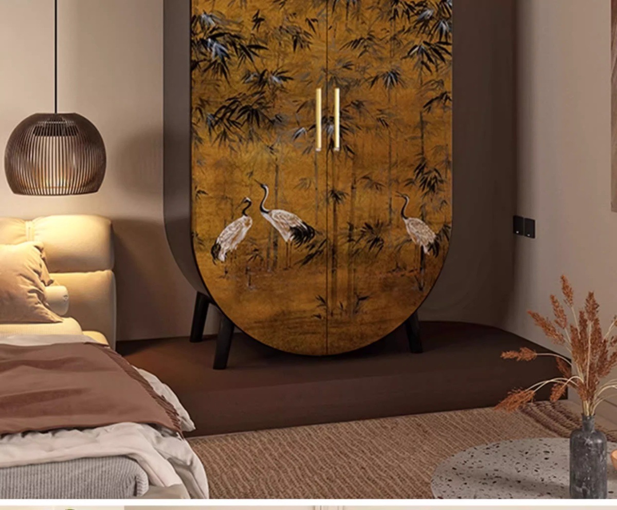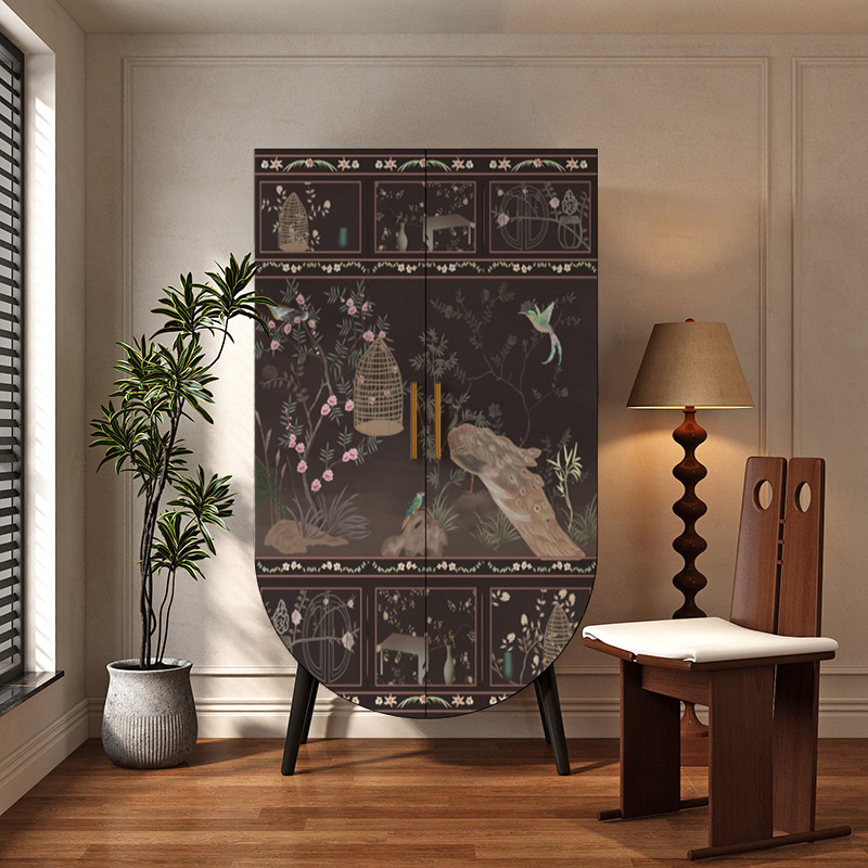새로운 중국 스타일 복고풍 양문 옷장 침실 홈 벽 저장 장식 캐비닛 통합 페인트 저장 캐비닛