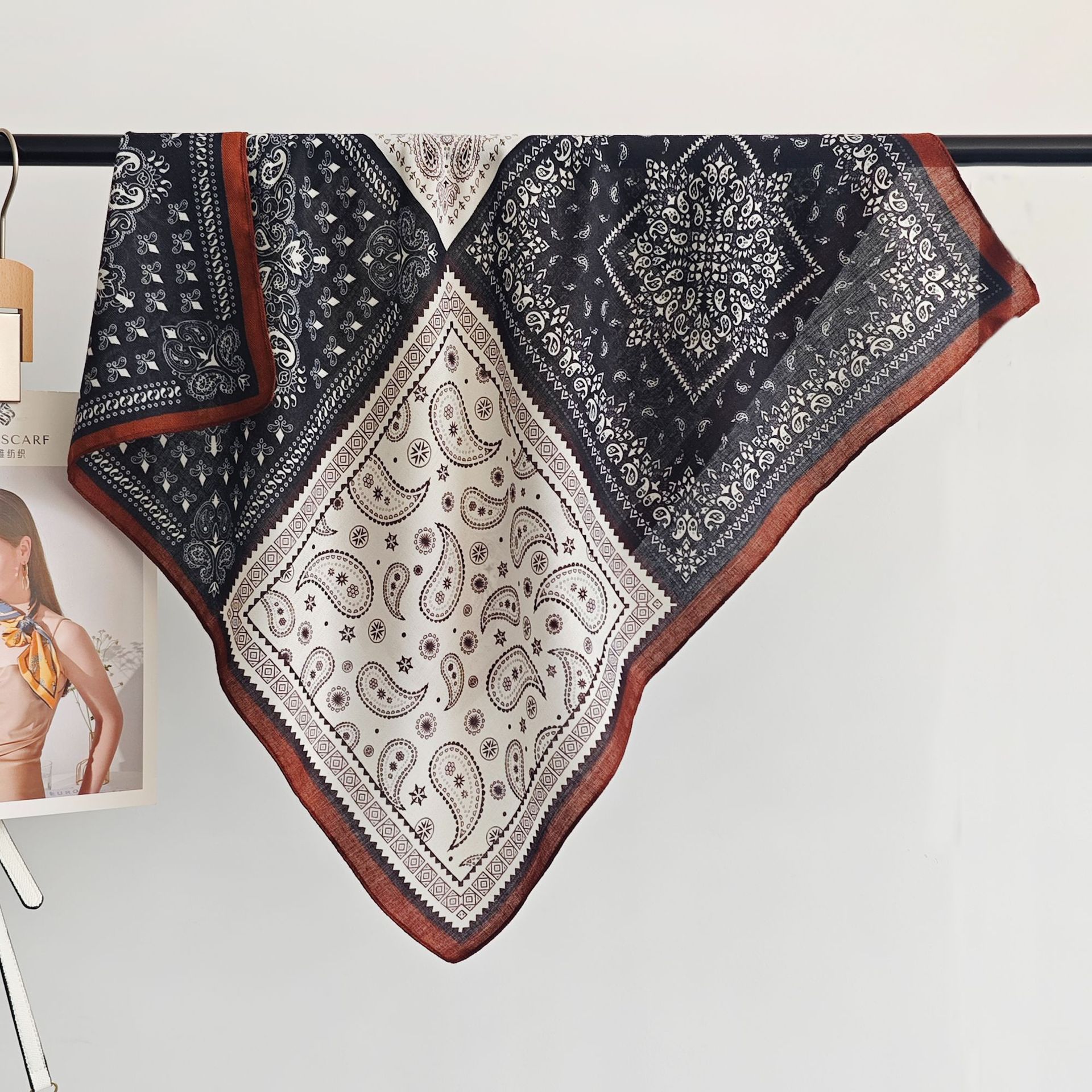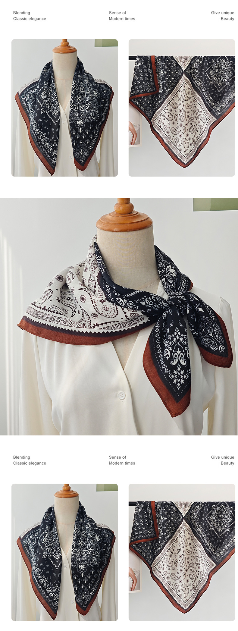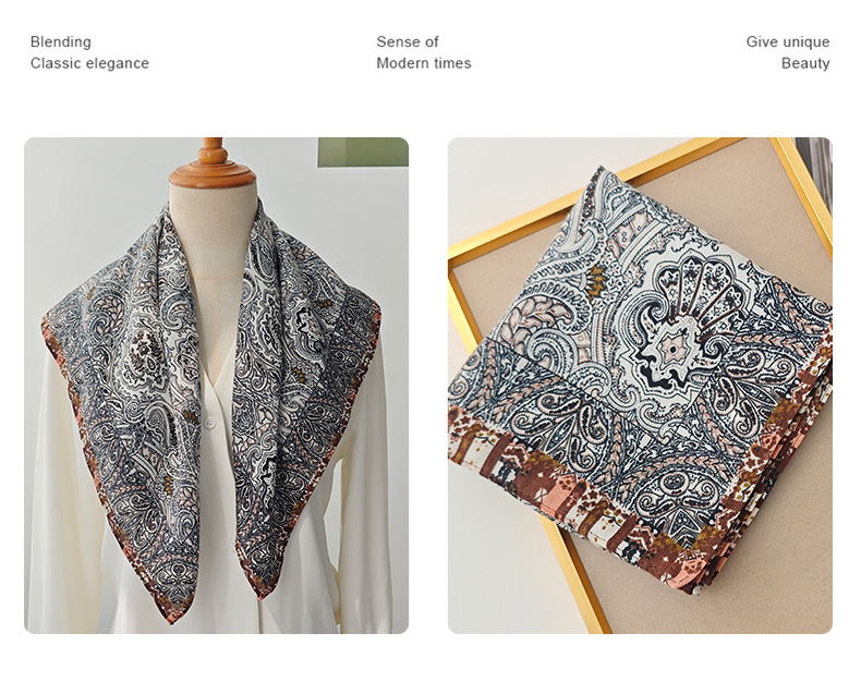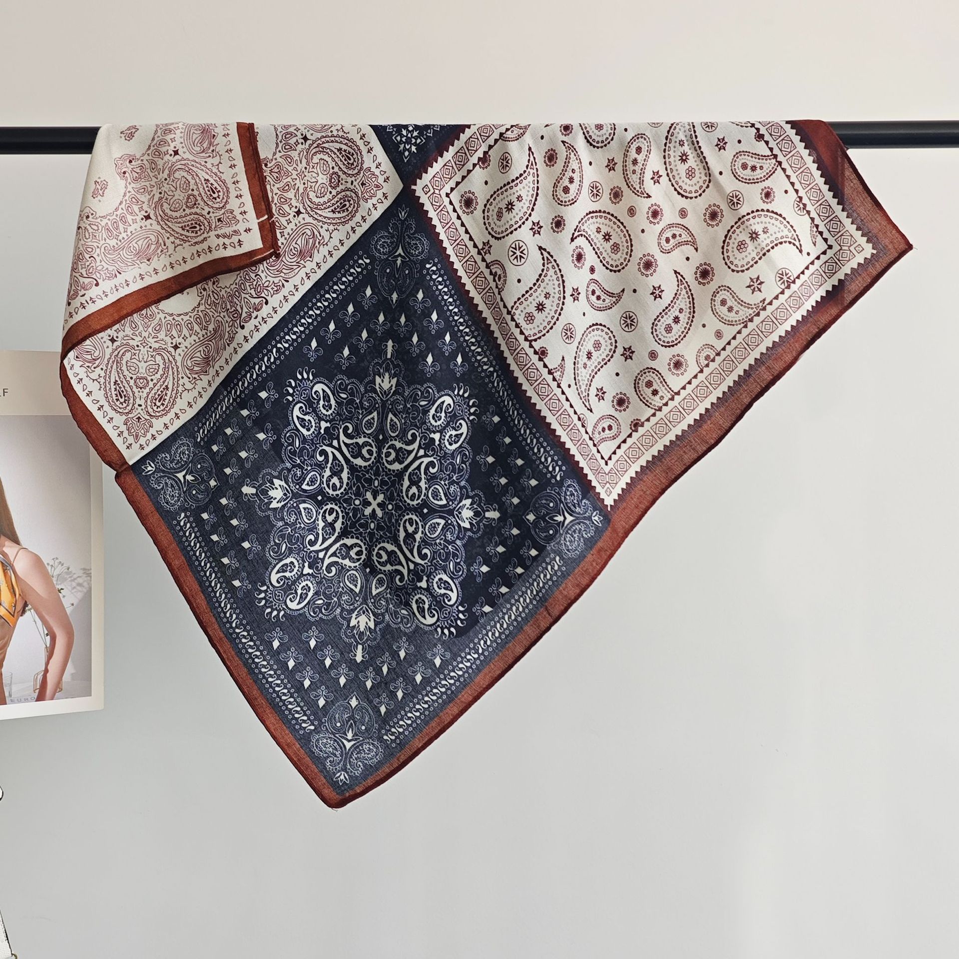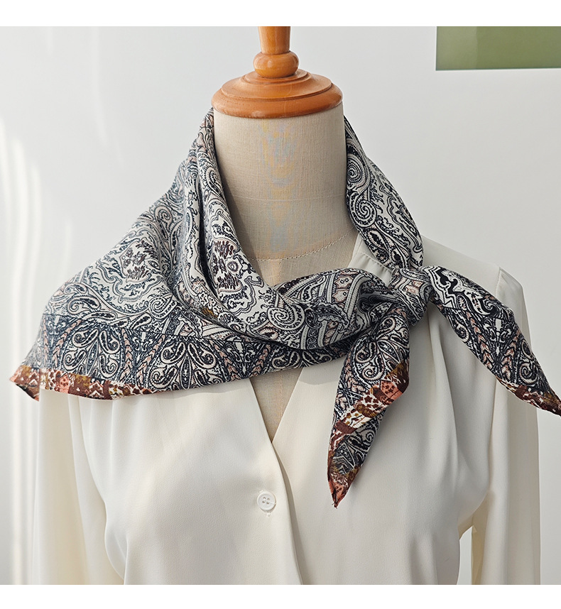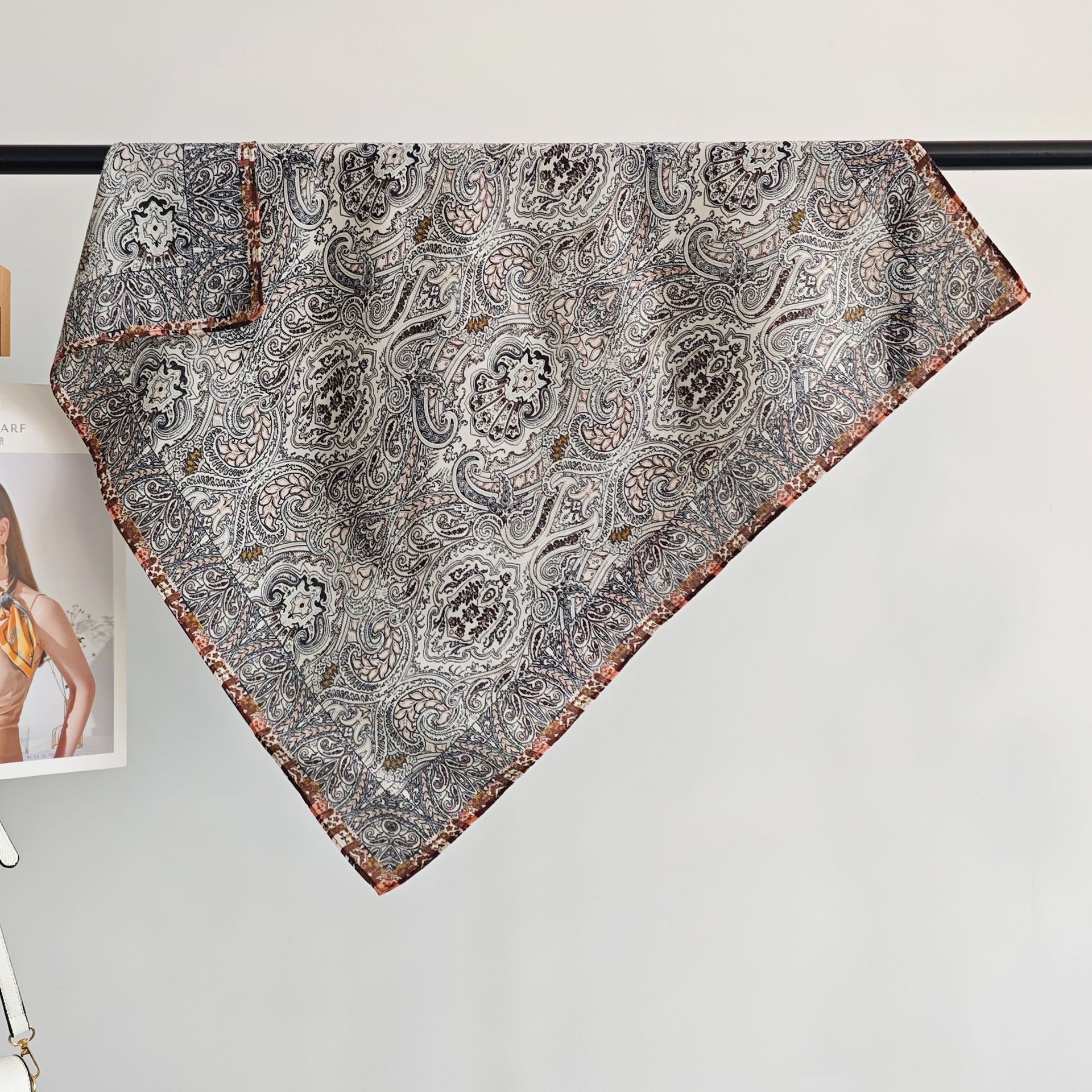4 개의 궁전 그리드 빈티지 캐슈 너트 프린트 실크 스카프 여성 스타일 분위기 감각 장식 목도리 디자인 감각 70 평방 스카프 도매