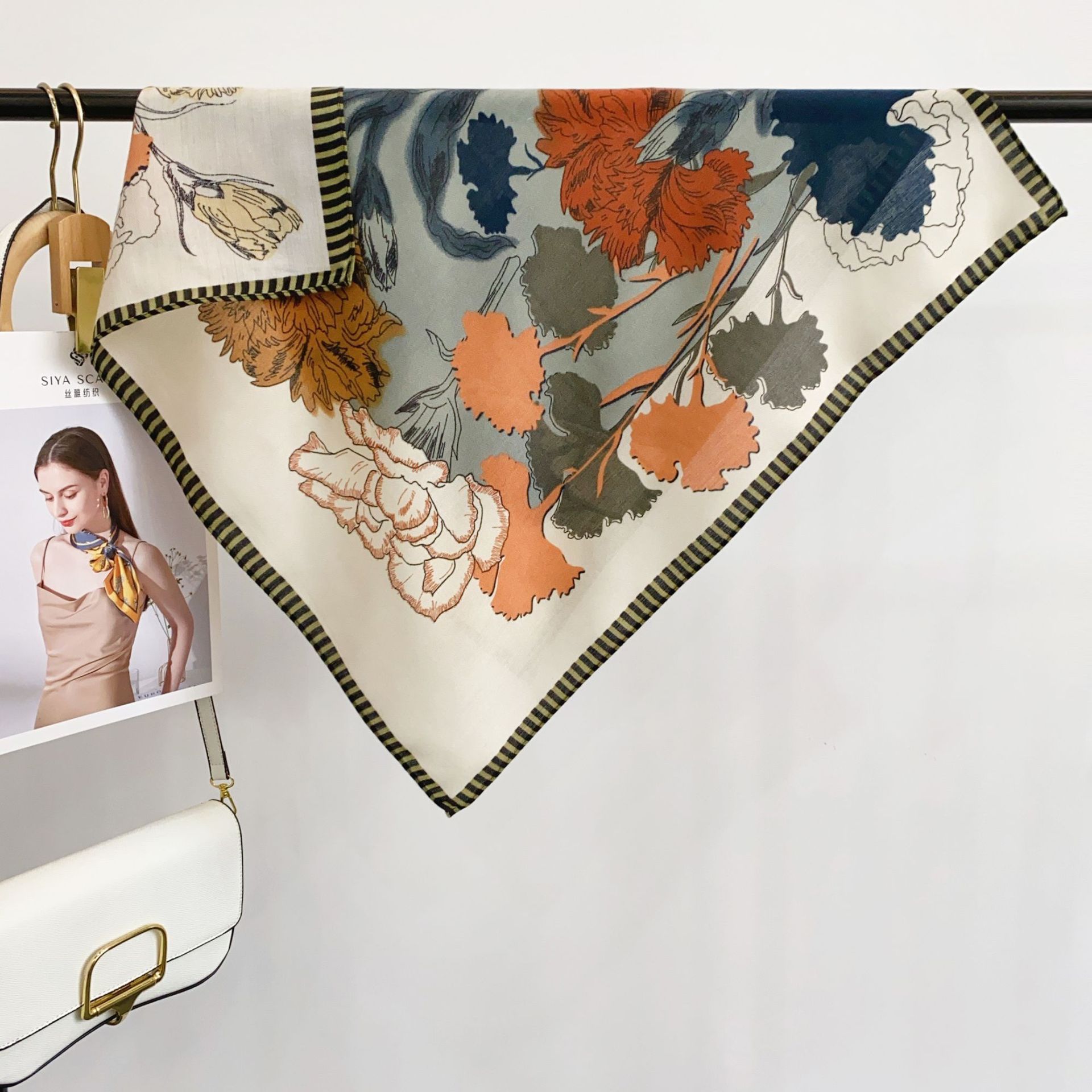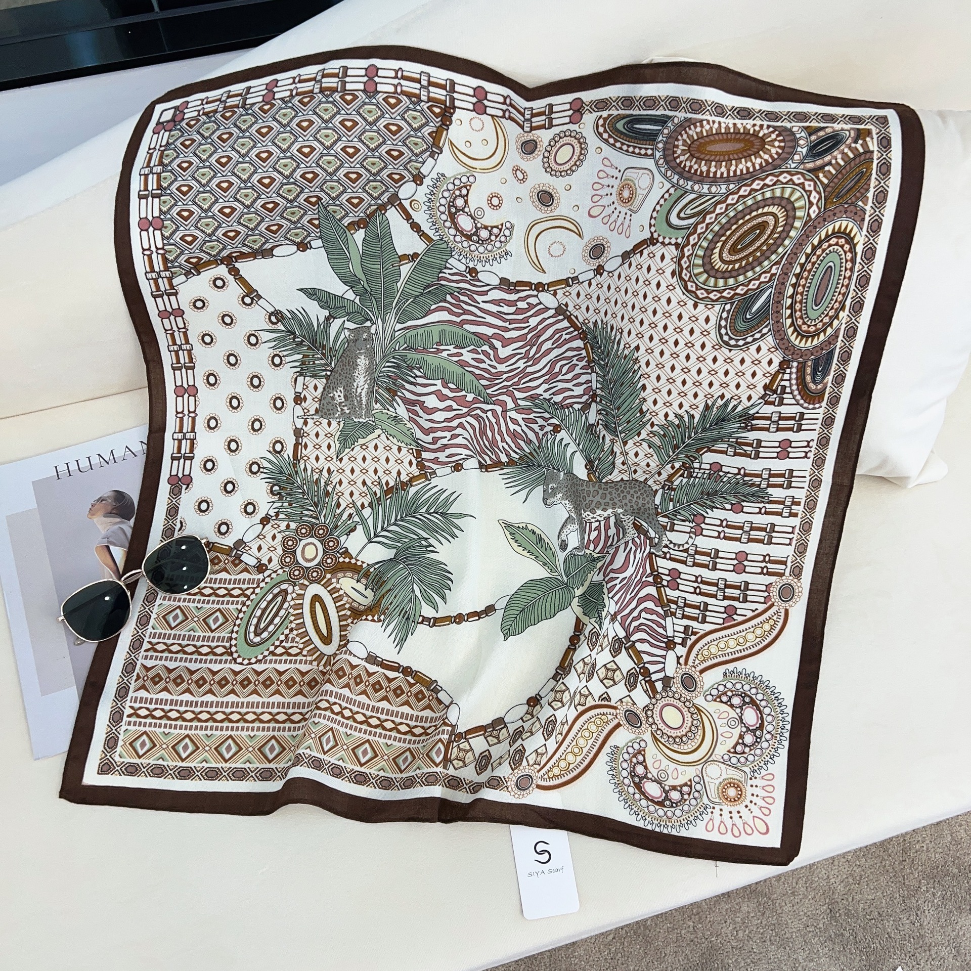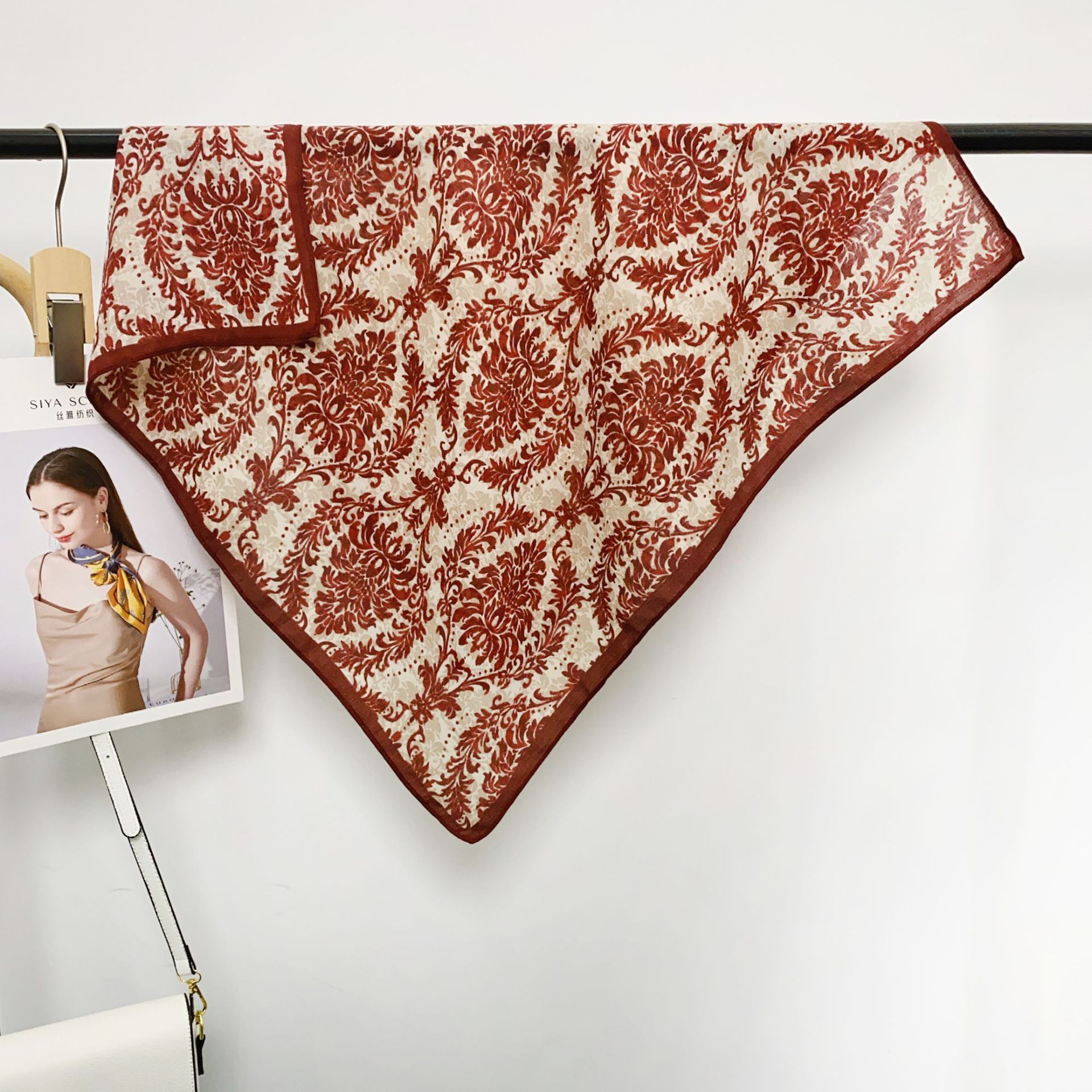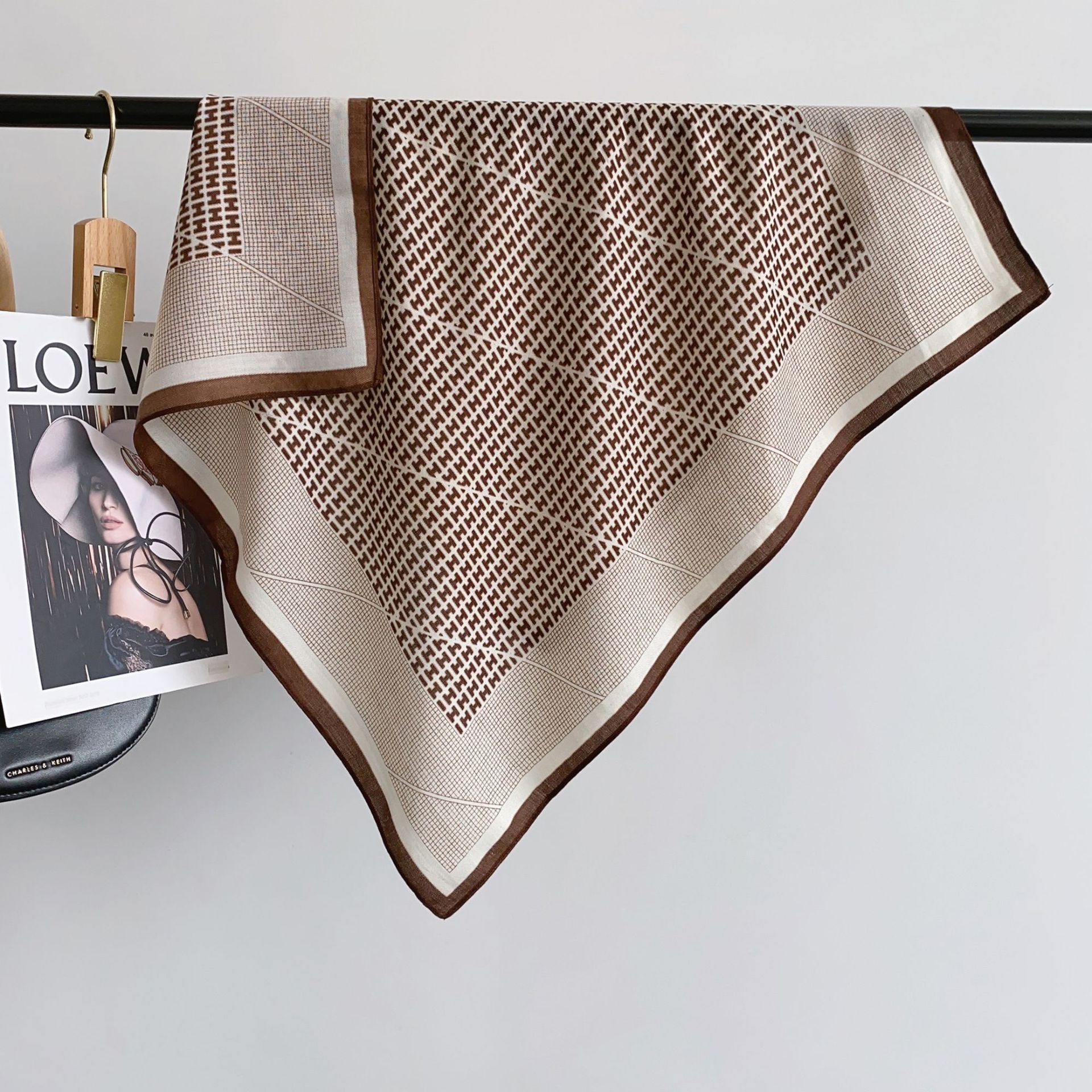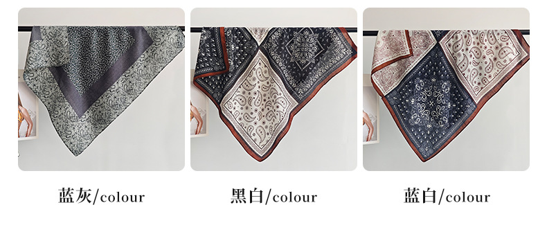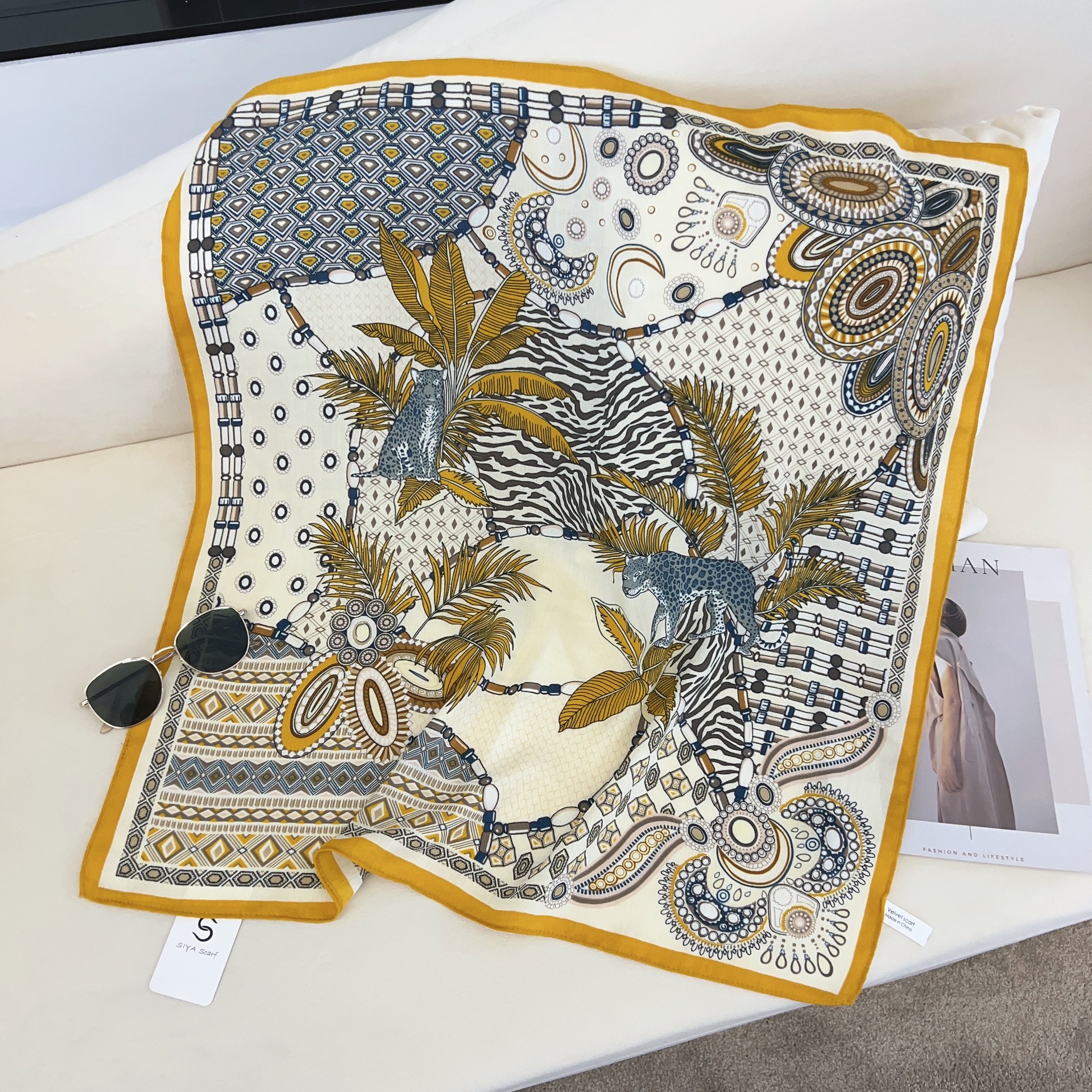 4 개의 궁전 그리드 빈티지 캐슈 너트 프린트 실크 스카프 여성 스타일 분위기 감각 장식 목도리 디자인 감각 70 평방 스카프 도매