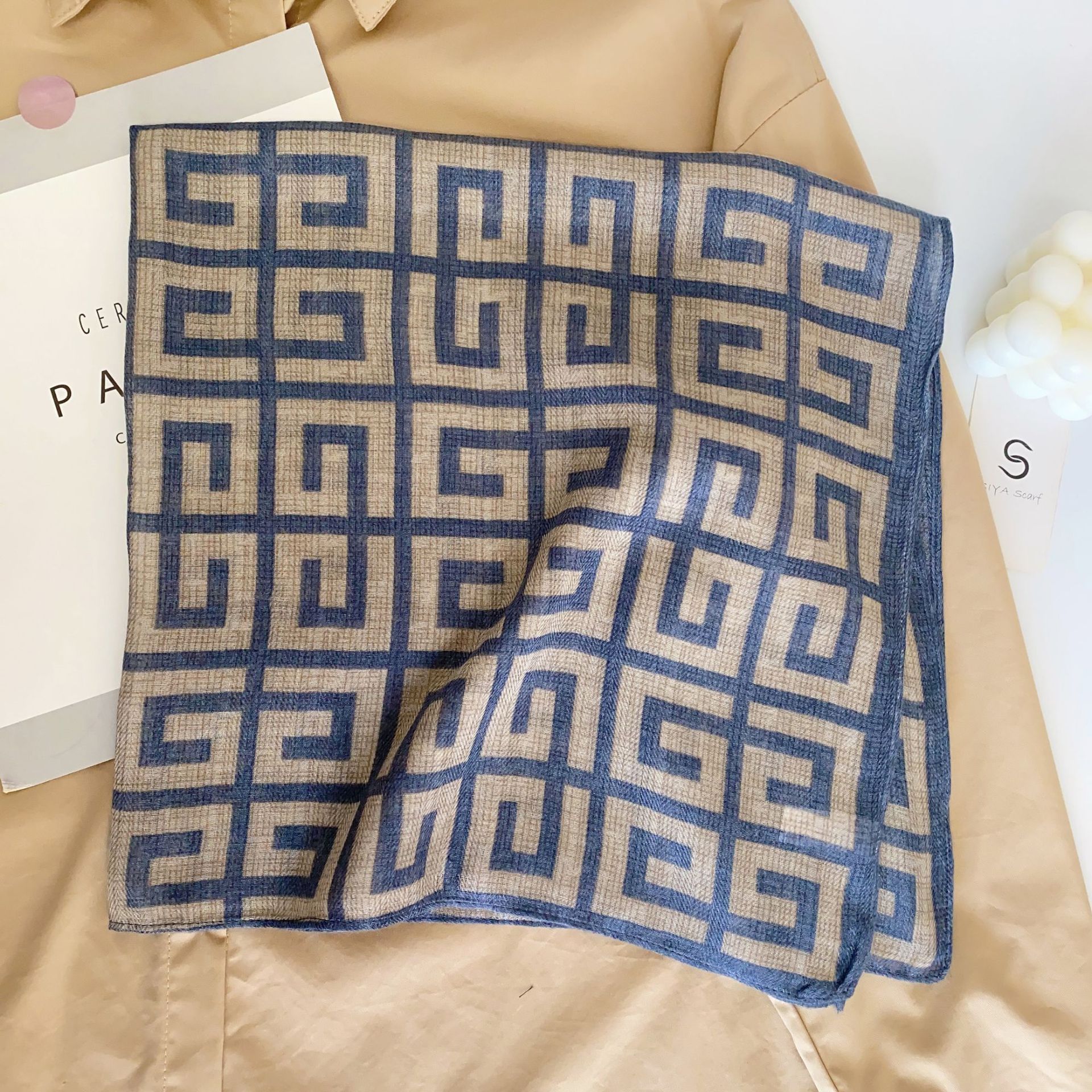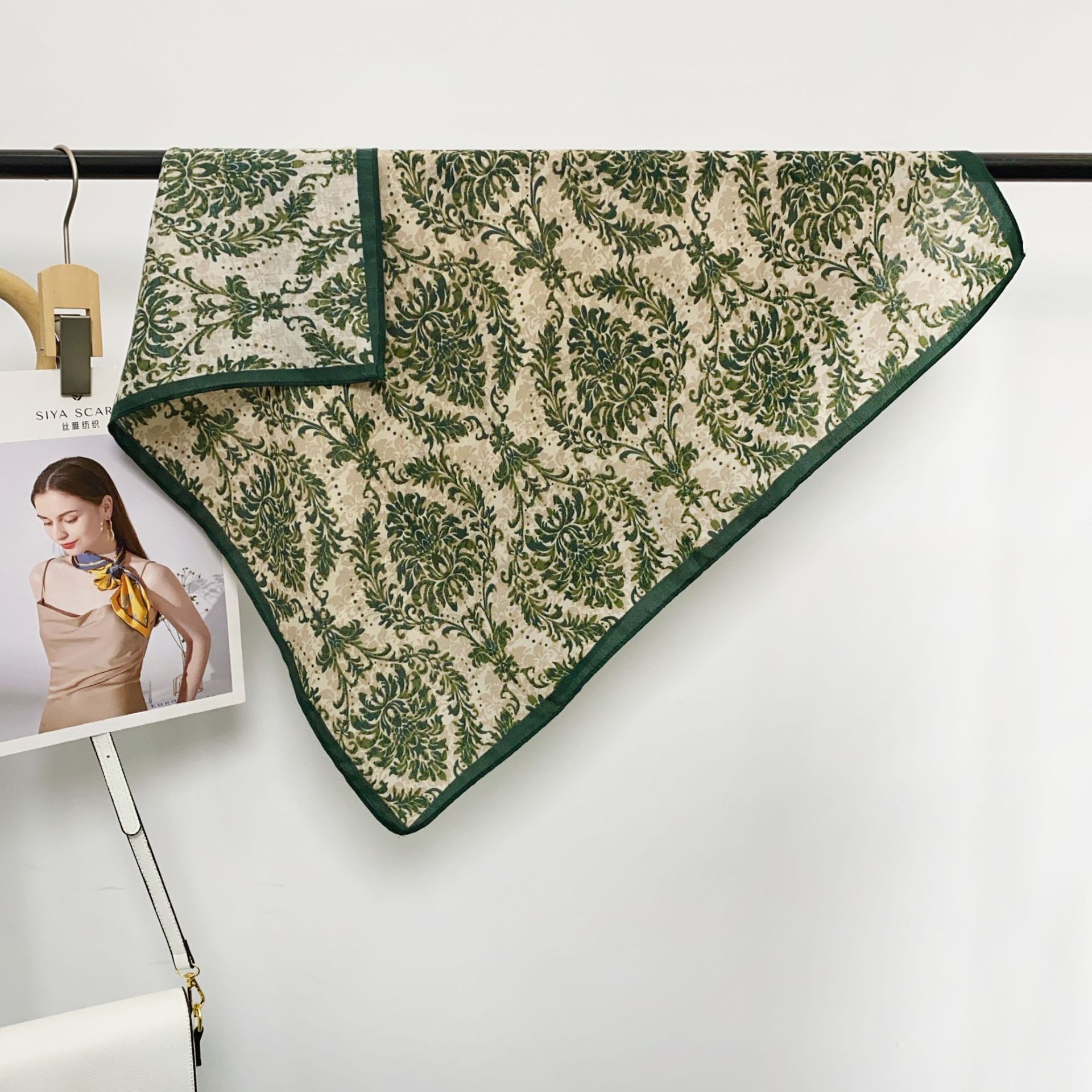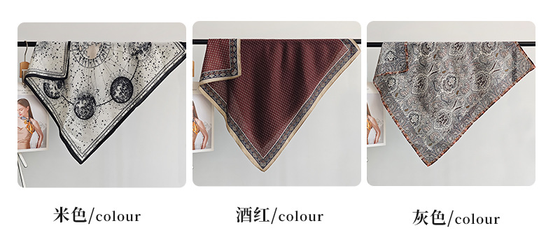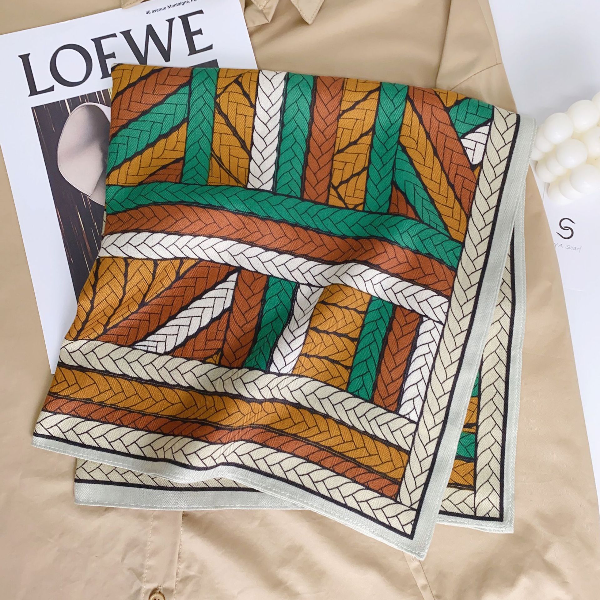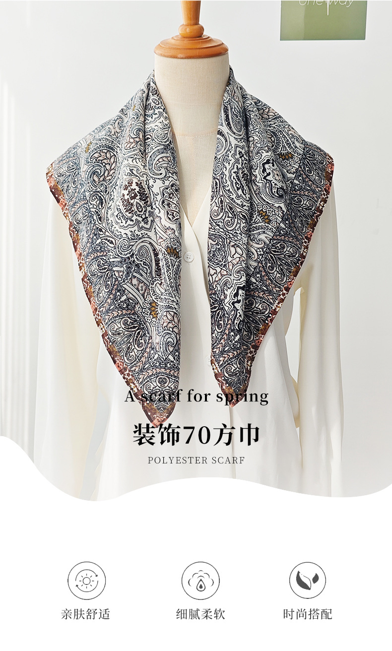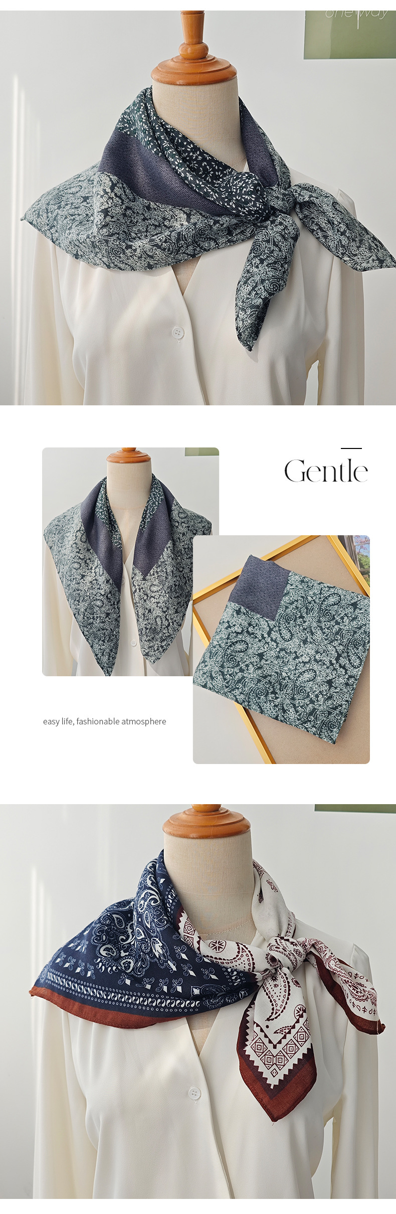 4 개의 궁전 그리드 빈티지 캐슈 너트 프린트 실크 스카프 여성 스타일 분위기 감각 장식 목도리 디자인 감각 70 평방 스카프 도매