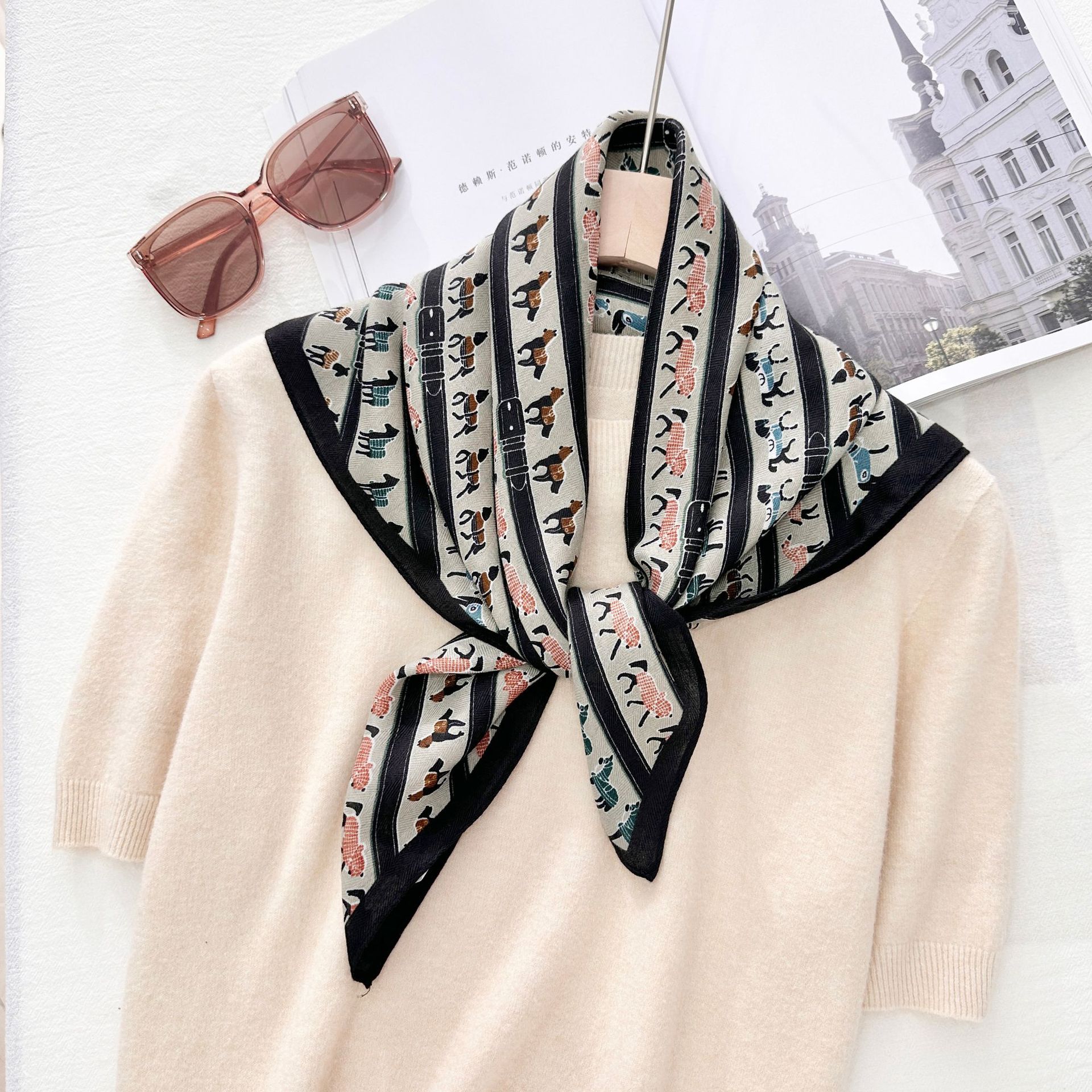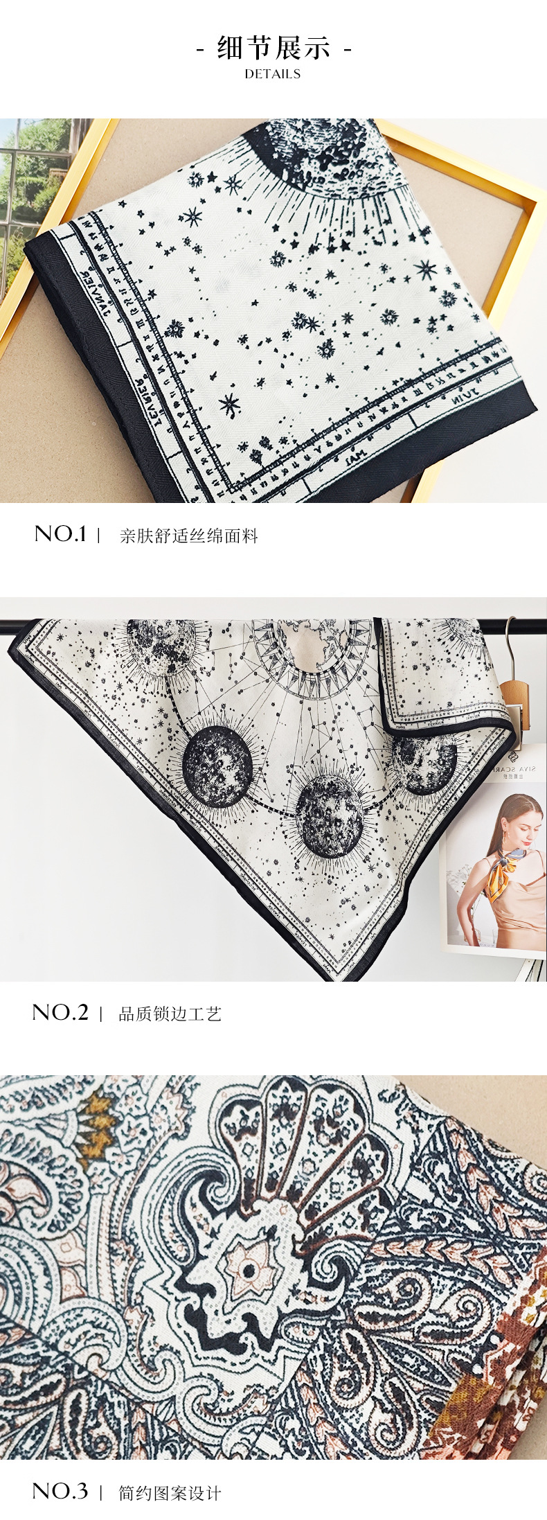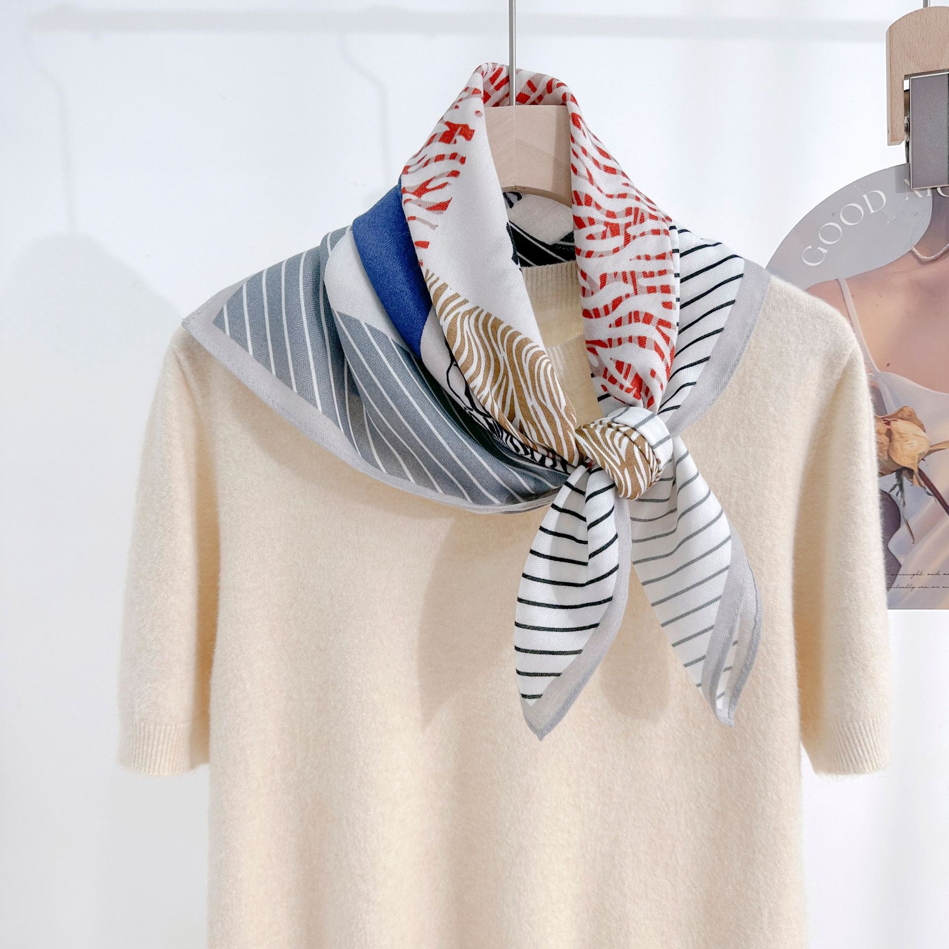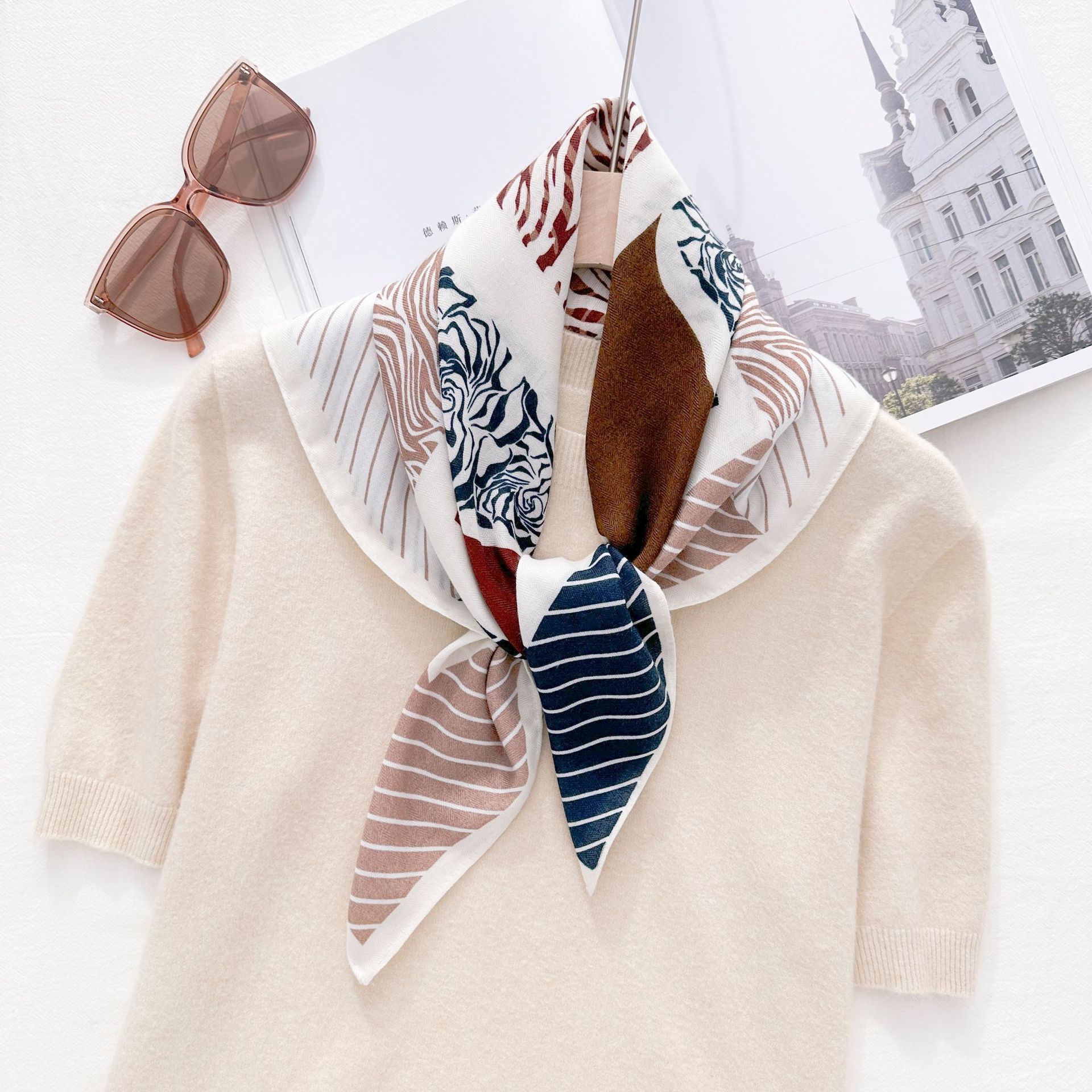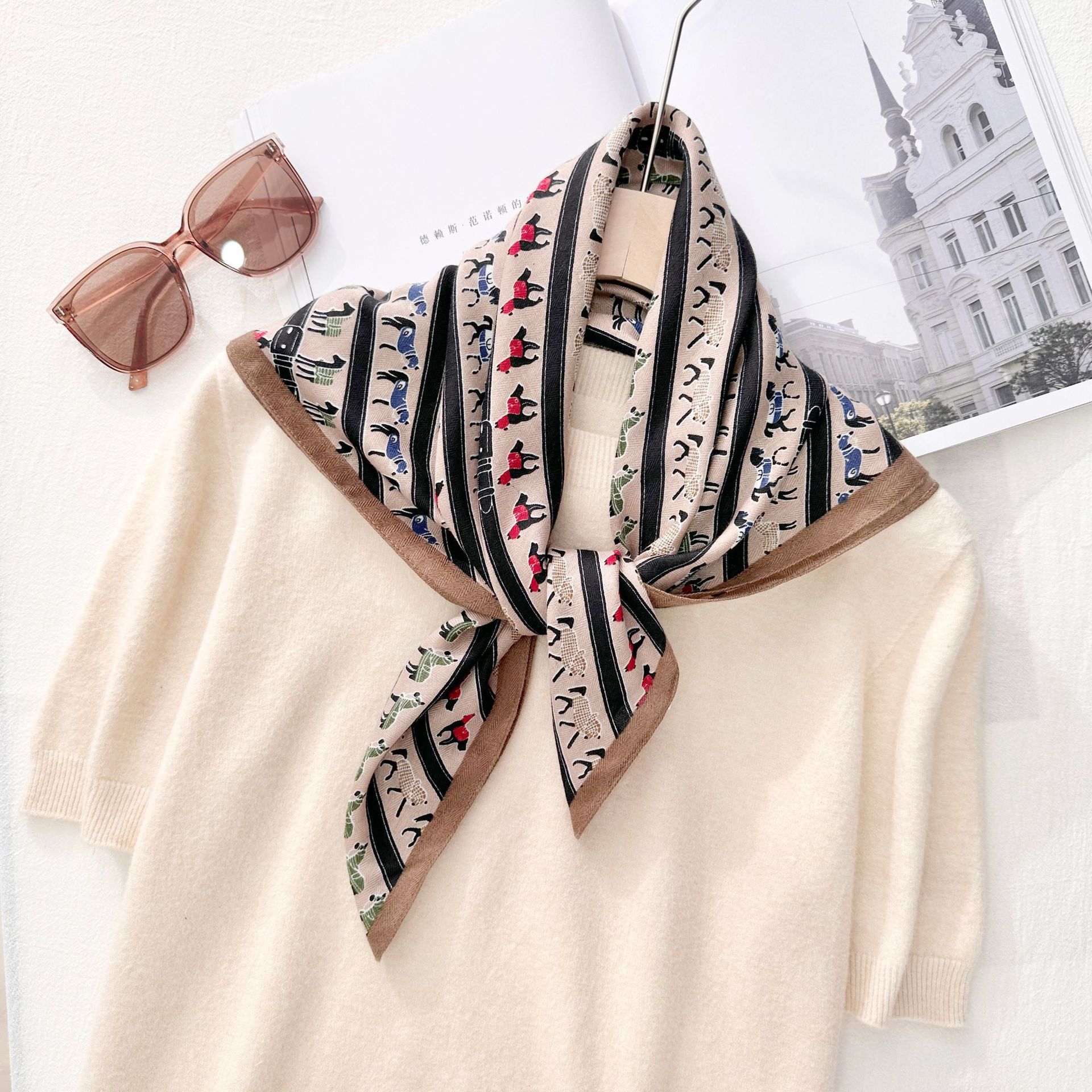 4 개의 궁전 그리드 빈티지 캐슈 너트 프린트 실크 스카프 여성 스타일 분위기 감각 장식 목도리 디자인 감각 70 평방 스카프 도매
