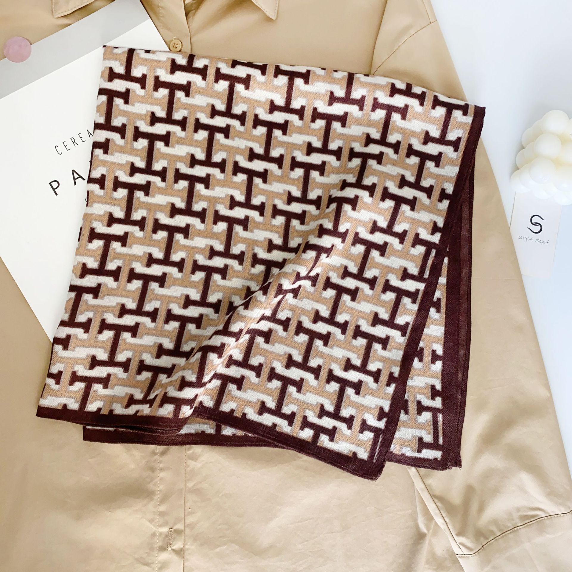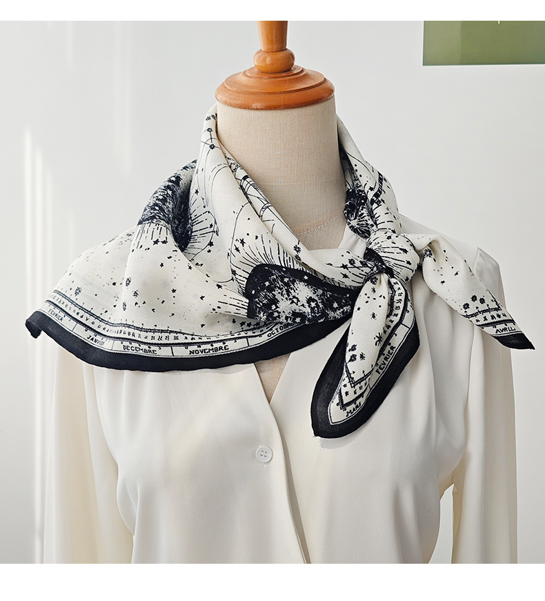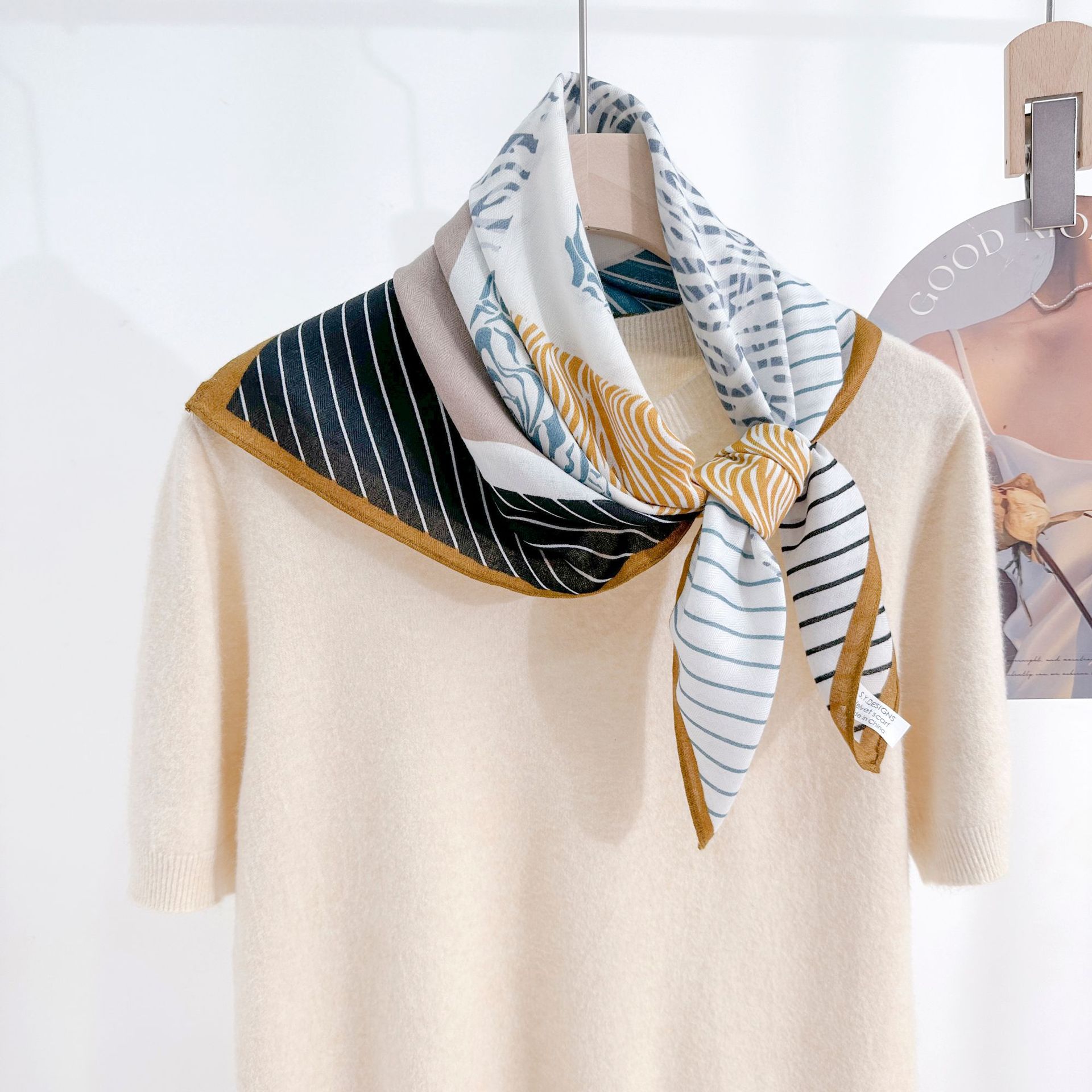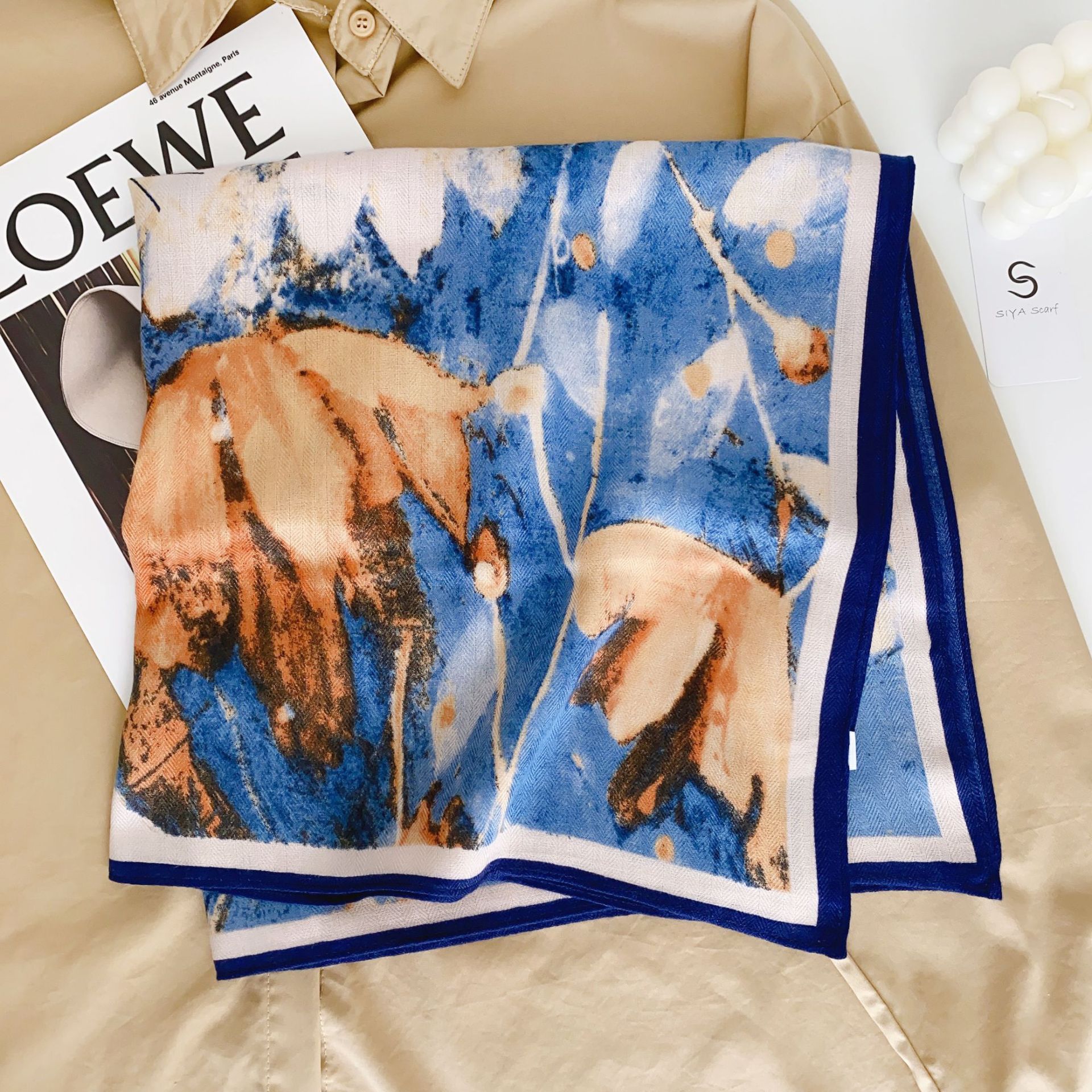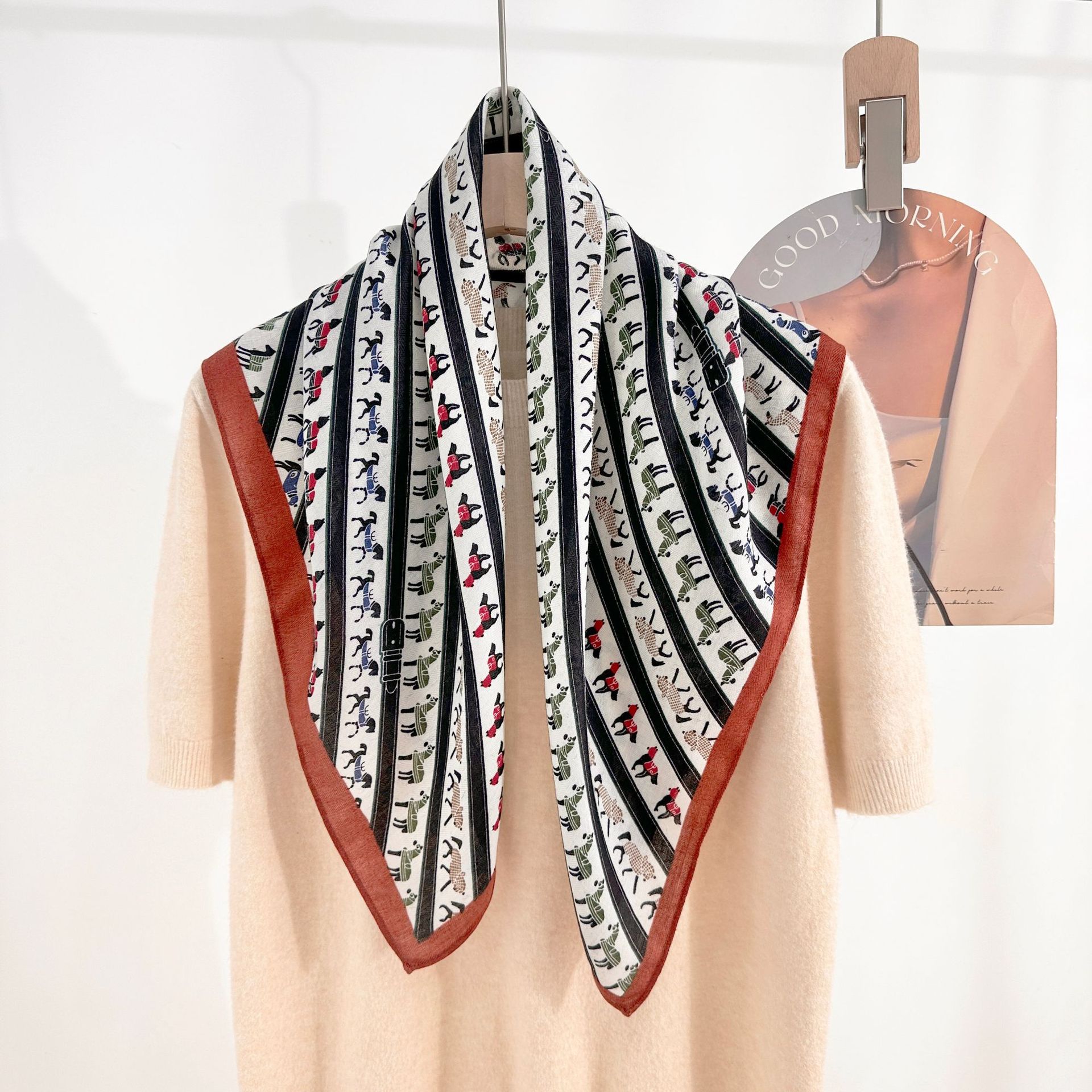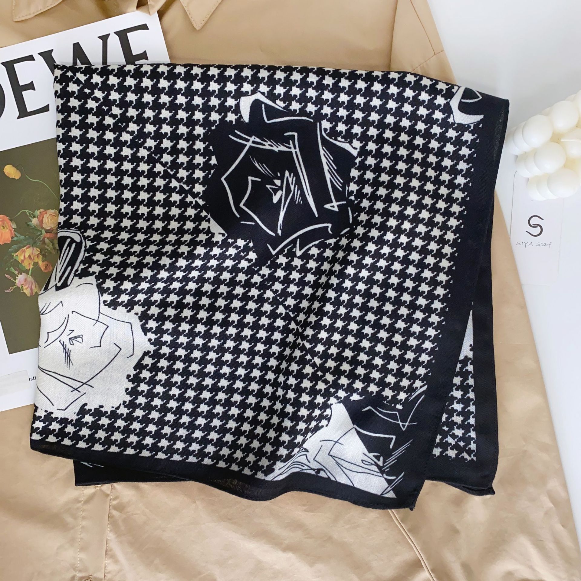 4 개의 궁전 그리드 빈티지 캐슈 너트 프린트 실크 스카프 여성 스타일 분위기 감각 장식 목도리 디자인 감각 70 평방 스카프 도매
