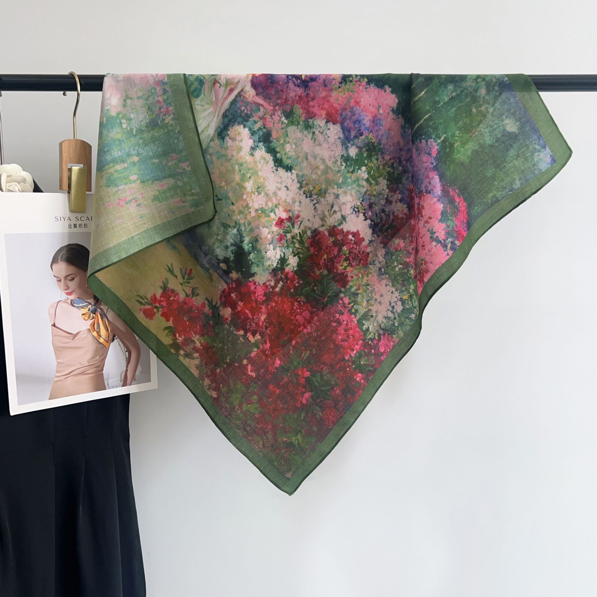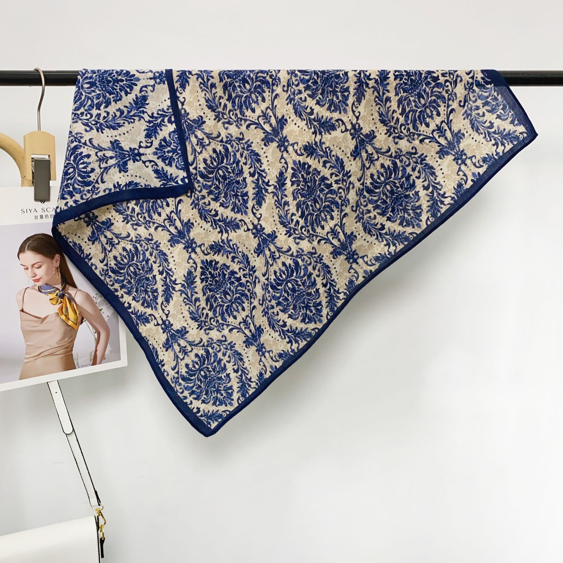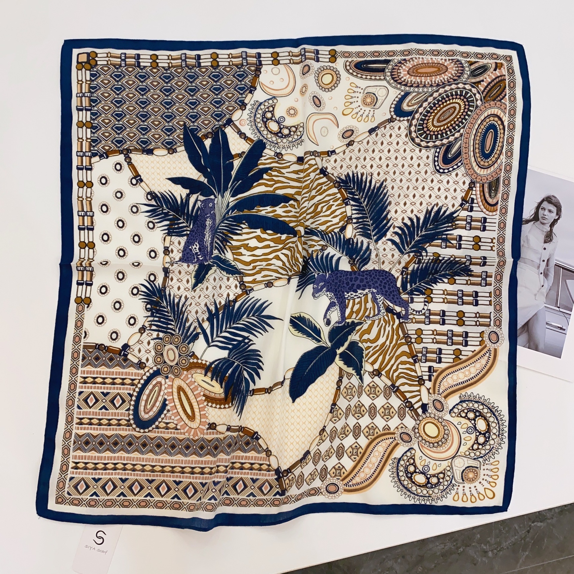 4 개의 궁전 그리드 빈티지 캐슈 너트 프린트 실크 스카프 여성 스타일 분위기 감각 장식 목도리 디자인 감각 70 평방 스카프 도매스토어 가기