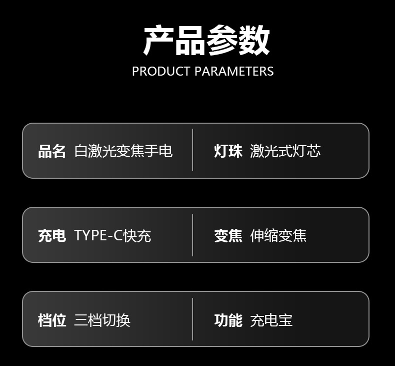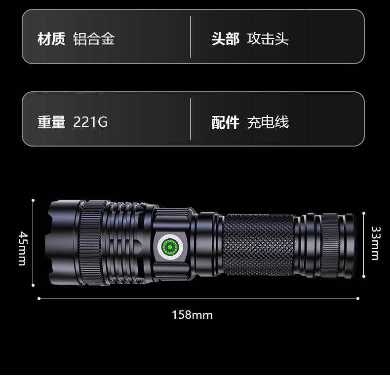 긴 수명 휴대용 알루미늄 합금 손전등을 충전하는 국경 새로운 야외 매우 밝은 콘덴서 장거리 Type-C