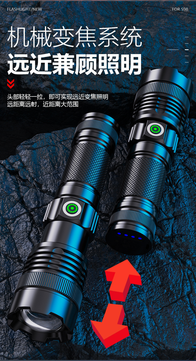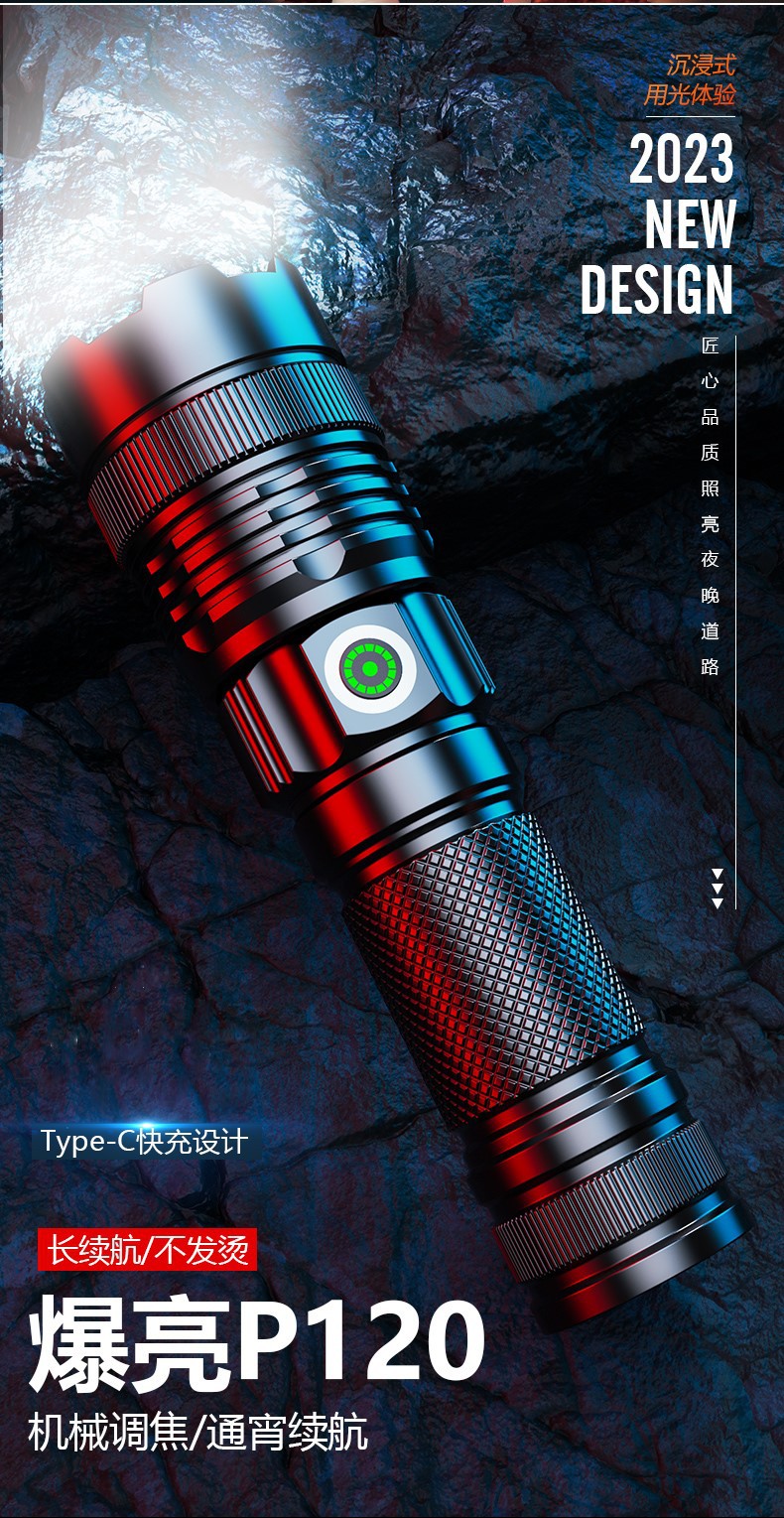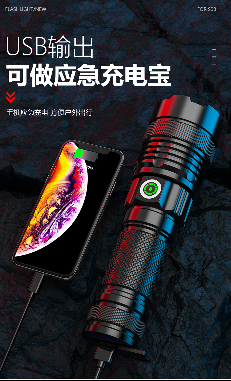 긴 수명 휴대용 알루미늄 합금 손전등을 충전하는 국경 새로운 야외 매우 밝은 콘덴서 장거리 Type-C스토어 가기