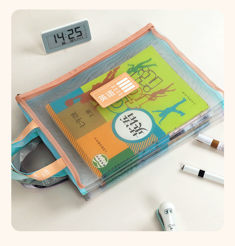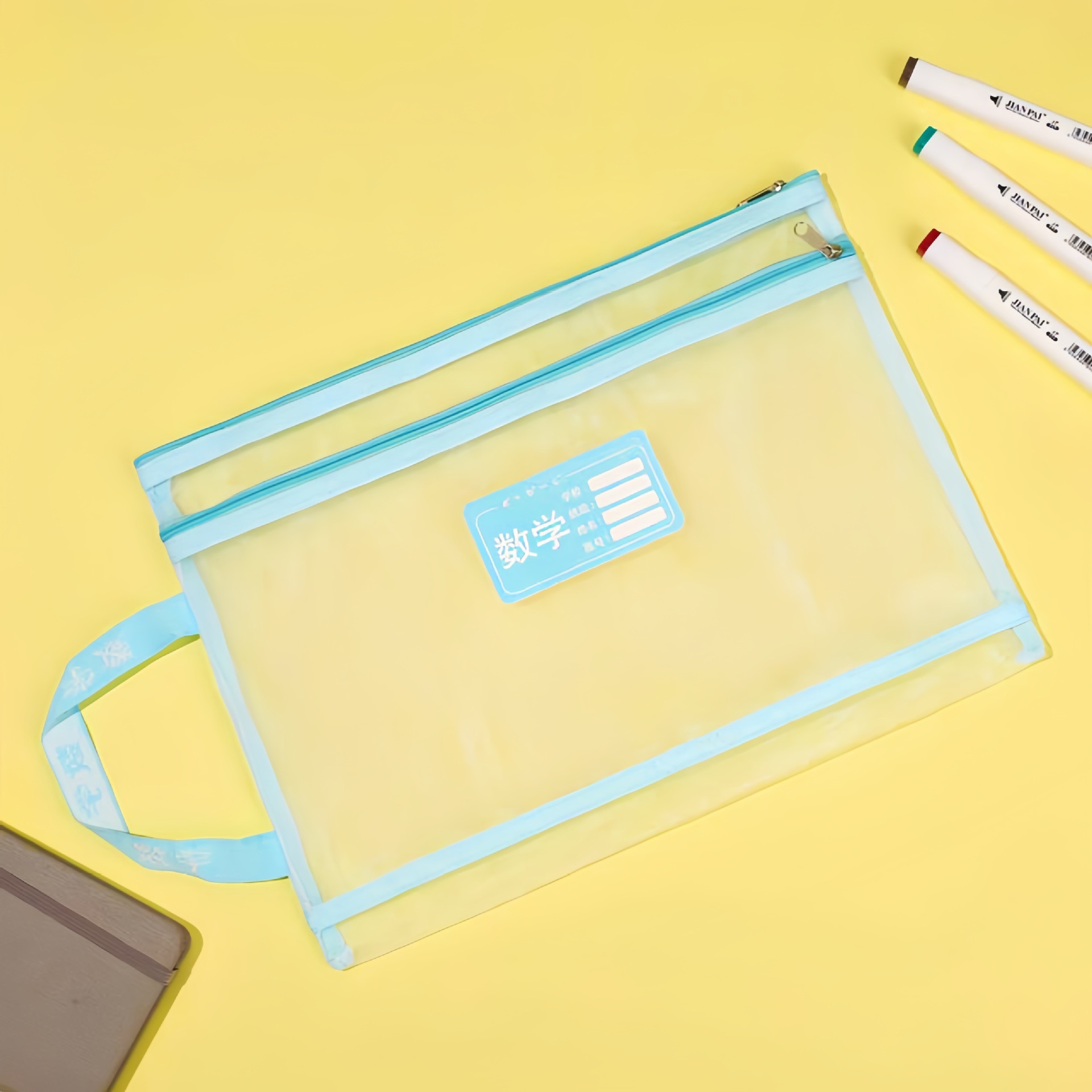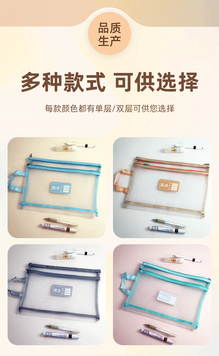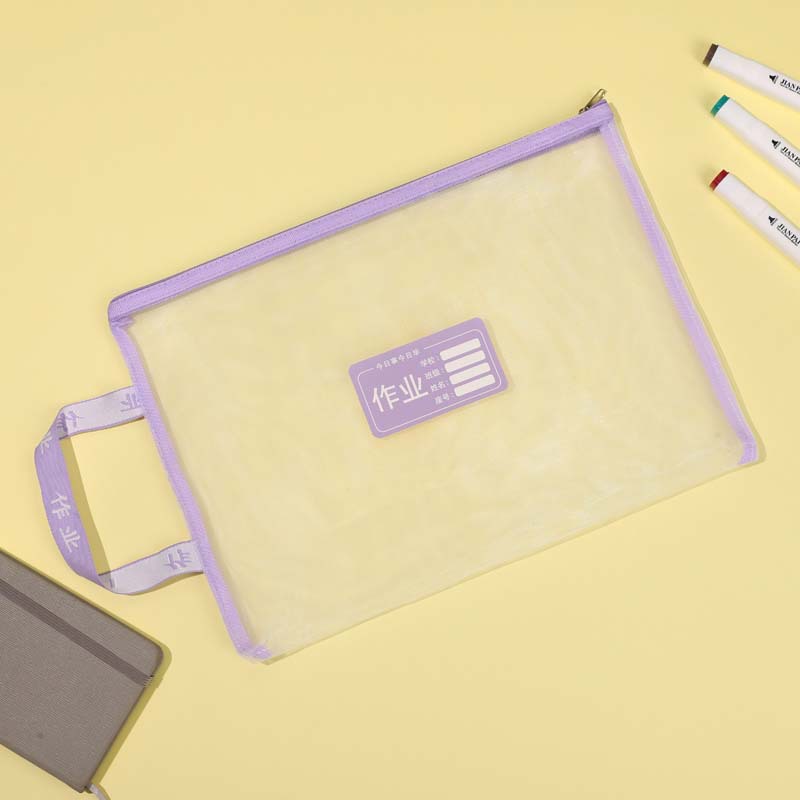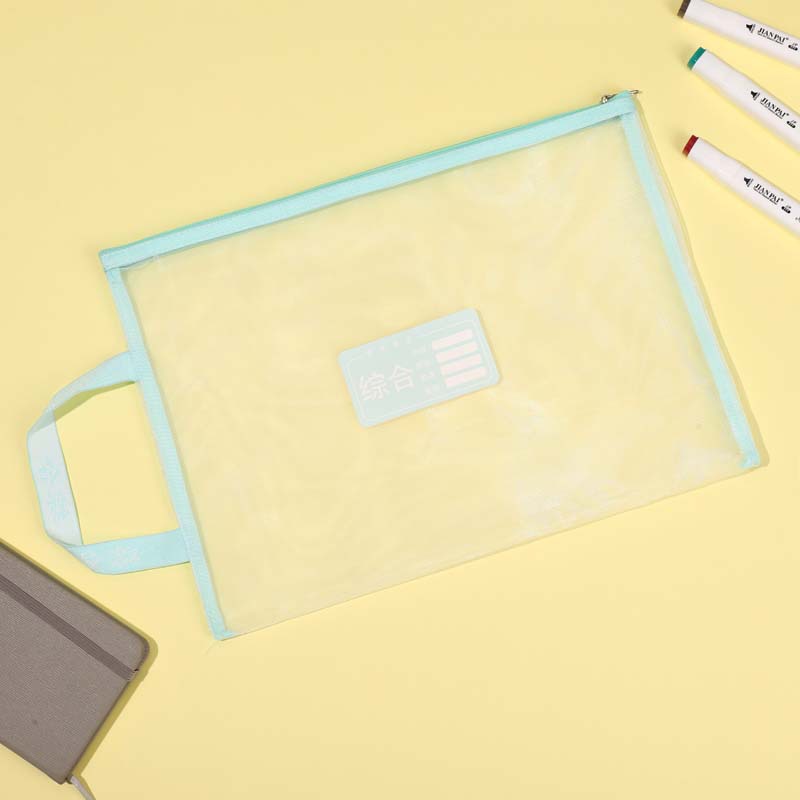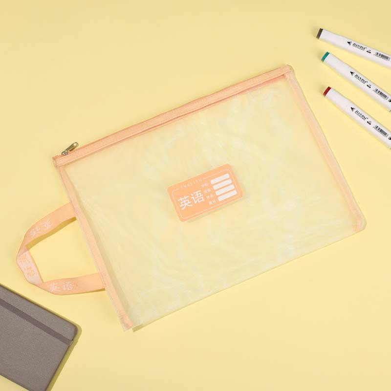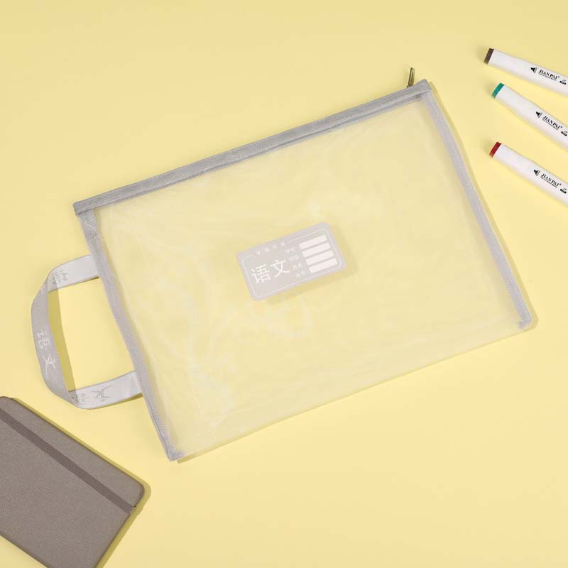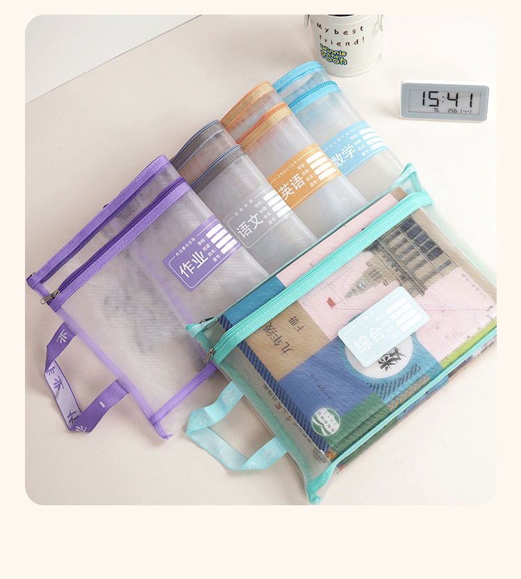 专用大开口文件袋科目袋网纱拉链式学生手提袋考试补习收纳作业袋