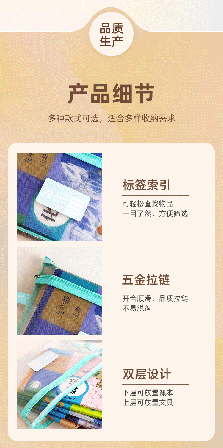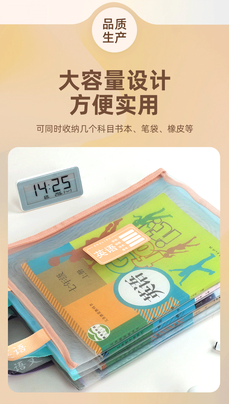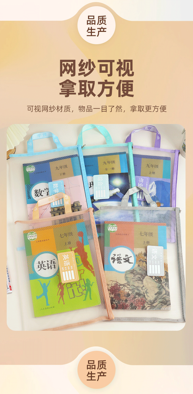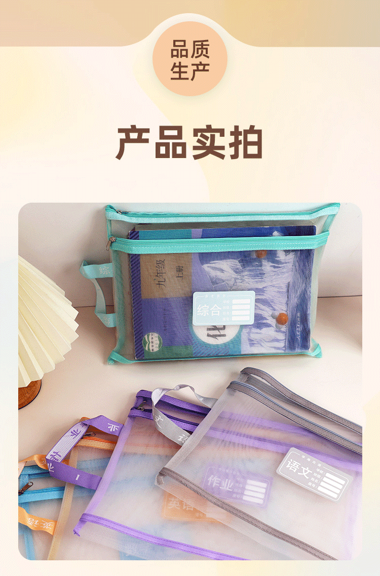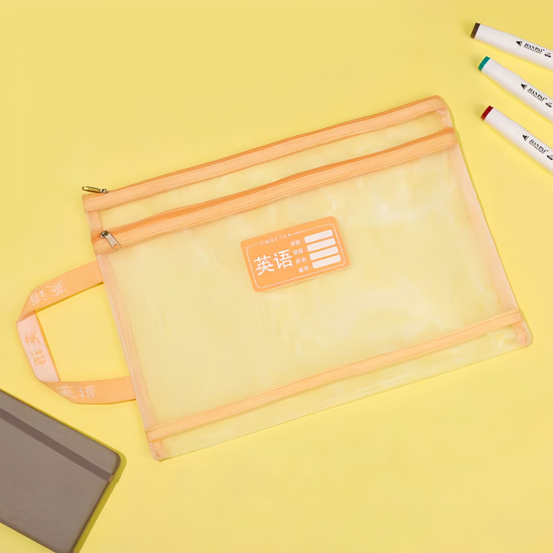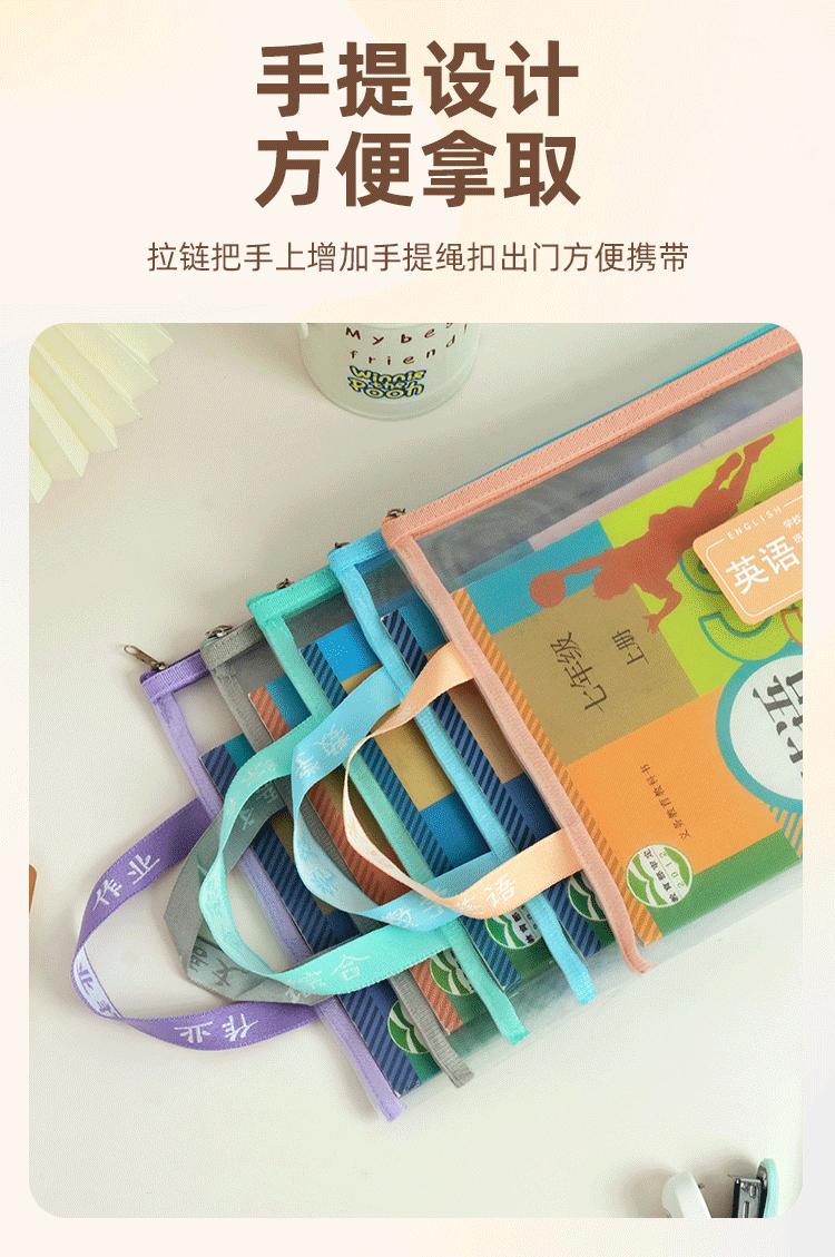 专用大开口文件袋科目袋网纱拉链式学生手提袋考试补习收纳作业袋