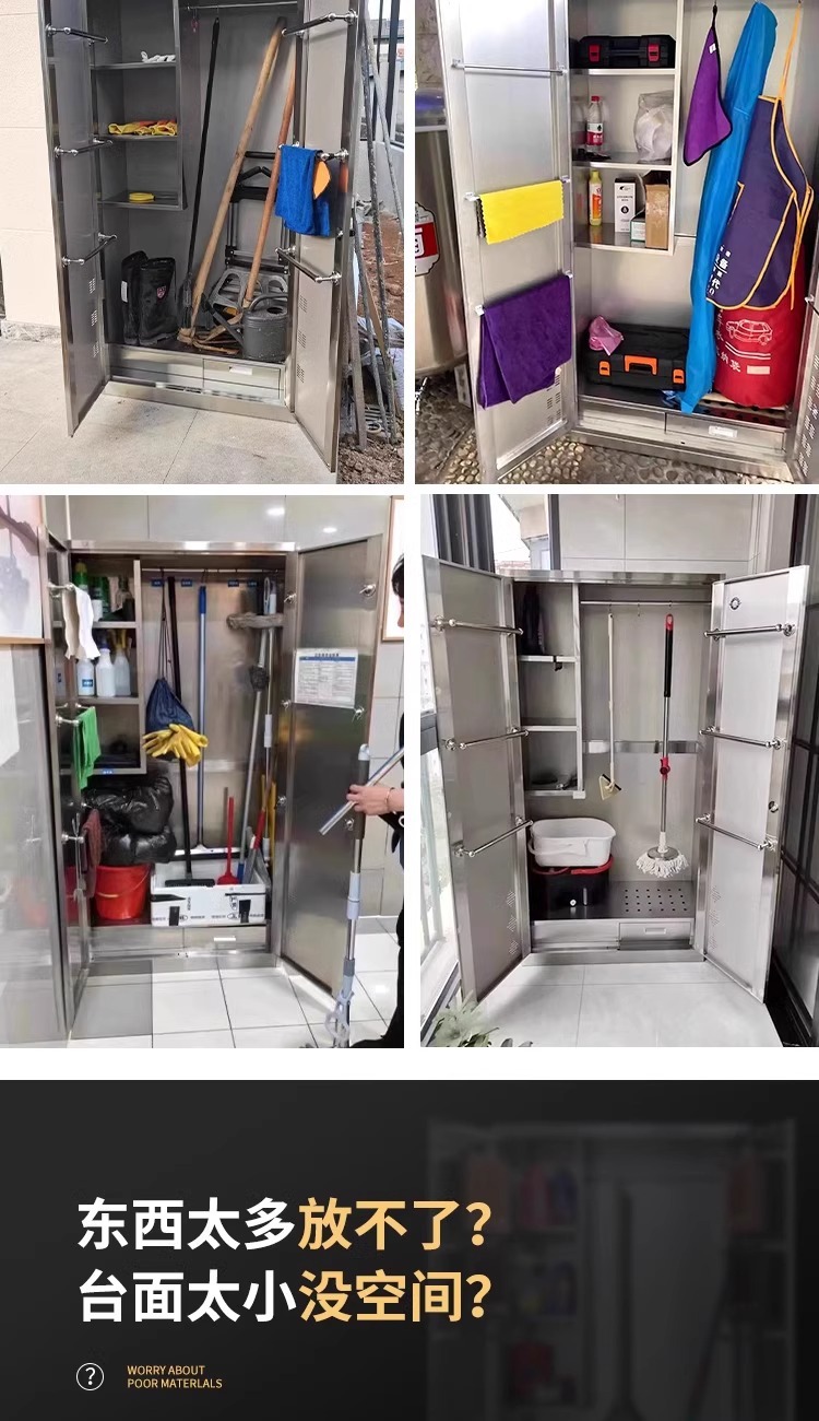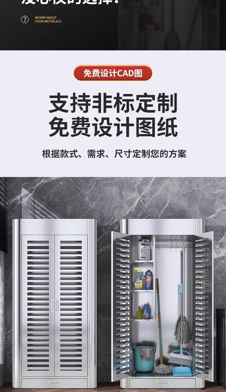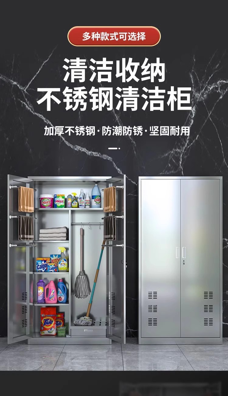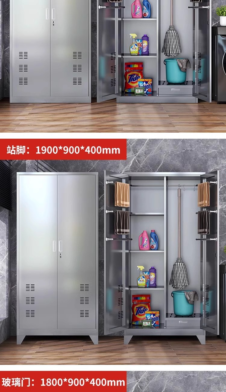 녹 방지 스테인레스 스틸 청소 캐비닛 학교 교실 발코니 청소 도구 걸레 캐비닛 위생 청소 보관 캐비닛