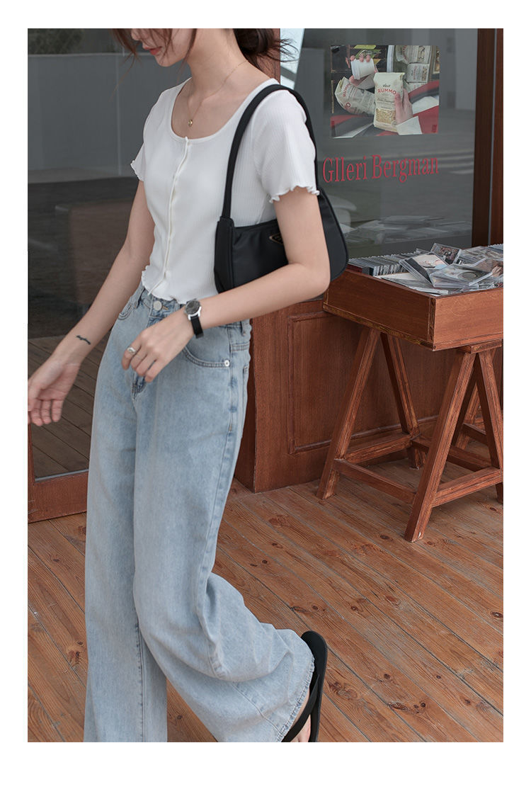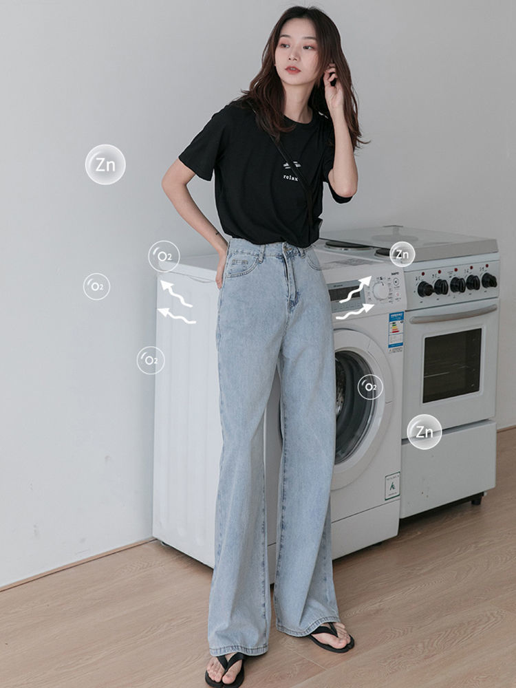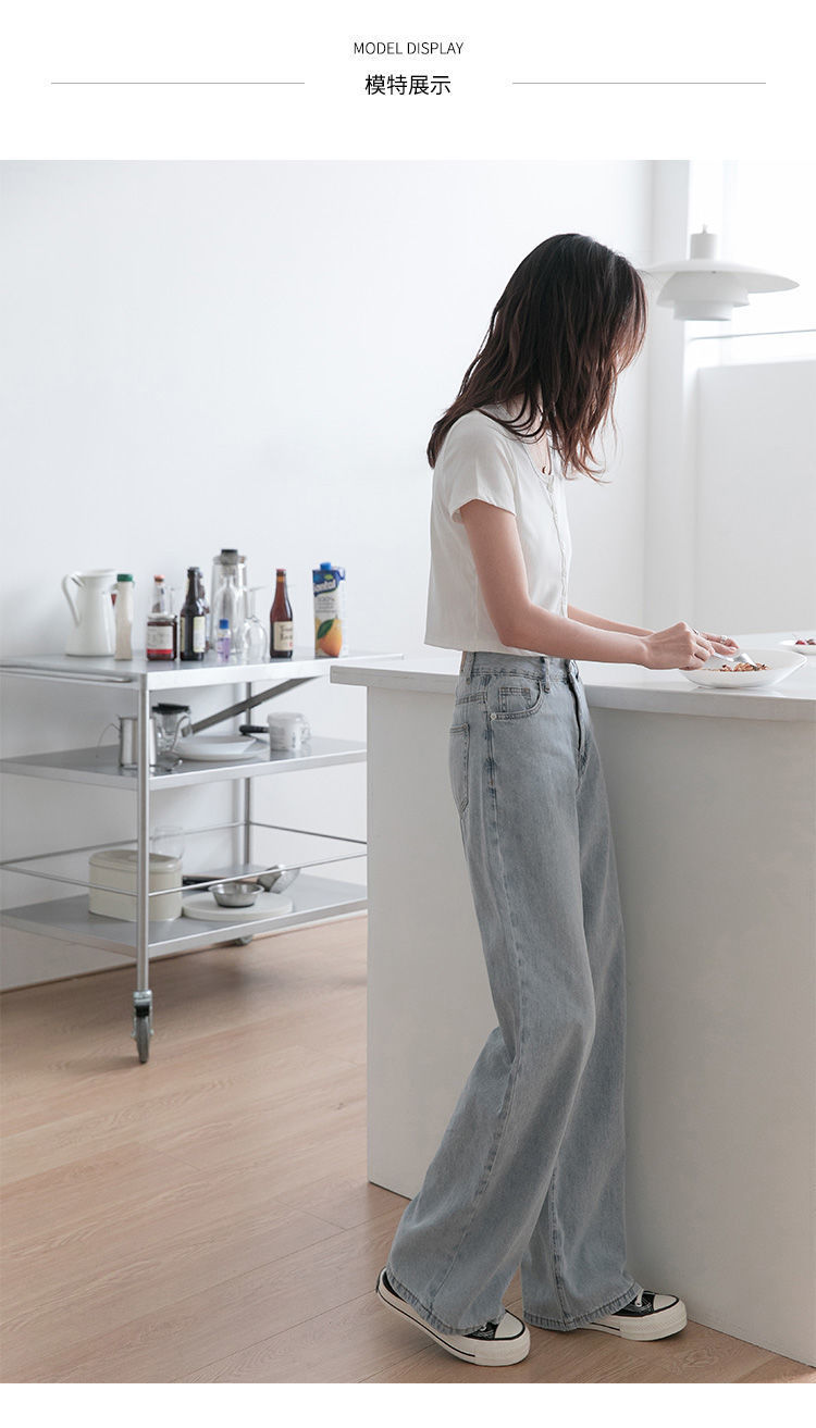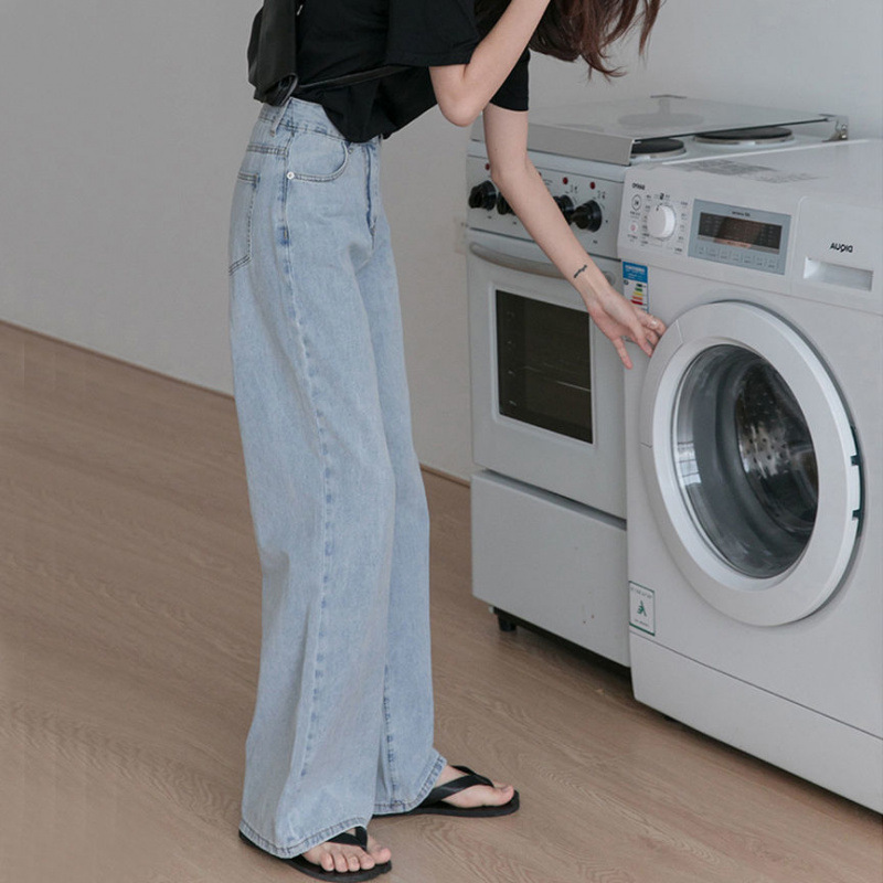 여성용 하이웨이스트 청바지 루즈 스트레이트 2024 가을 신작 한국 스타일 트렌디 인 슬리밍 와이드 레그 바닥 길이 바지스토어 가기