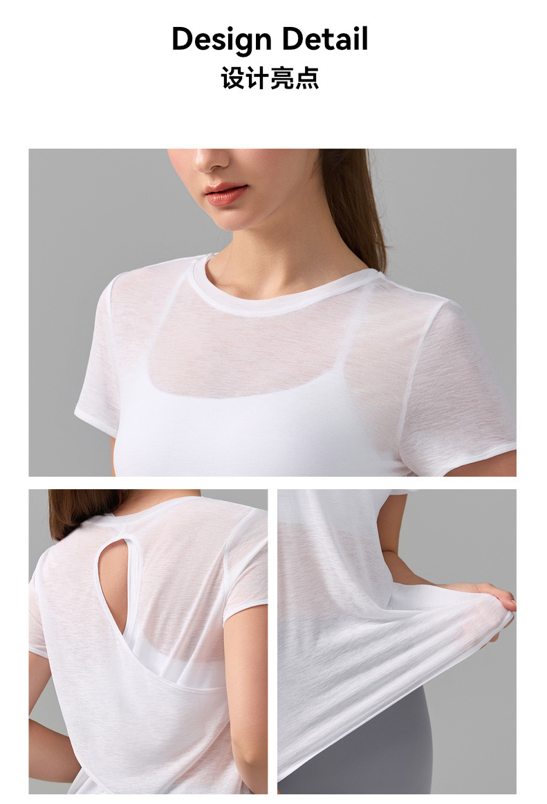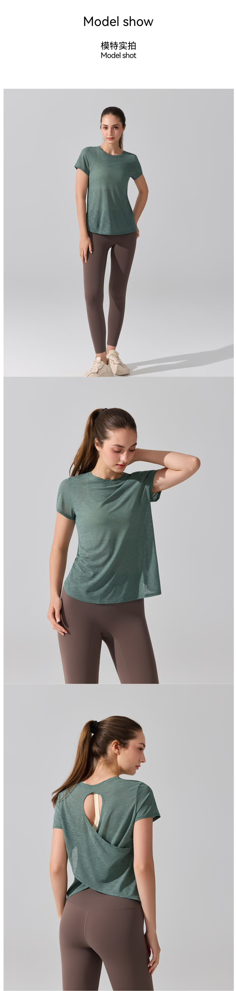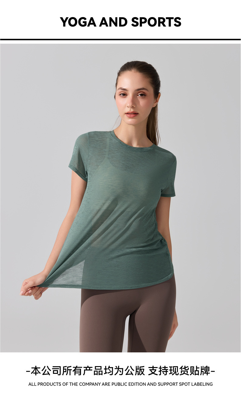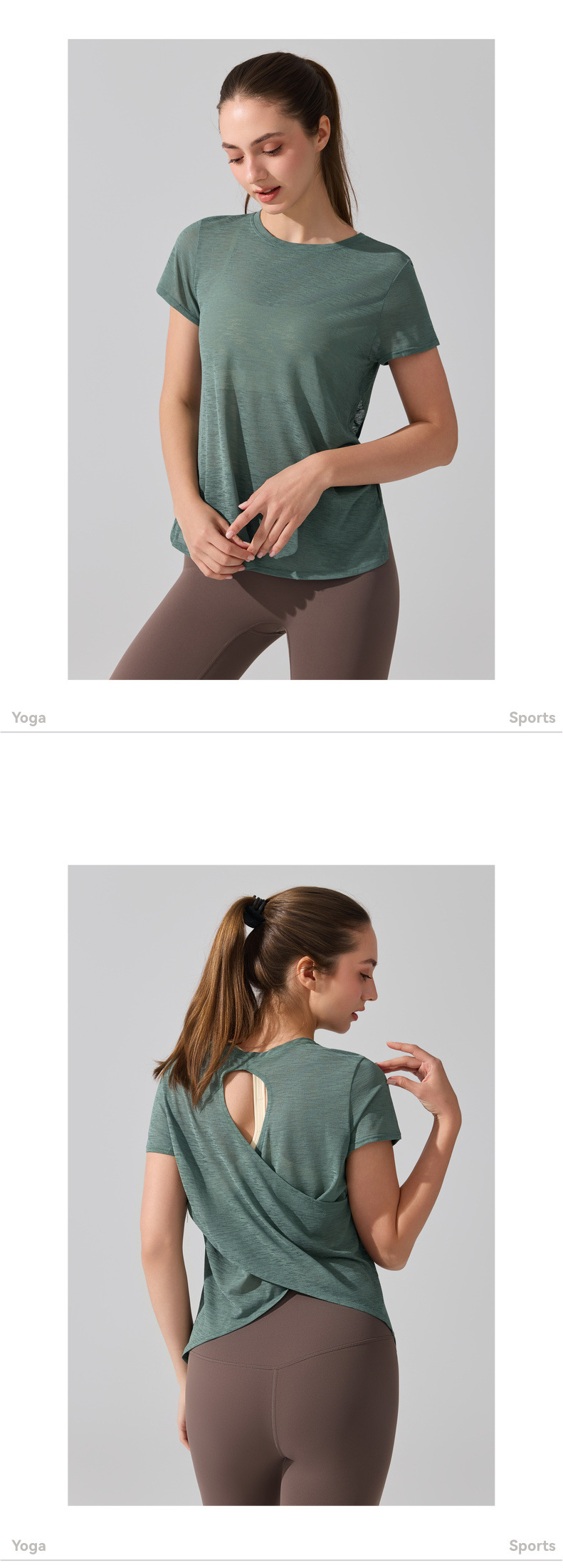 여성용 크로스보더 요가복 반팔 티셔츠, 가볍고 통기성 좋은 속이 비치는 아름다운 등 디자인, 댄스 피트니스 커버업, 스포츠 러닝탑스토어 가기