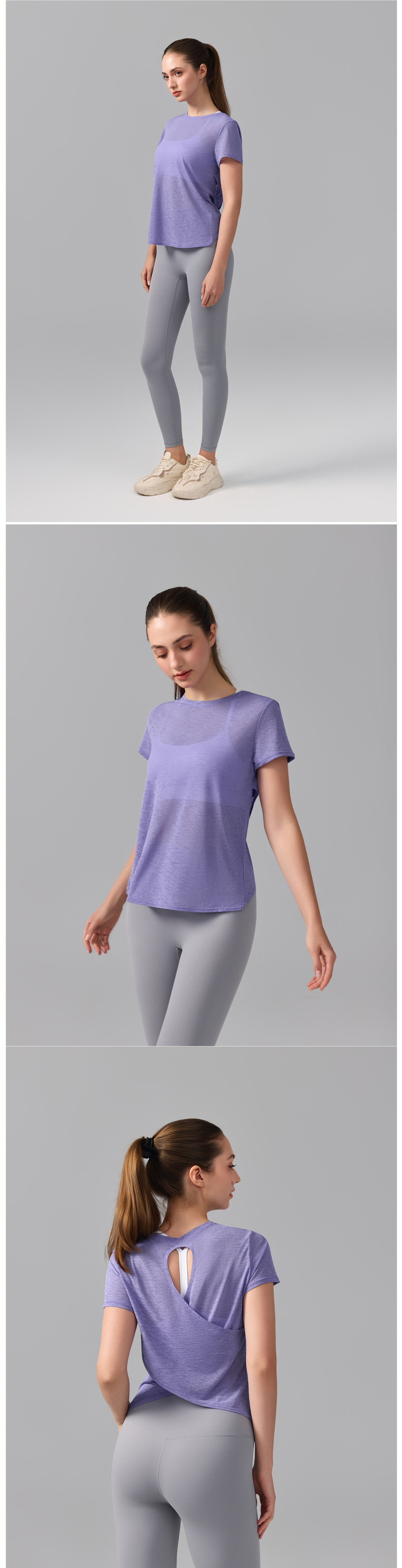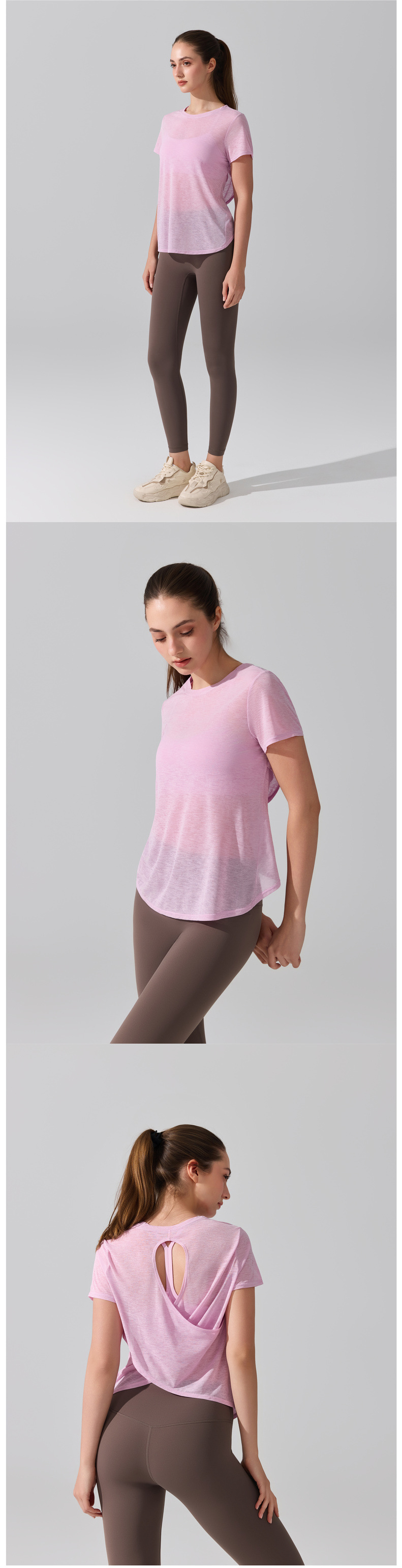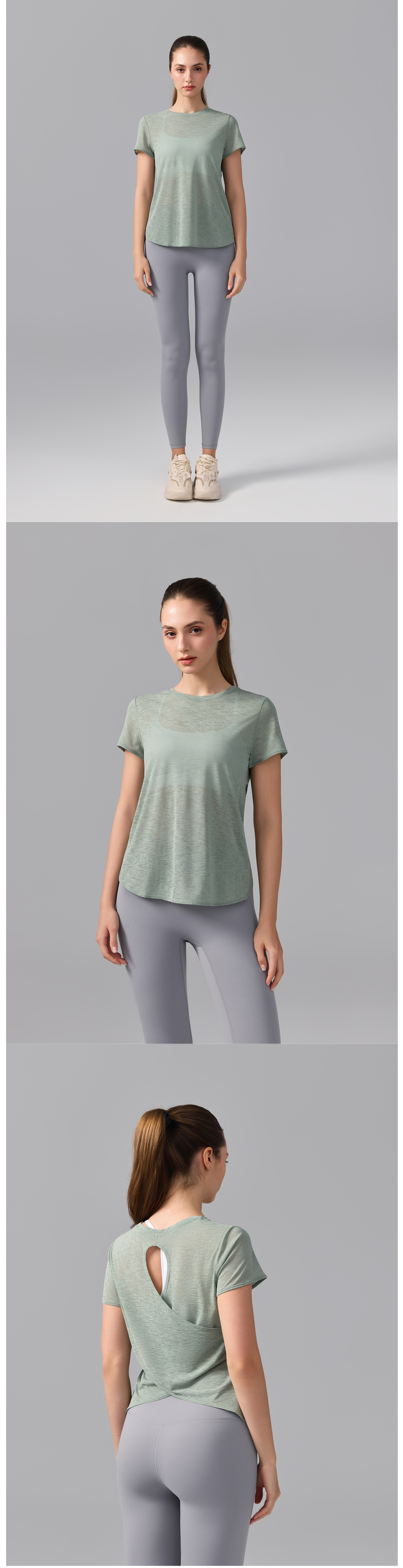 여성용 크로스보더 요가복 반팔 티셔츠, 가볍고 통기성 좋은 속이 비치는 아름다운 등 디자인, 댄스 피트니스 커버업, 스포츠 러닝탑스토어 가기
