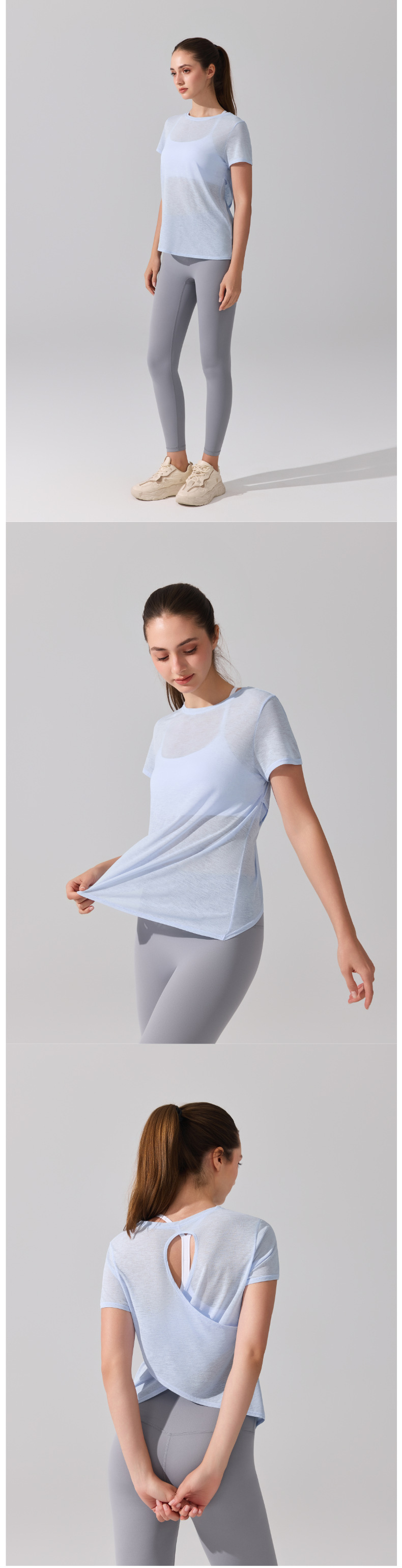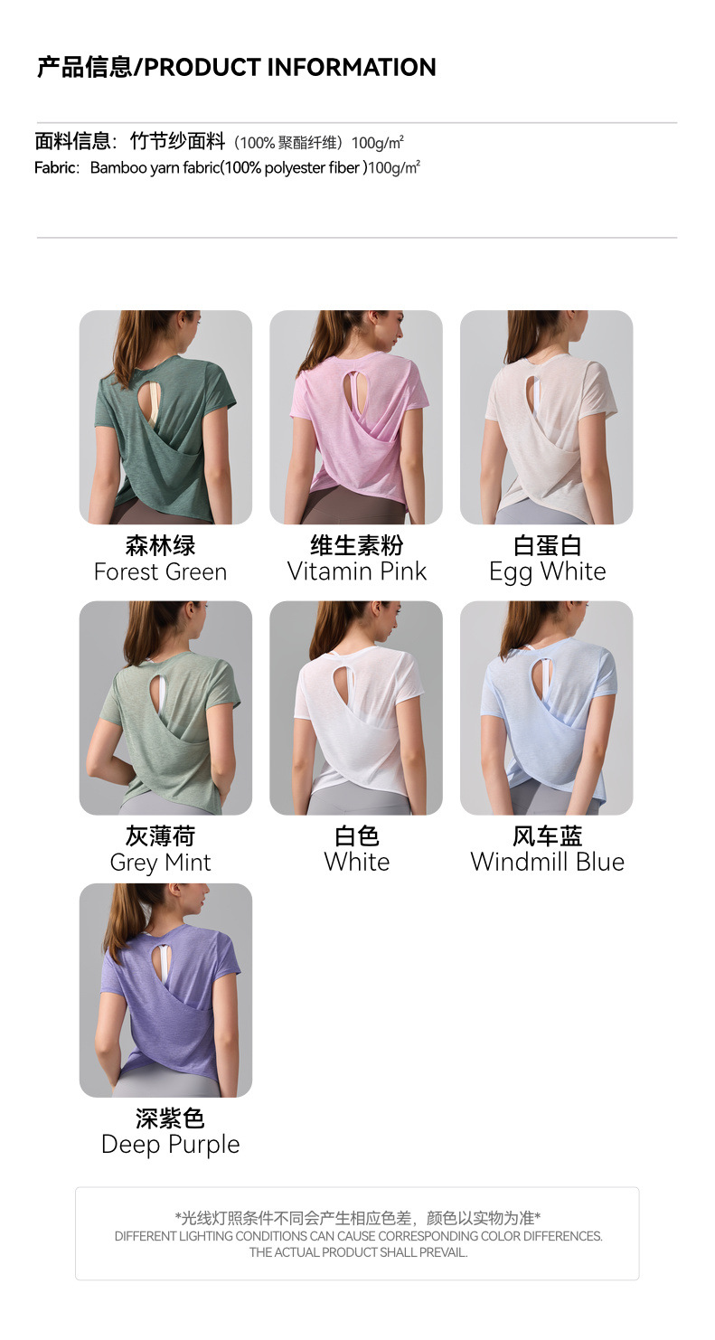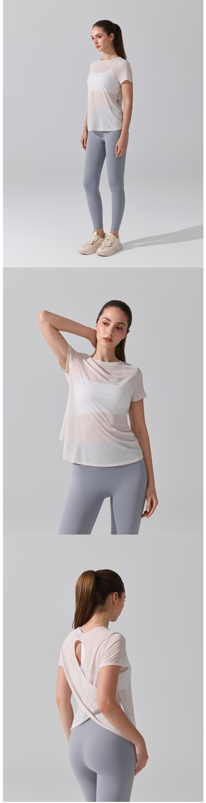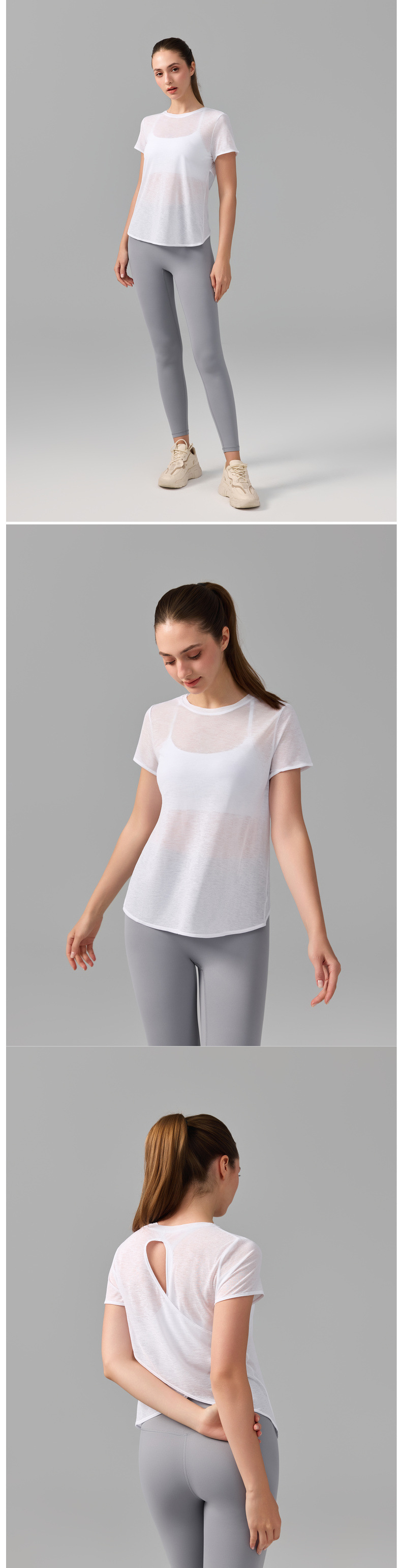 여성용 크로스보더 요가복 반팔 티셔츠, 가볍고 통기성 좋은 속이 비치는 아름다운 등 디자인, 댄스 피트니스 커버업, 스포츠 러닝탑스토어 가기