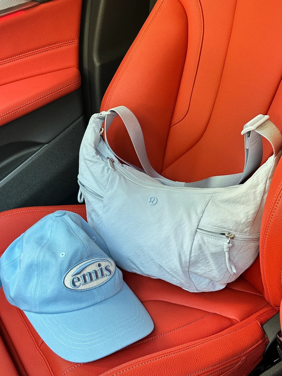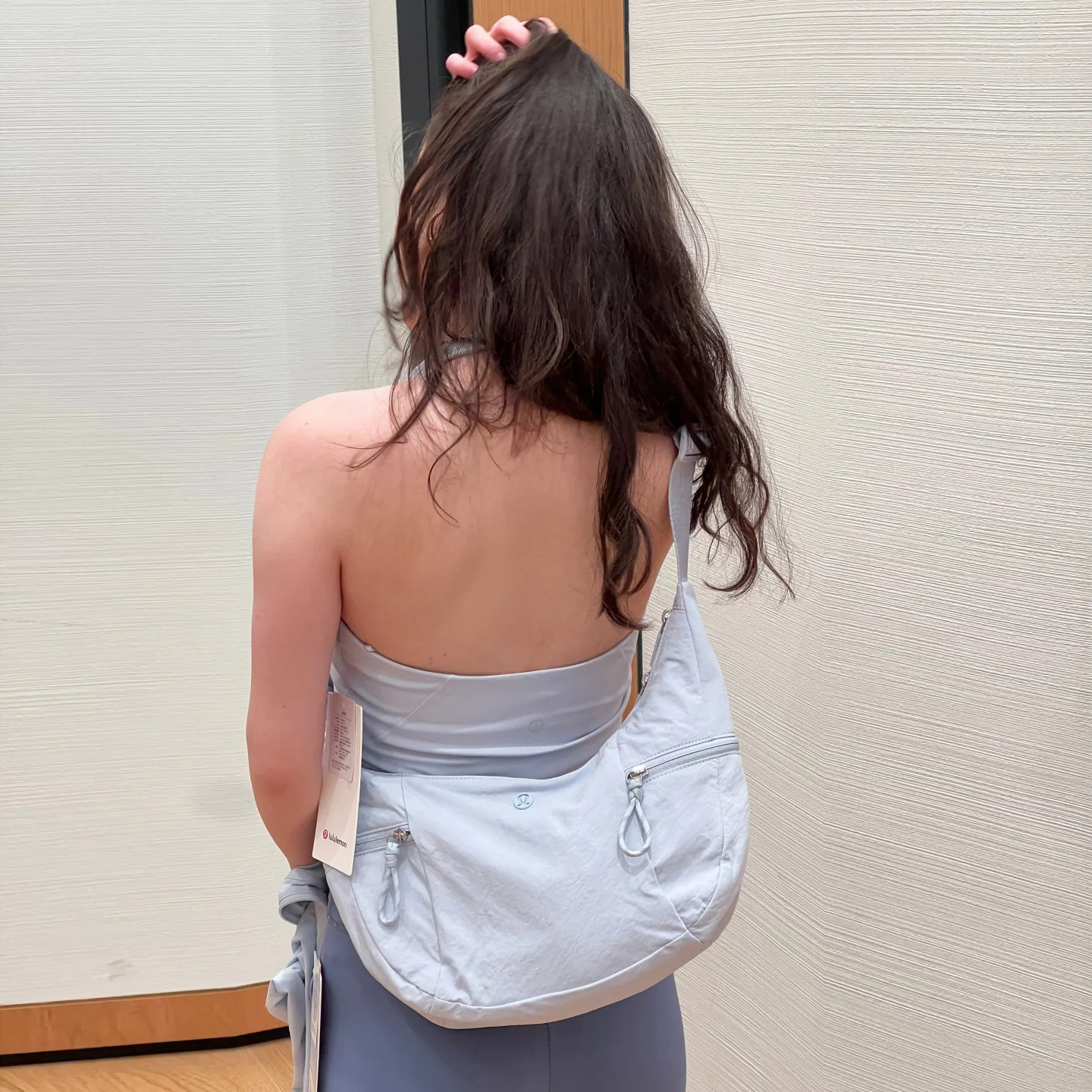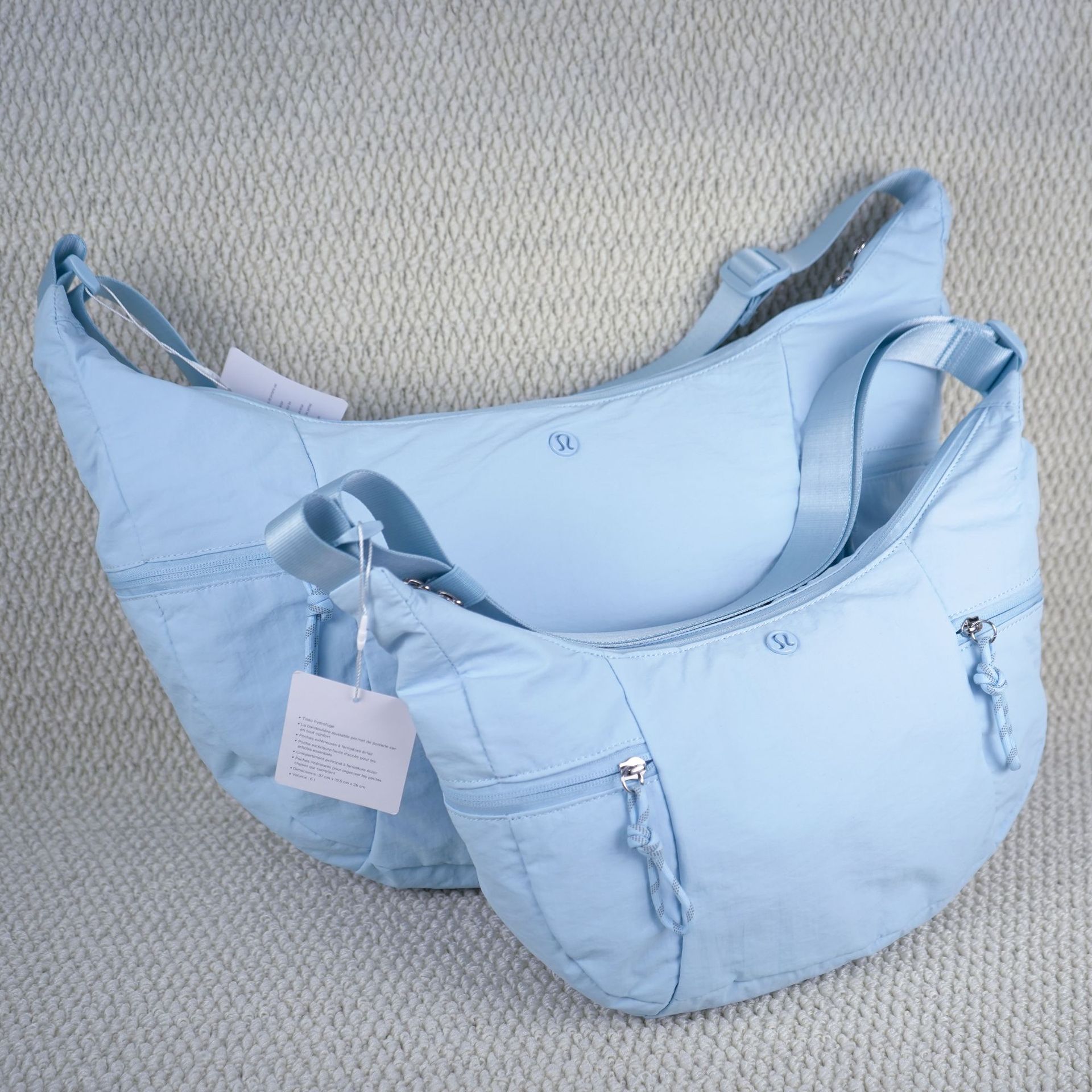 룰루 크로와상백 2026 신상 여성용 스탬차이드 블루 베일 핑크 크로스백 6L 가방 싱글 숄더 초승달 모양 언더암백스토어 가기
