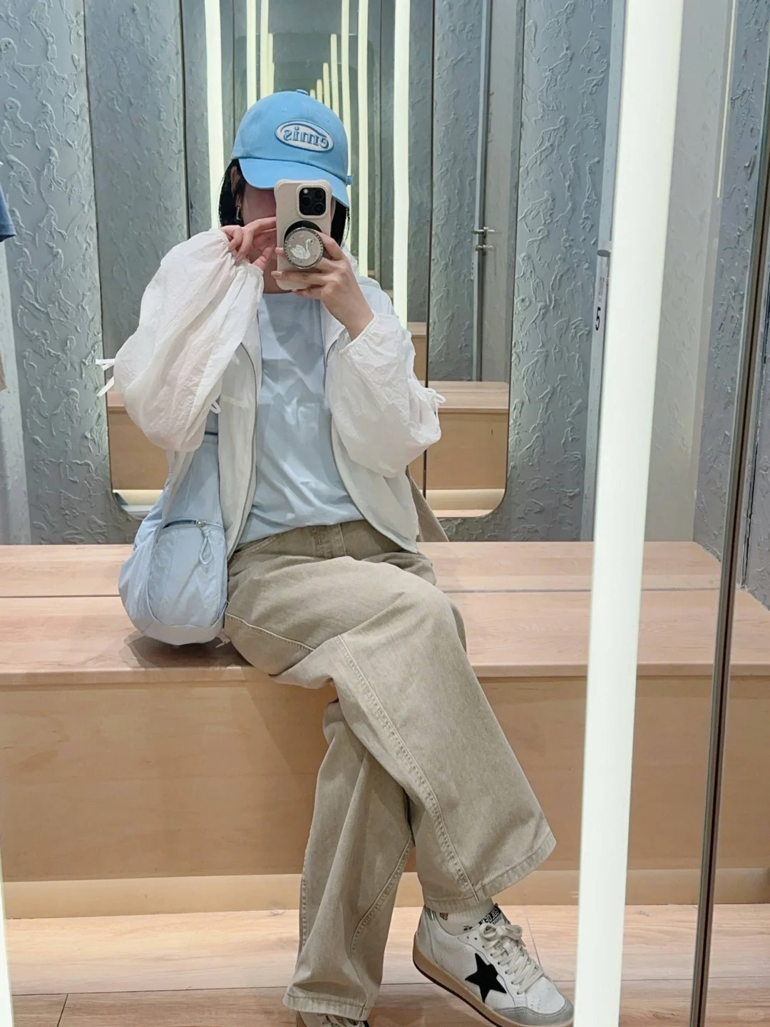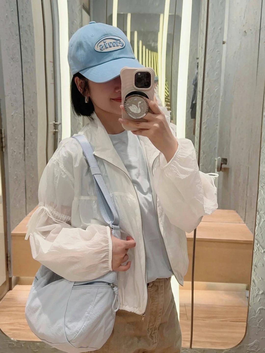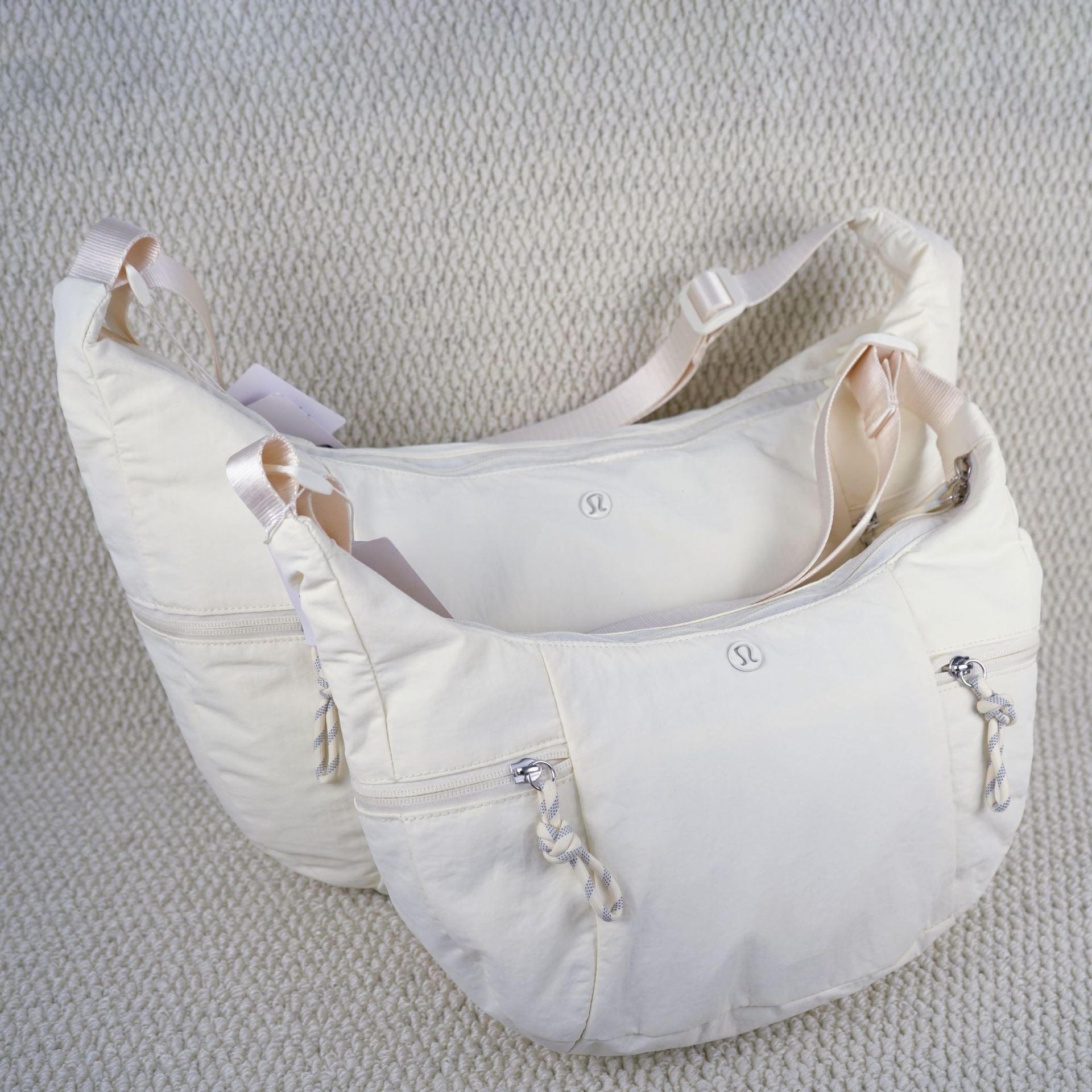 룰루 크로와상백 2026 신상 여성용 스탬차이드 블루 베일 핑크 크로스백 6L 가방 싱글 숄더 초승달 모양 언더암백스토어 가기