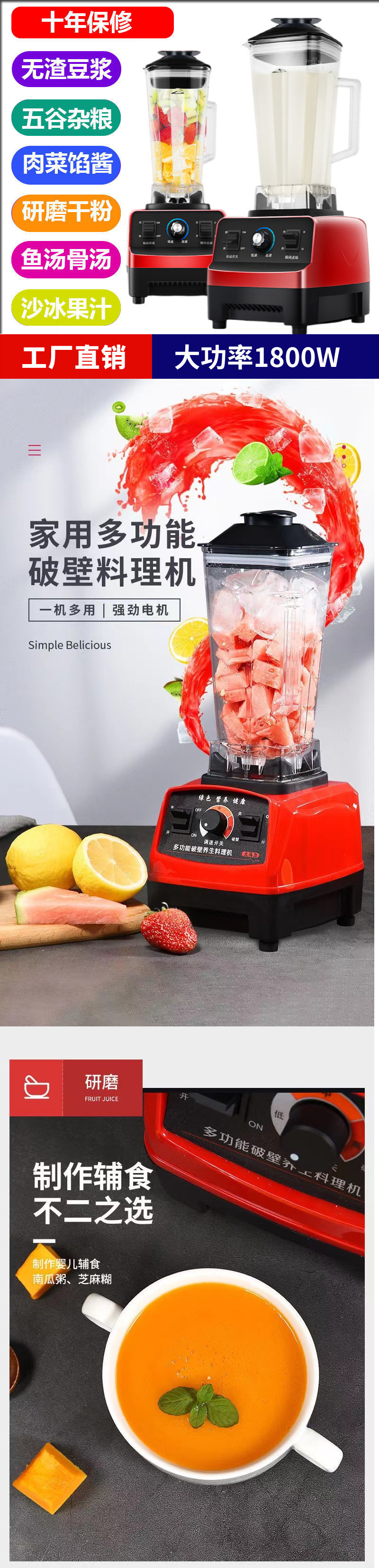 새로운 다기능 비 가열 벽 깨는 기계 두유 기계 가정용 스무디 기계 주스 기계 주스 얼음 분쇄 혼합 요리