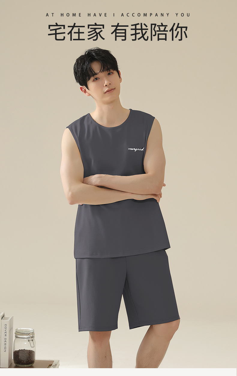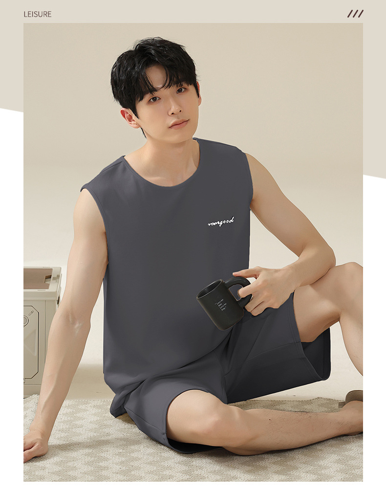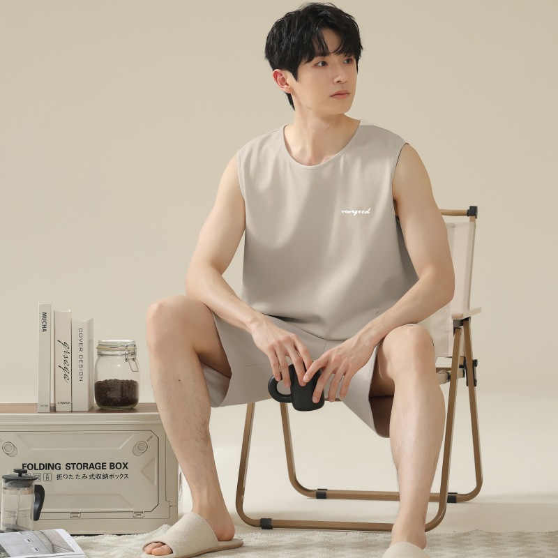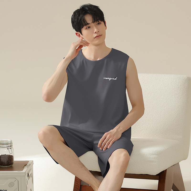 순면 잠옷 남성용 민소매 조끼 반바지 남성용 100kg 플러스 사이즈 150kg 여름용 얇은 홈웨어