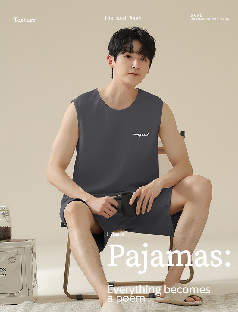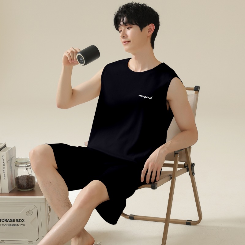 순면 잠옷 남성용 민소매 조끼 반바지 남성용 100kg 플러스 사이즈 150kg 여름용 얇은 홈웨어스토어 가기