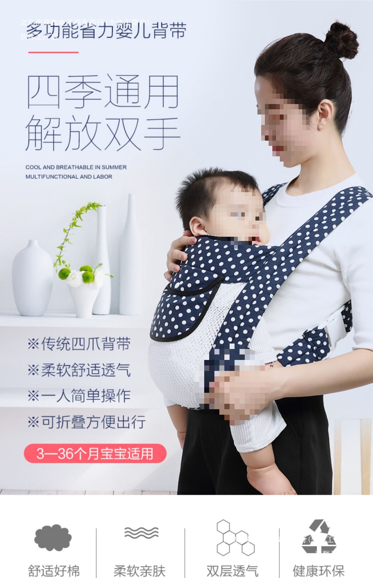 전통적인 4발톱 아기 순면 슬링, 아기 앞면 및 뒷면 슬링, 어린이 다기능 경량 통기성 슬링스토어 가기