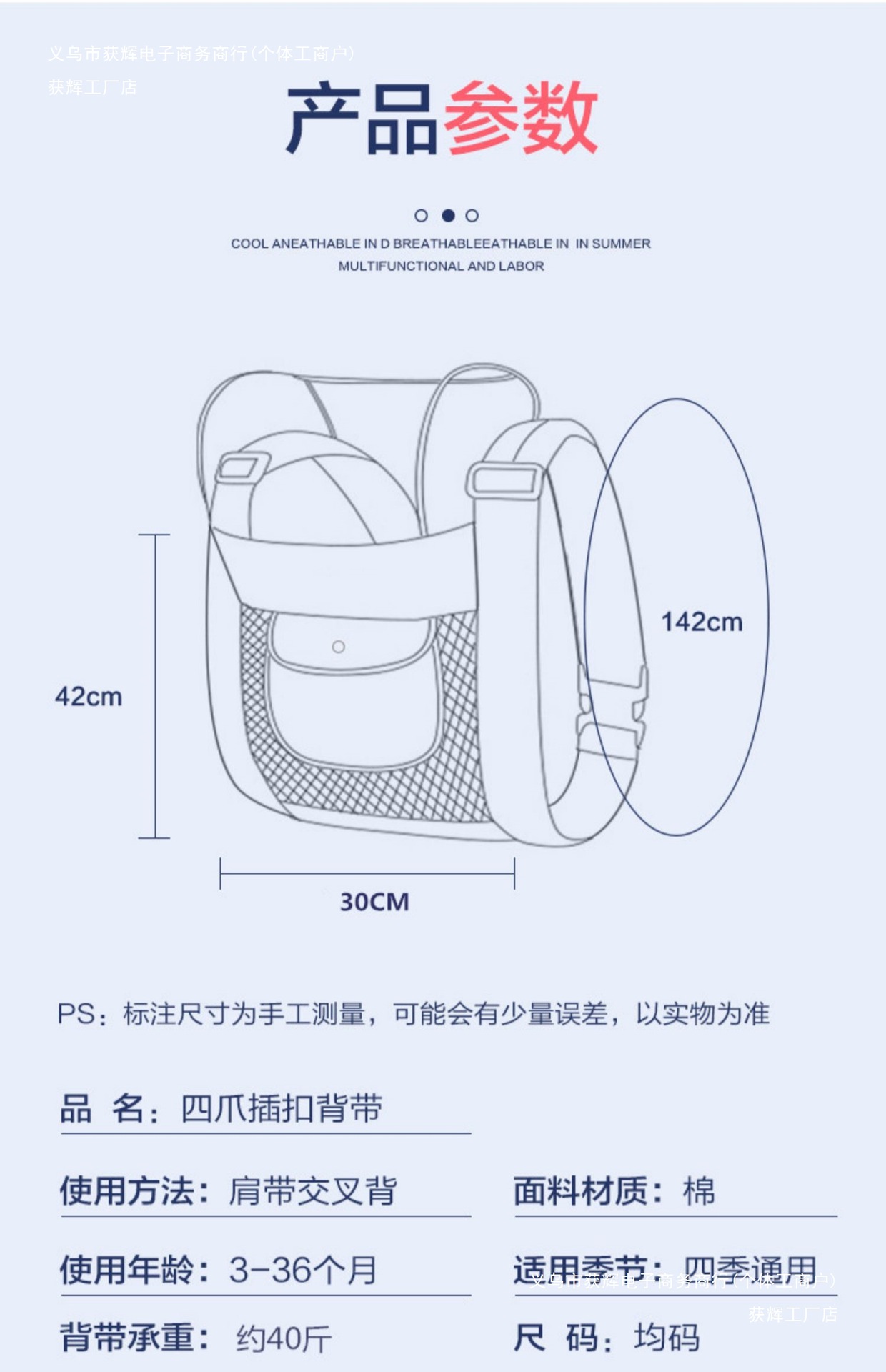 전통적인 4발톱 아기 순면 슬링, 아기 앞면 및 뒷면 슬링, 어린이 다기능 경량 통기성 슬링