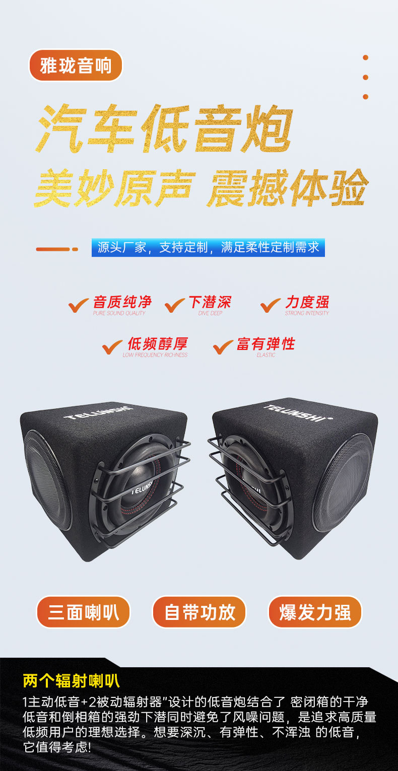 本公司主要经营:有源/无源低音炮、超薄低音炮、汽车喇叭、汽车功放、等汽车音响用品。