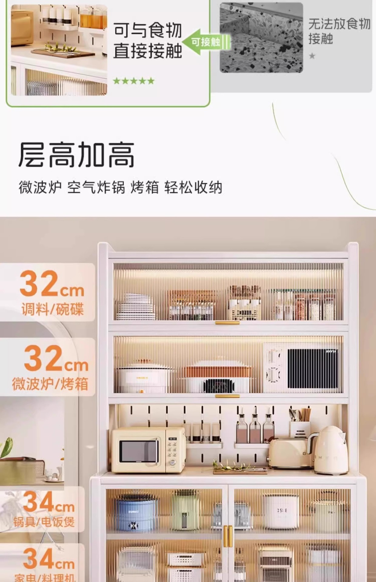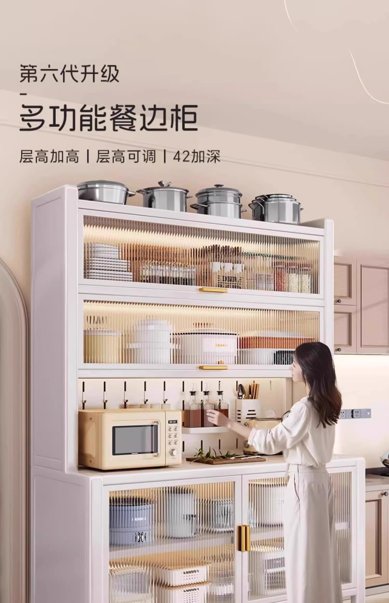 주방 수납 선반, 식사 수납 캐비닛, 바닥에서 천장까지 이어지는 다층 오븐, 전자레인지, 냄비, 전기 제품, 다기능 수납 캐비닛스토어 가기