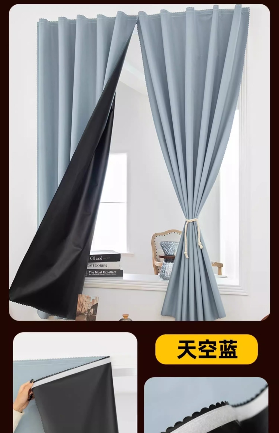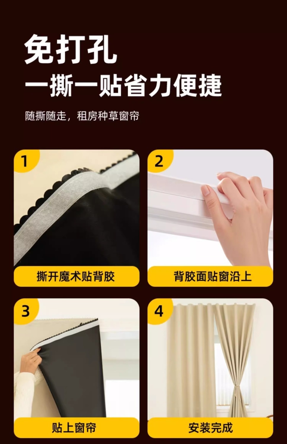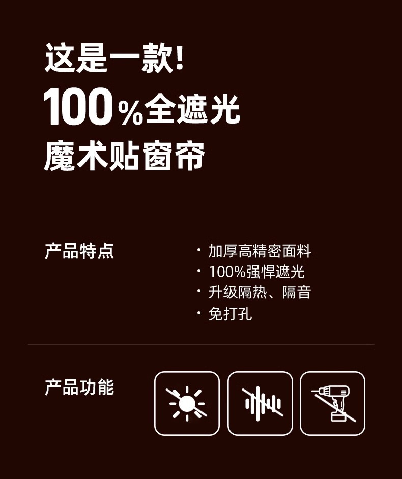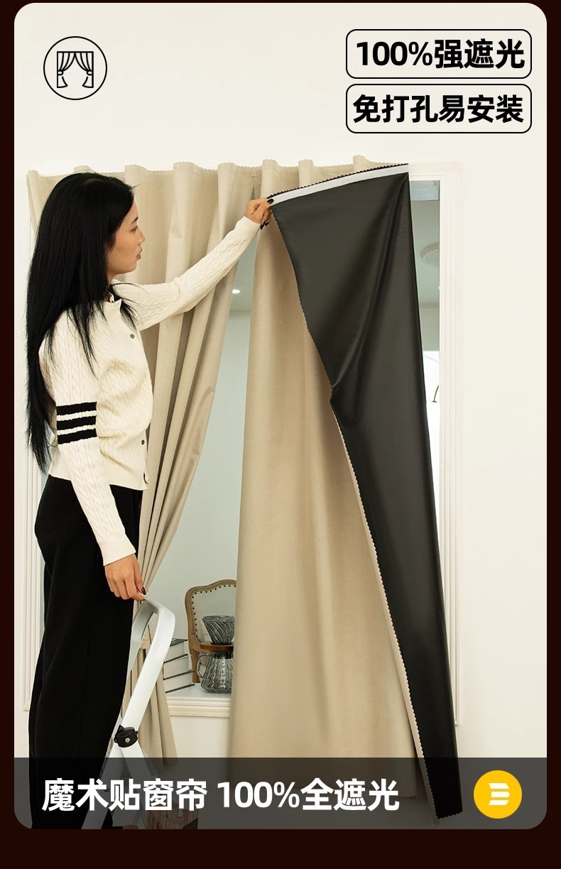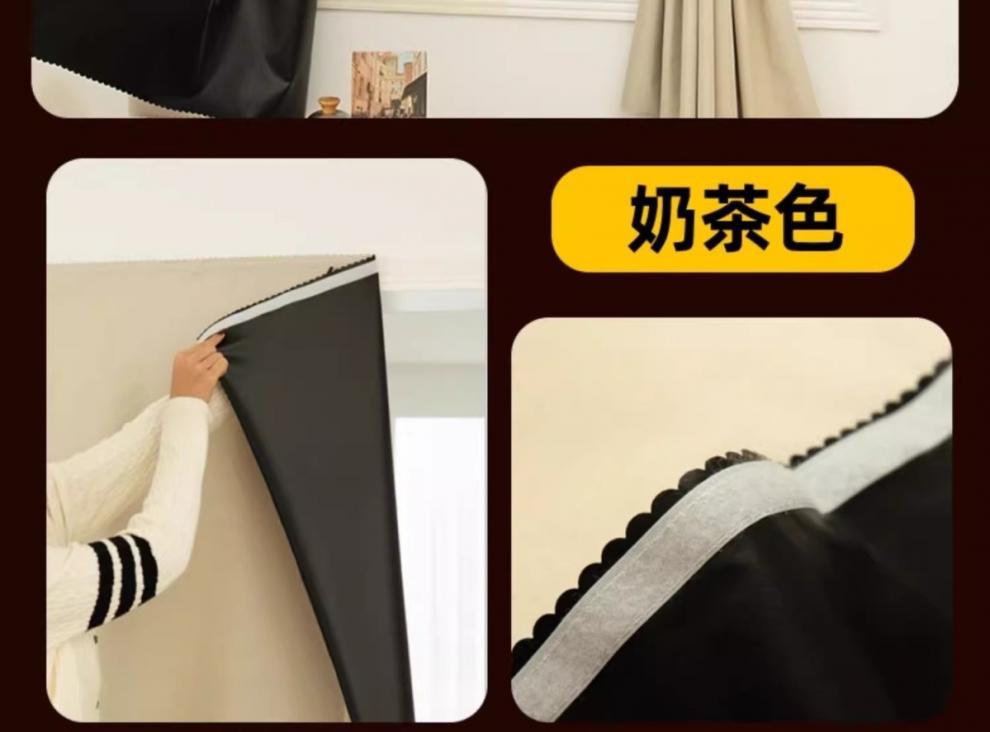 작은 커튼, 완전 차광, 펀치 없는 자체 접착식 차양, 학생 기숙사 간이 임대실 자외선 차단 2025 새로운 스타일