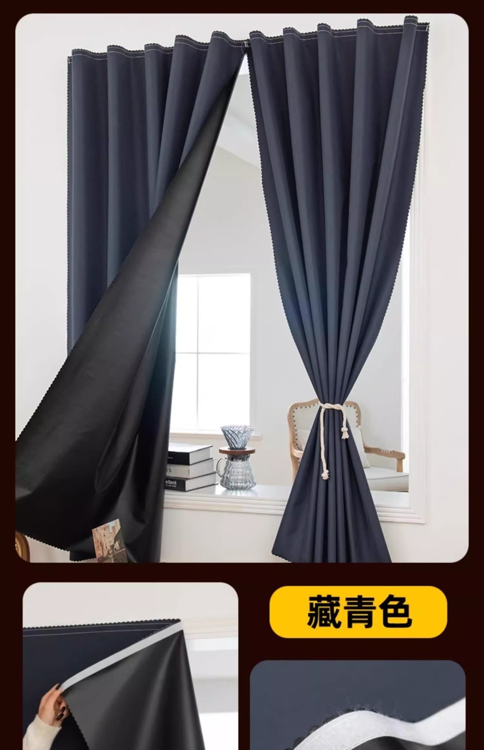 • 네이비 블루 [100% 완전 암막 - 펀칭 필요 없음, 벨크로 없음]