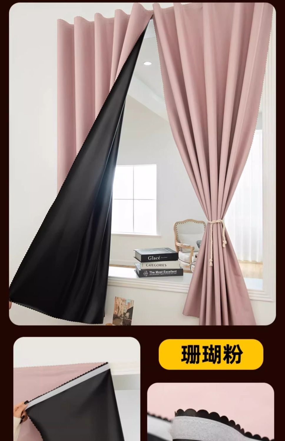 • 코랄핑크 [100% 완전블랙아웃 - 펀칭 불필요, 벨크로 무료]