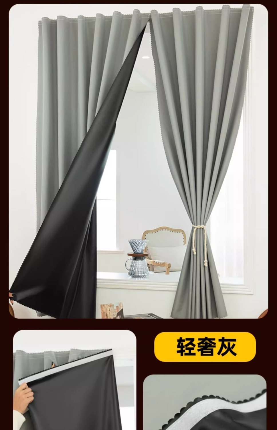• 라이트 럭셔리 그레이 [100% 완전 암막 - 펀칭 불필요, 벨크로 무료]