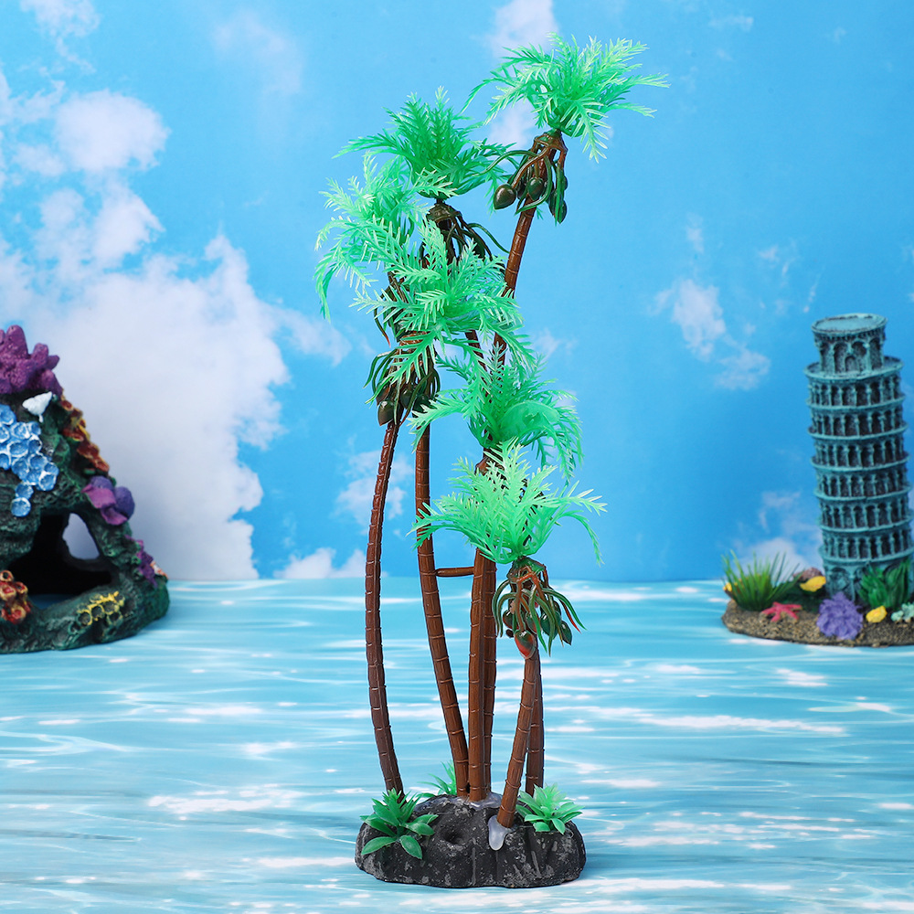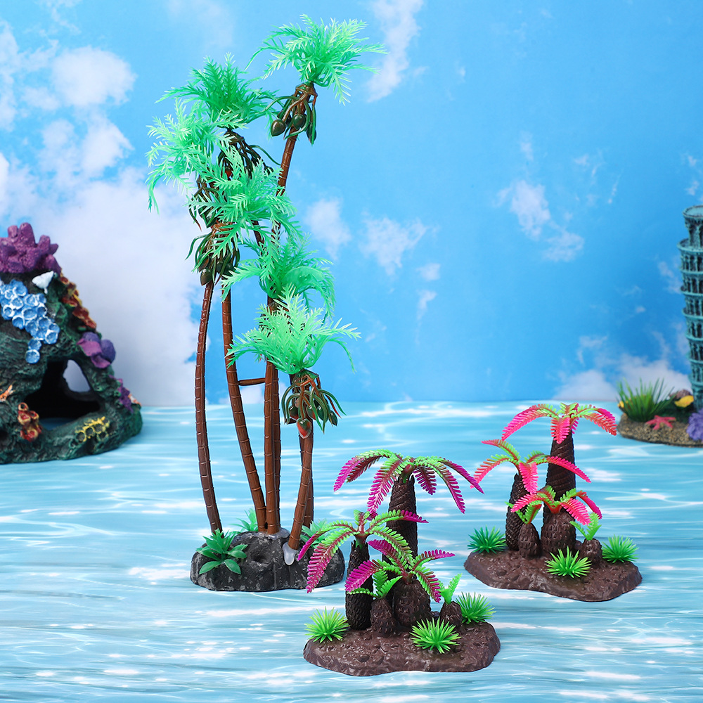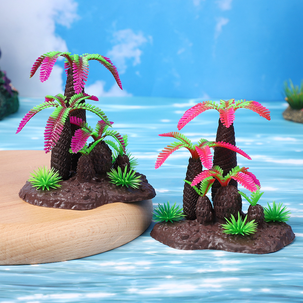 수조 조경, 마이크로 풍경 시뮬레이션, 코코넛 나무, 수중 장식품, 수족관 장면, 플라스틱 가짜 수생 식물, 모래 테이블 장식
