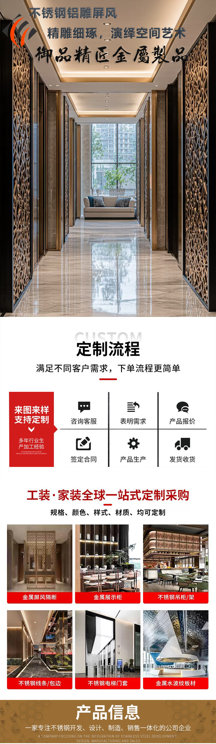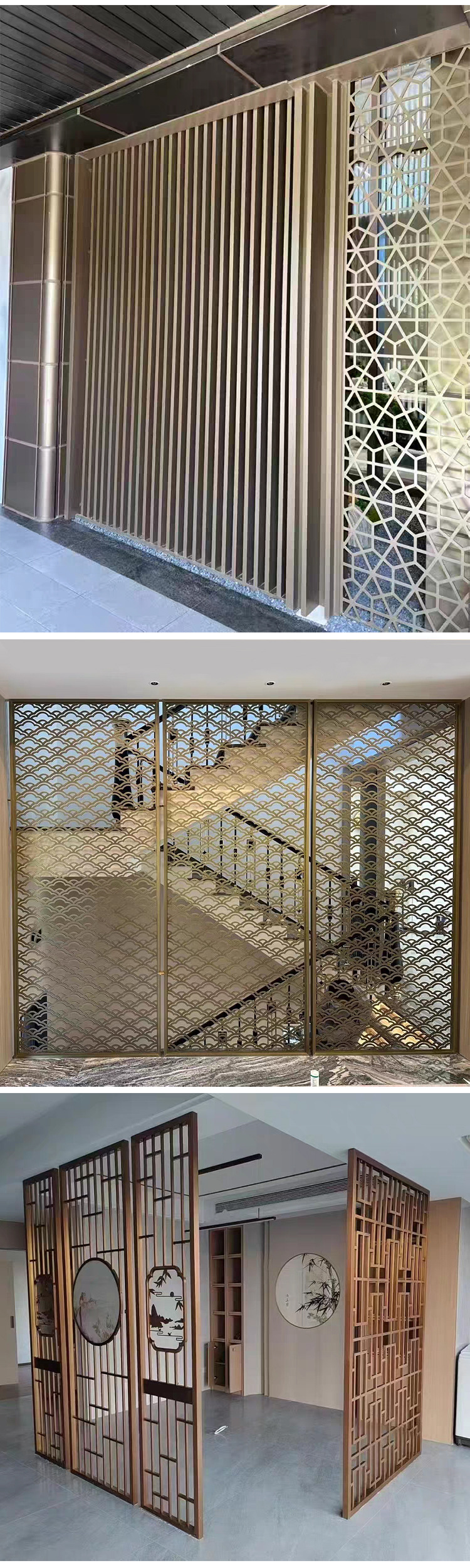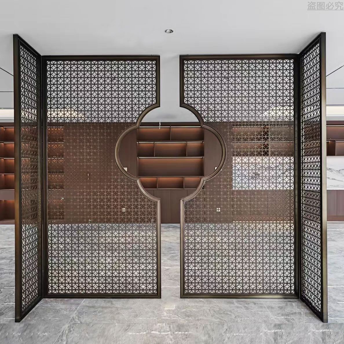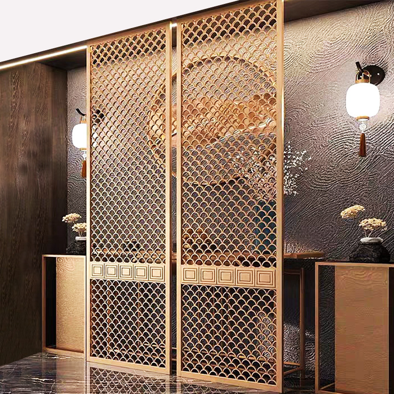 맞춤형 실내 스테인리스 알루미늄 조각 스크린, 판매부스 금속 중공 장식벽, 호텔 로비 칸막이, 꽃무늬 격자형 그릴스토어 가기