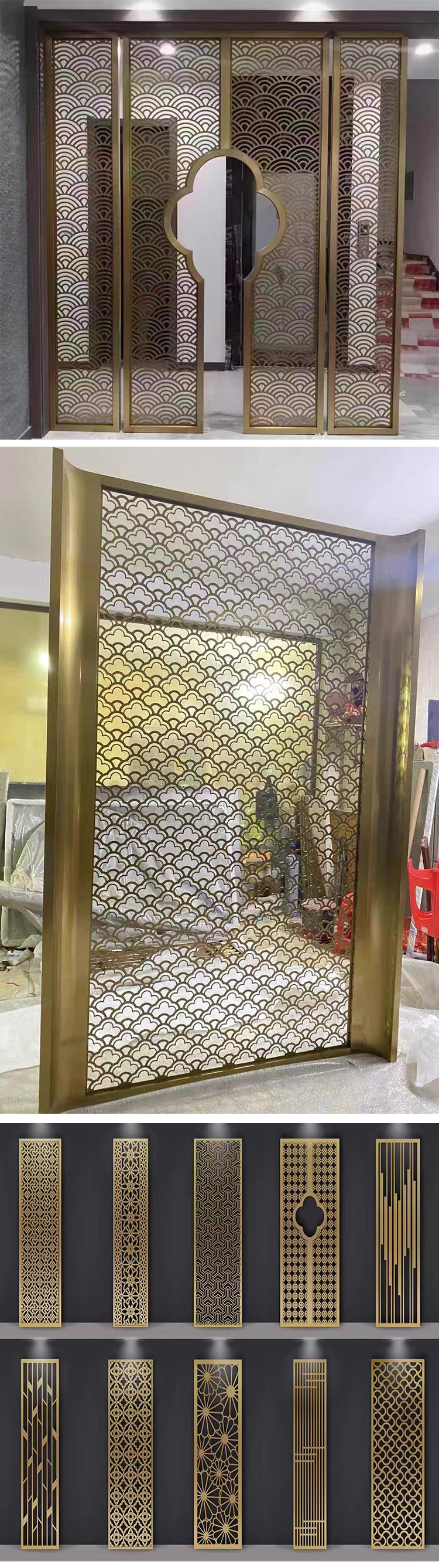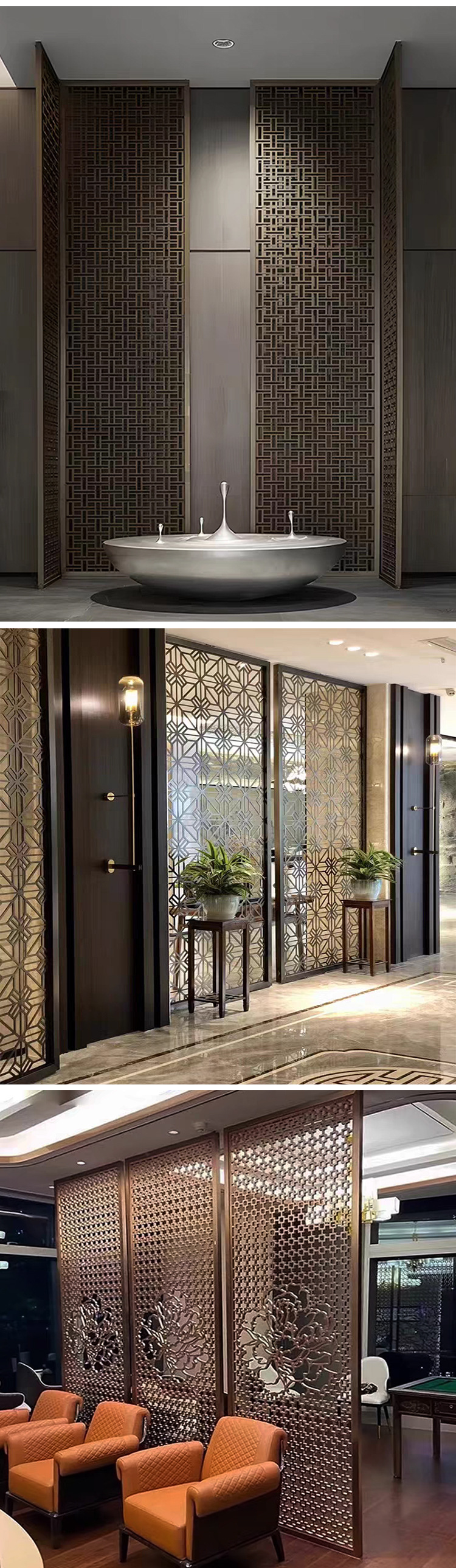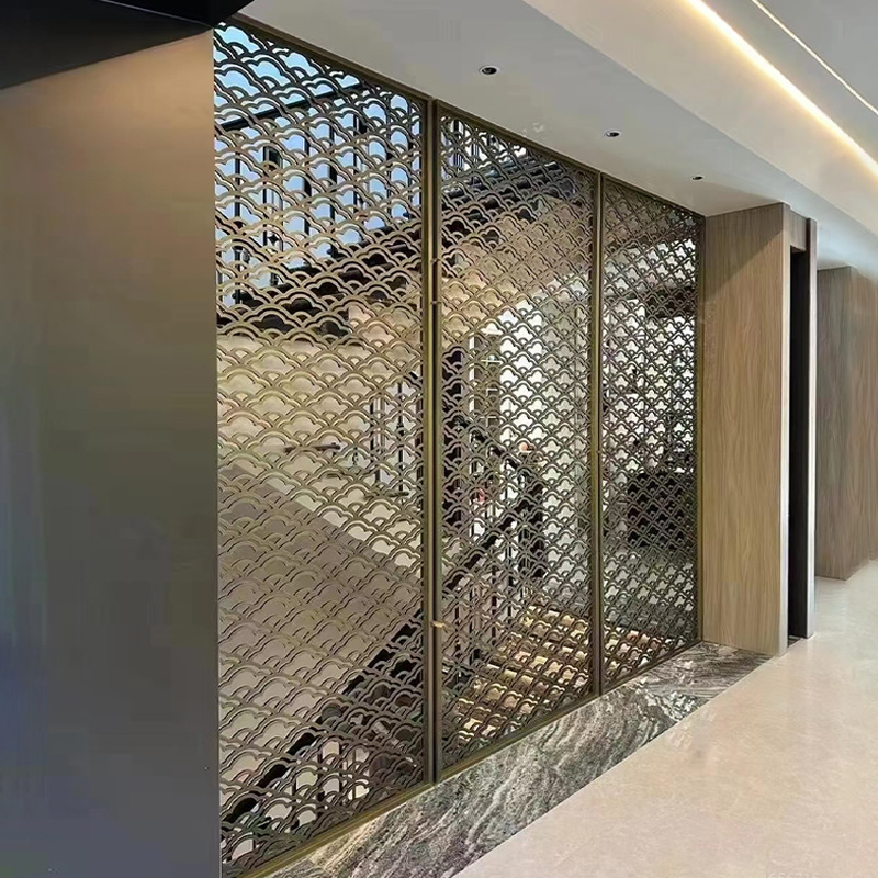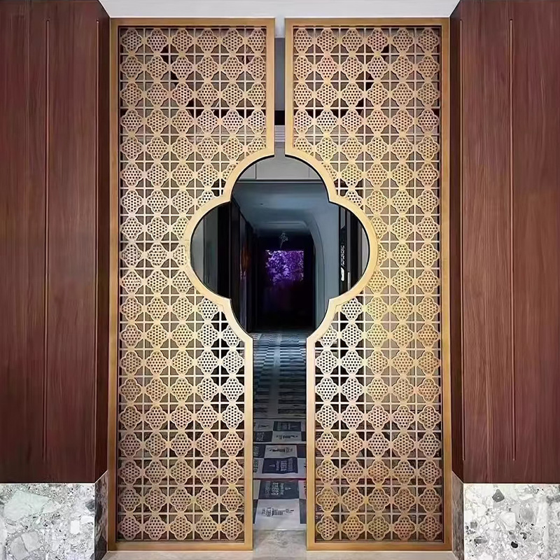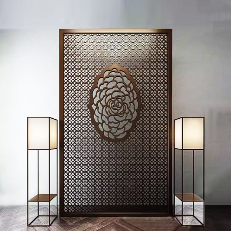 맞춤형 실내 스테인리스 알루미늄 조각 스크린, 판매부스 금속 중공 장식벽, 호텔 로비 칸막이, 꽃무늬 격자형 그릴