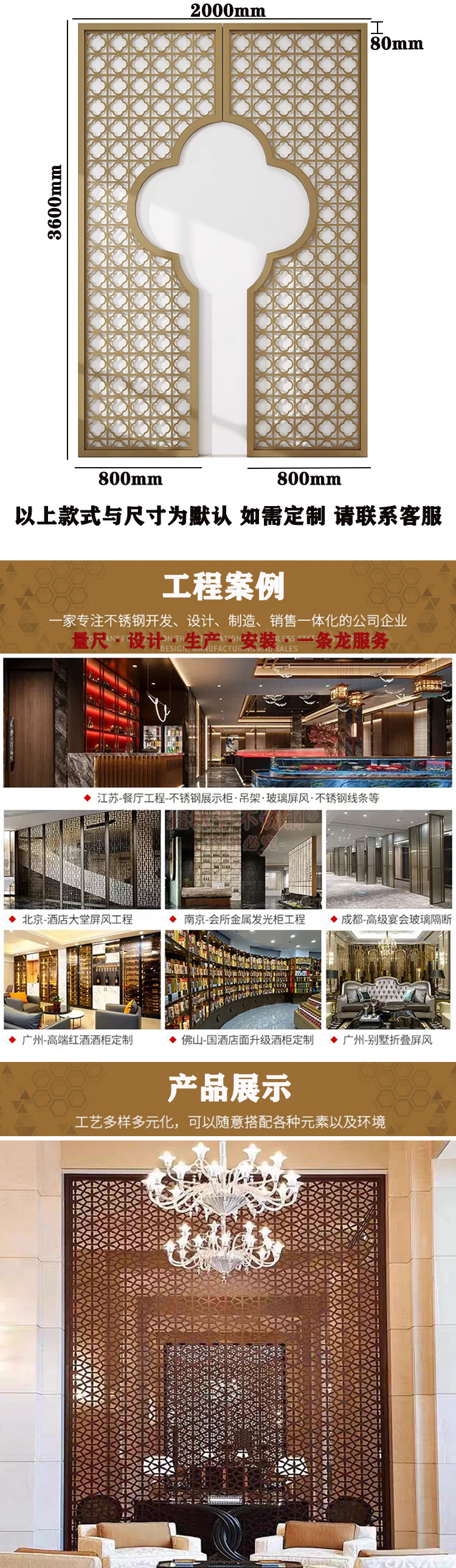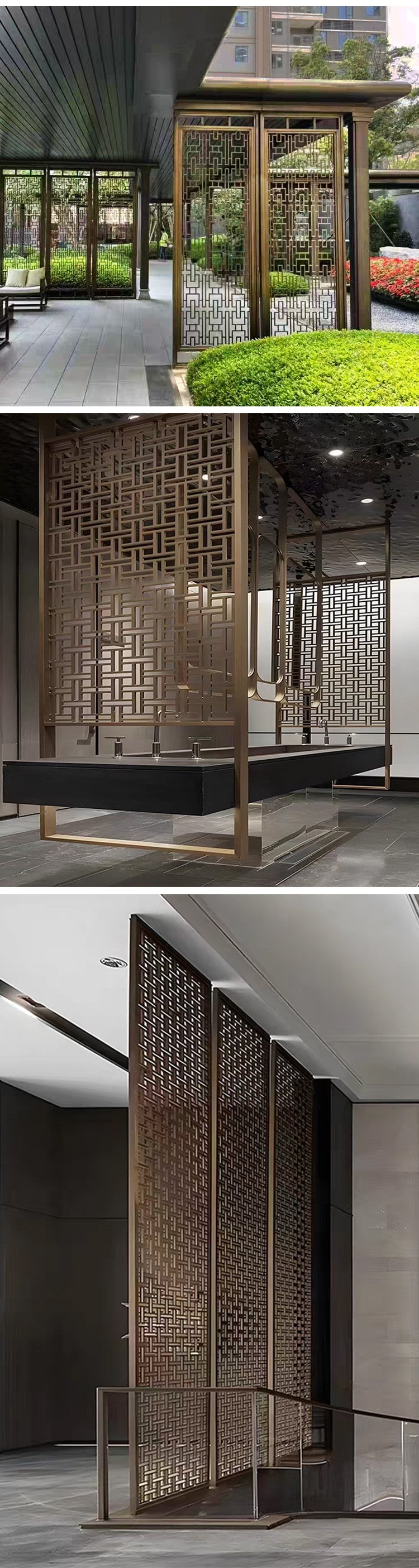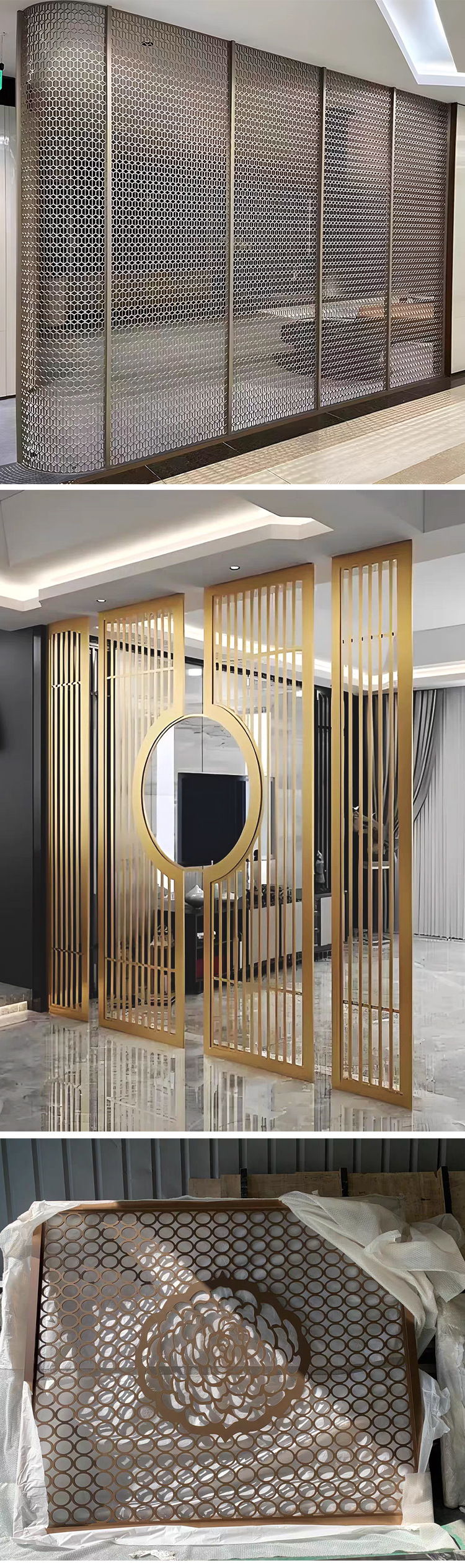 맞춤형 실내 스테인리스 알루미늄 조각 스크린, 판매부스 금속 중공 장식벽, 호텔 로비 칸막이, 꽃무늬 격자형 그릴