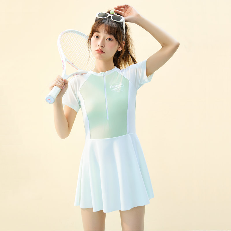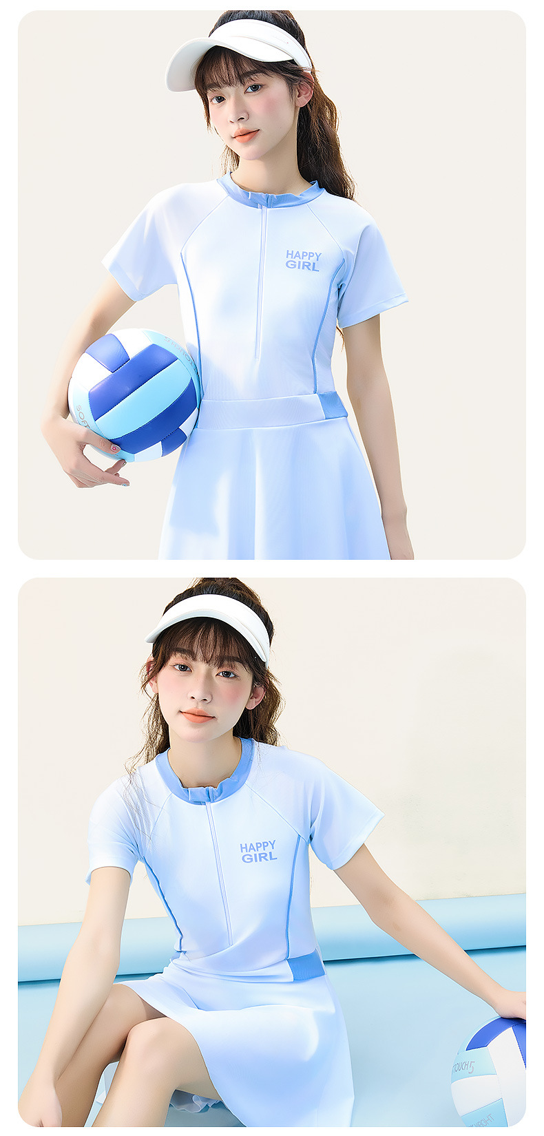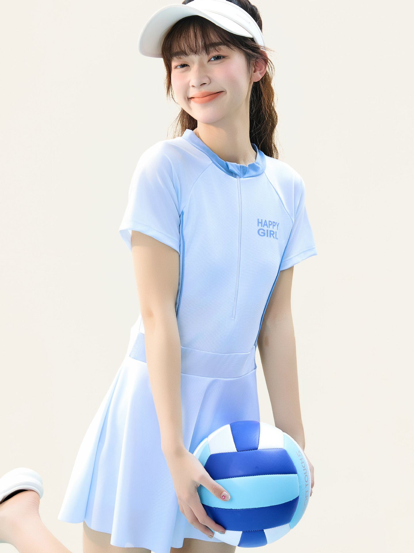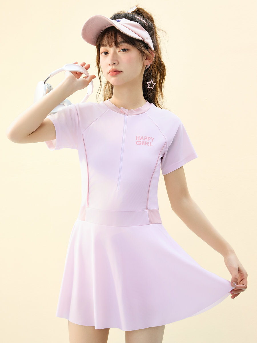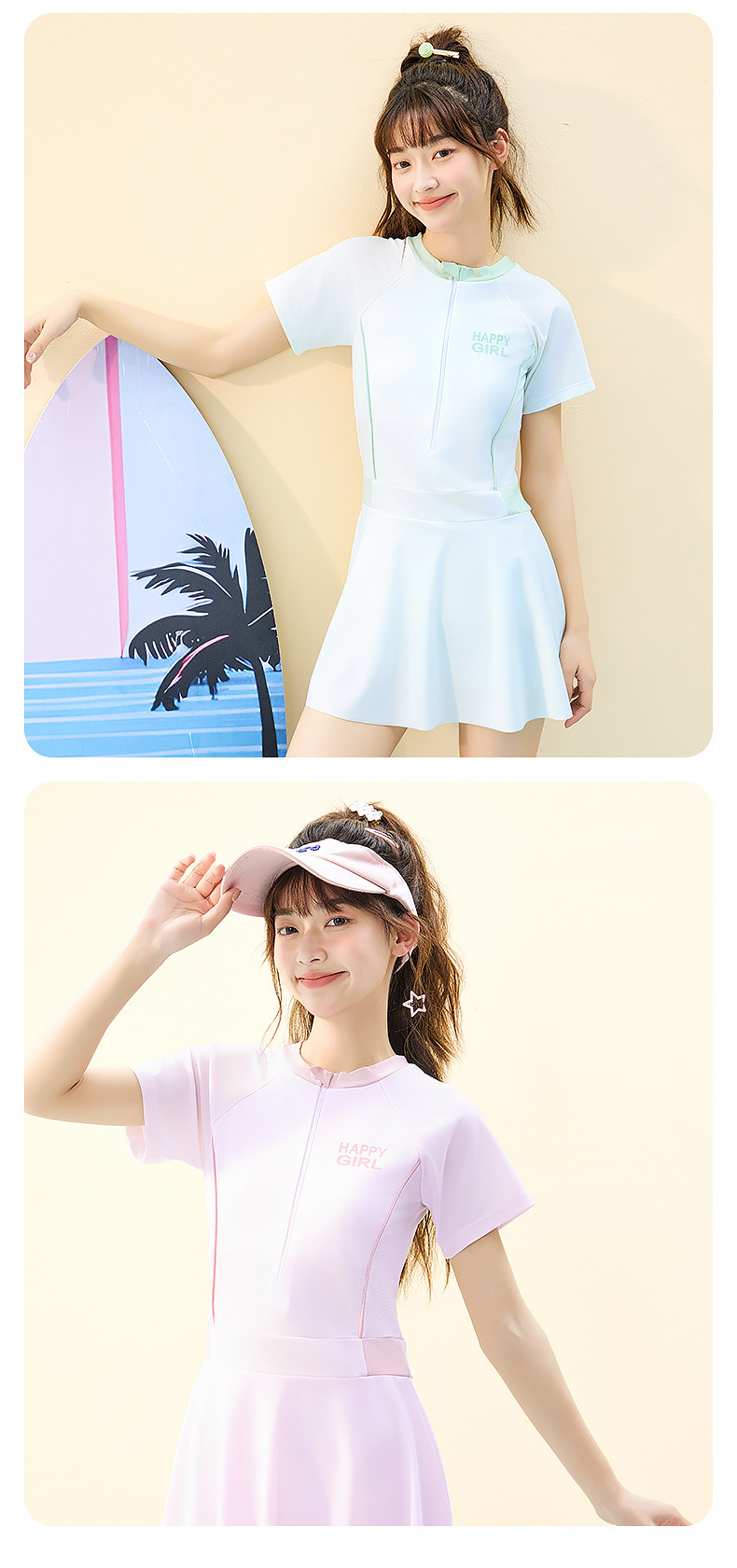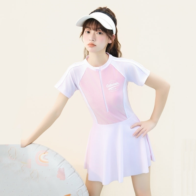 수영복 여성용 원피스 중학생 보수적 원피스 수영복 2025 새로운 슬리밍 수영복 달콤한 반팔 소녀