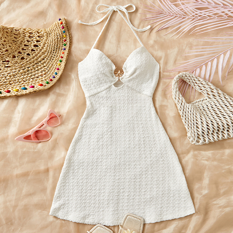 국경 간 아마존 대외 무역 원피스 2025 여름 유럽과 미국의 휴일 스커트 섹시한 목 스커트 비치스토어 가기