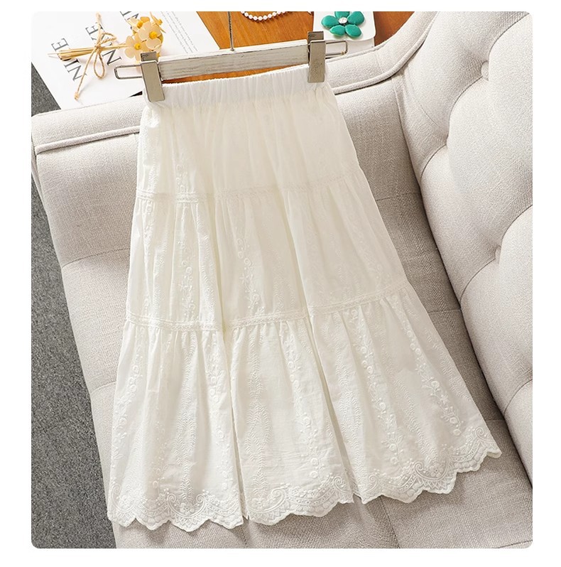 여자 스커트 봄 어린이 슈퍼 요정 공주 스커트 2025 봄과 여름 새로운 여자 레이스 화이트 스커트